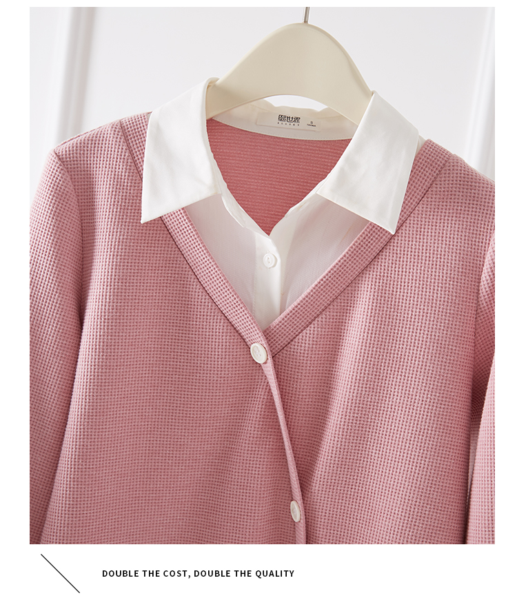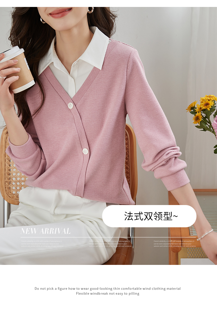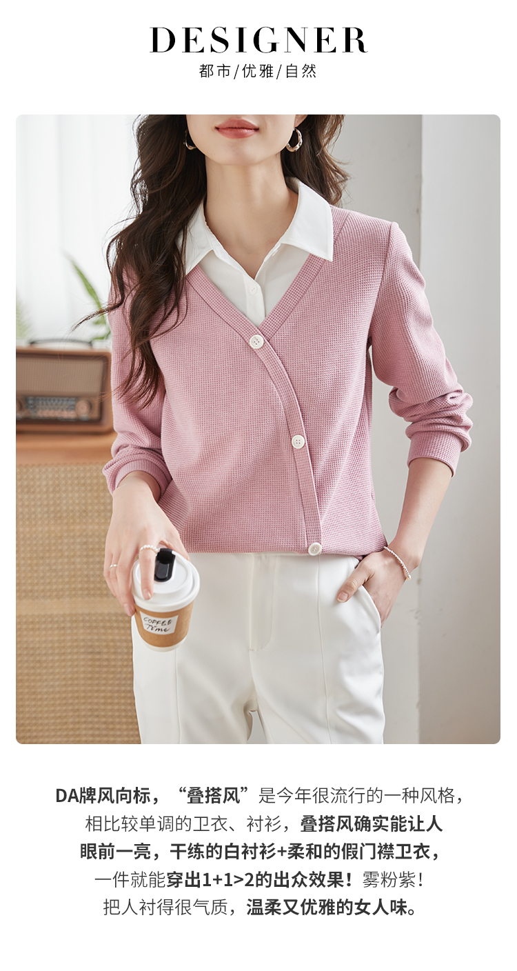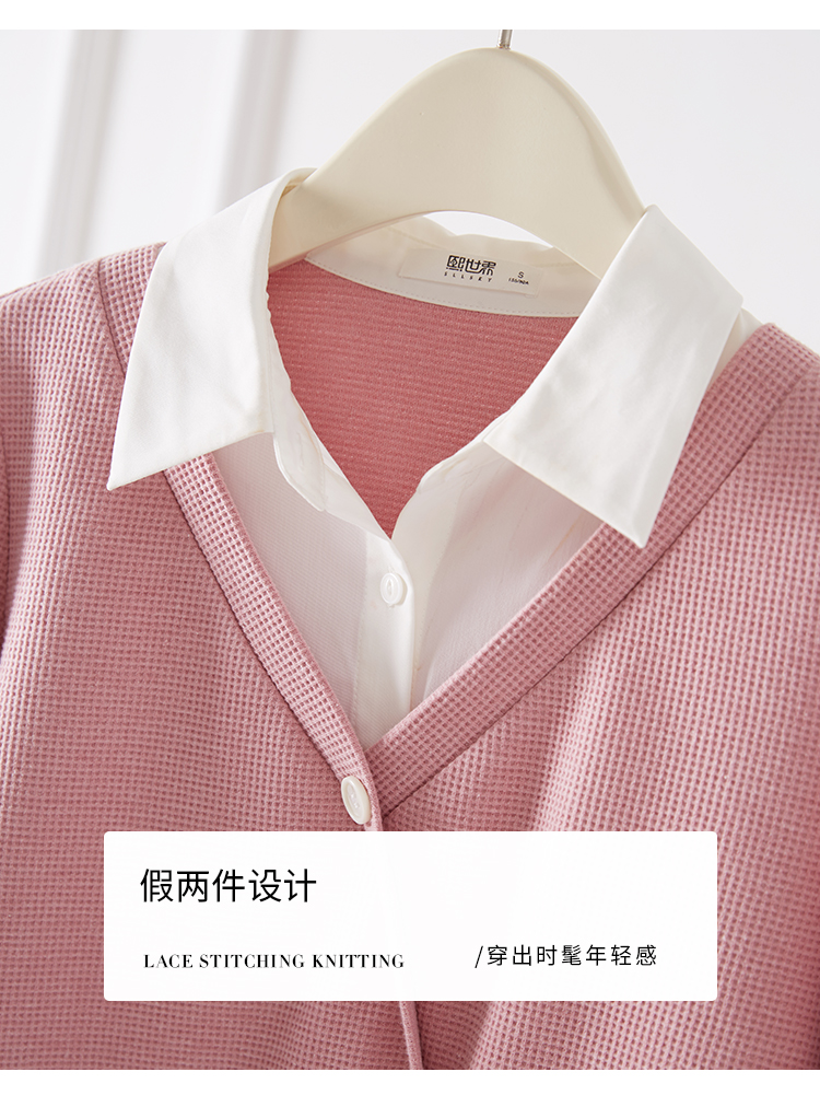 【年终特卖】熙世界2025秋新款叠搭风衬衫翻领拼接华夫格卫衣假两件时尚上衣