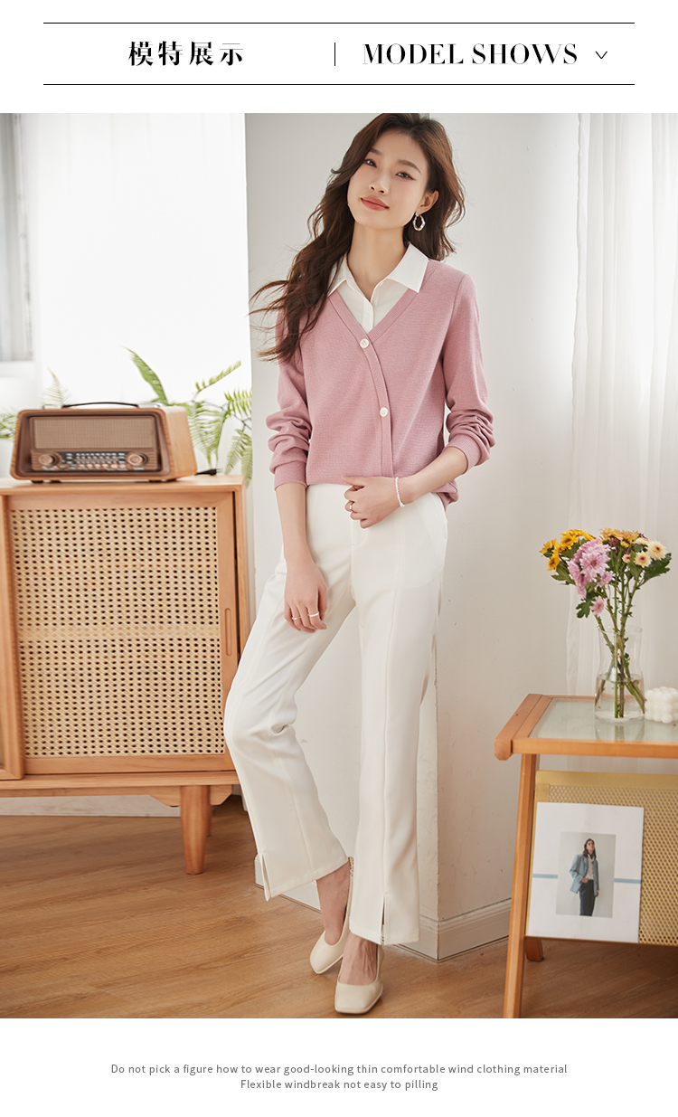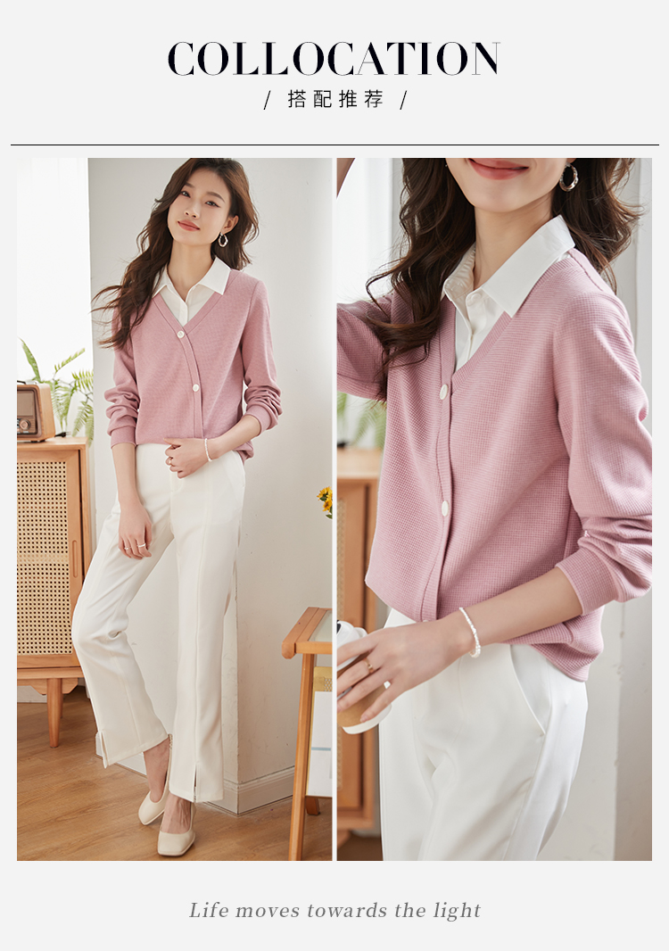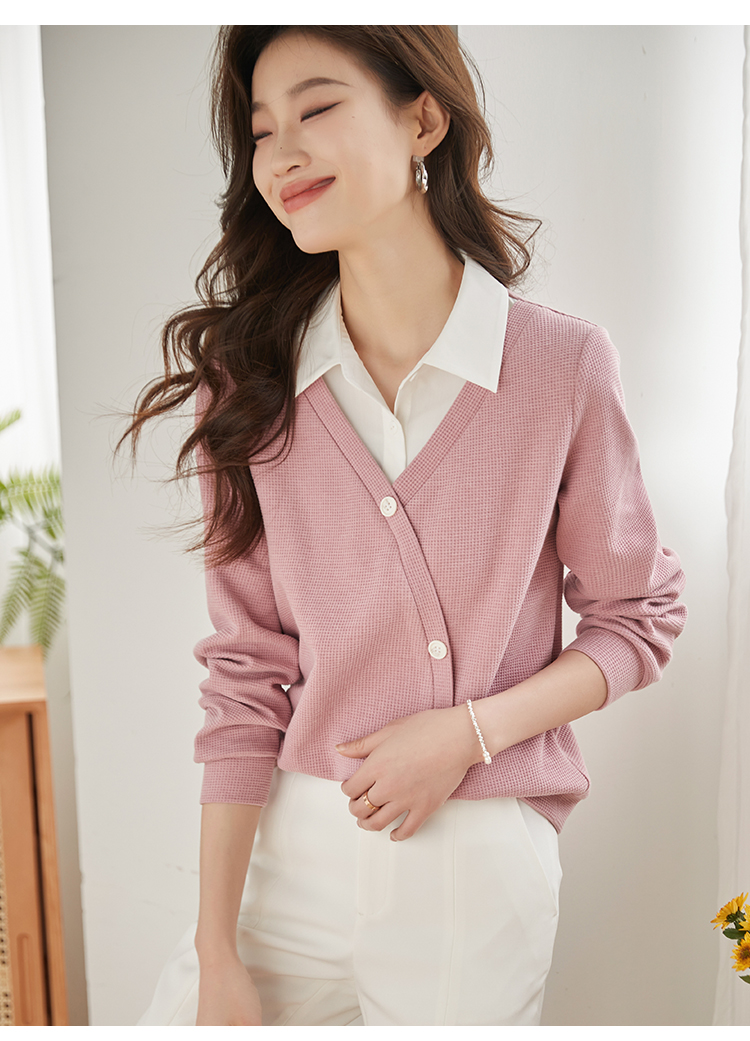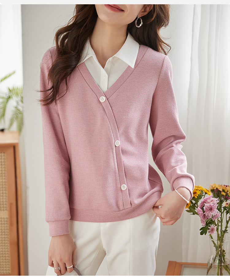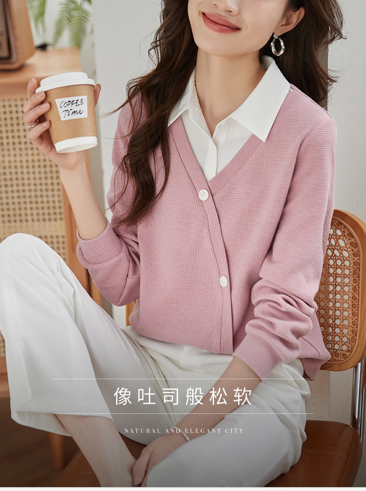 【年终特卖】熙世界2025秋新款叠搭风衬衫翻领拼接华夫格卫衣假两件时尚上衣