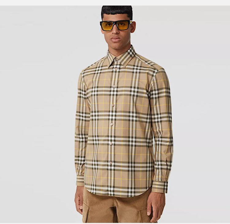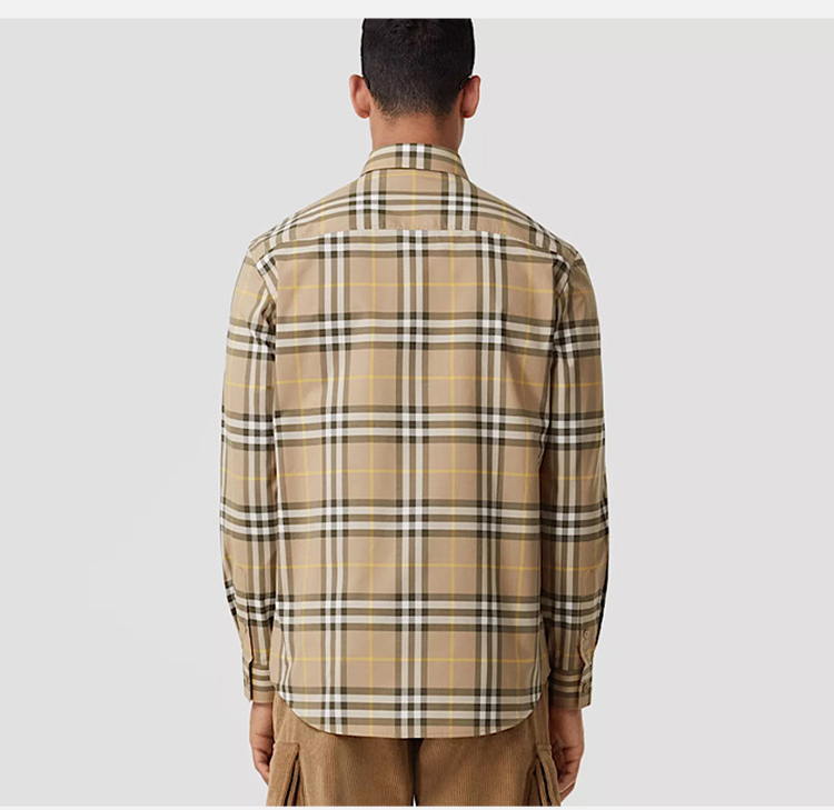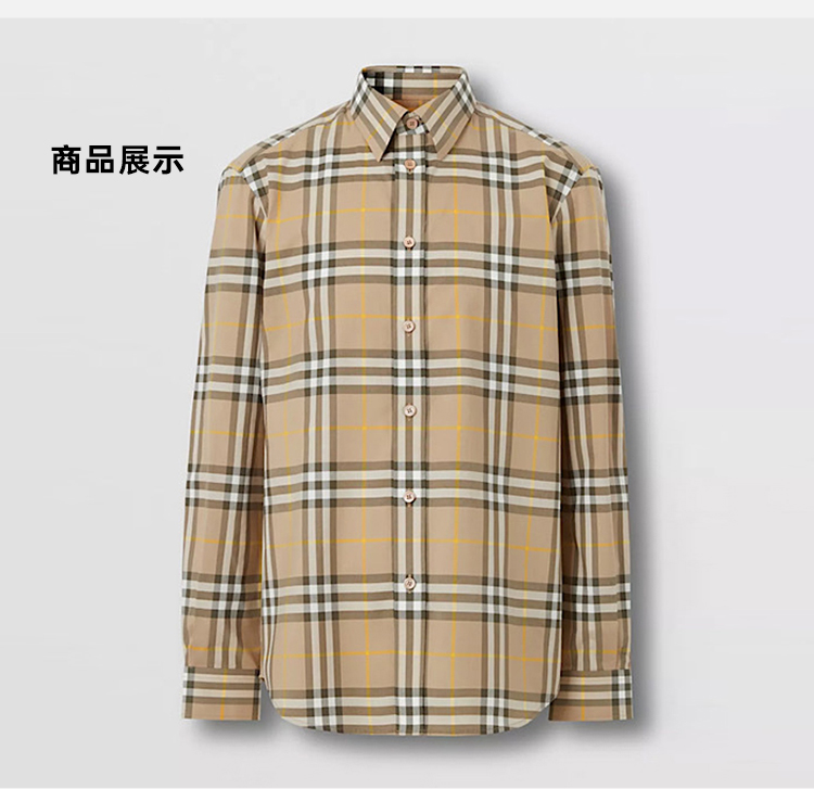 BURBERRY 巴宝莉 男士小码格纹弹力棉质长袖衬衫 格子 8055492 B2412