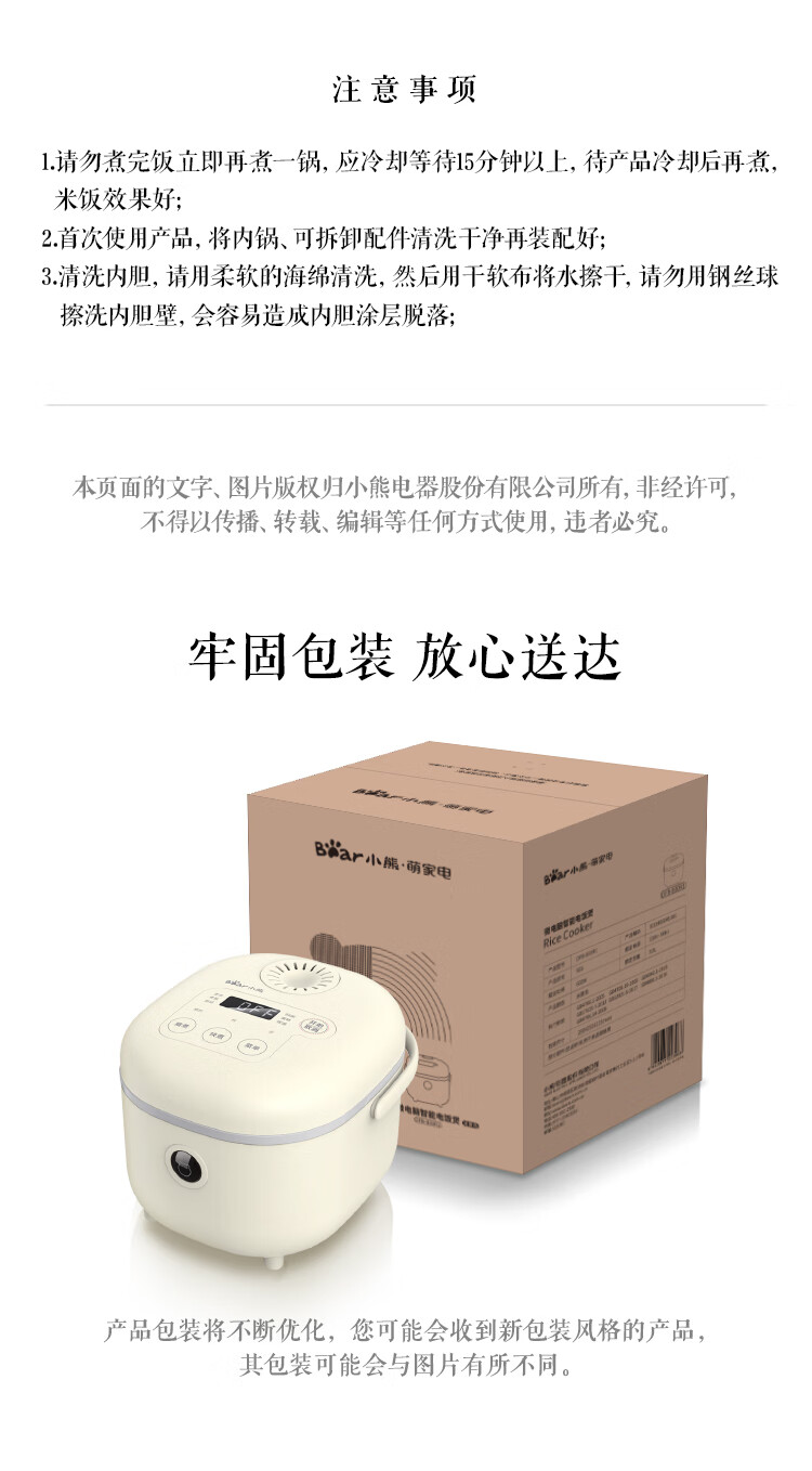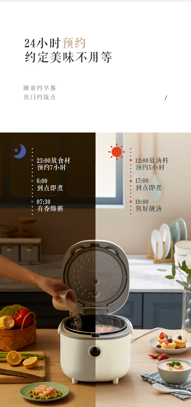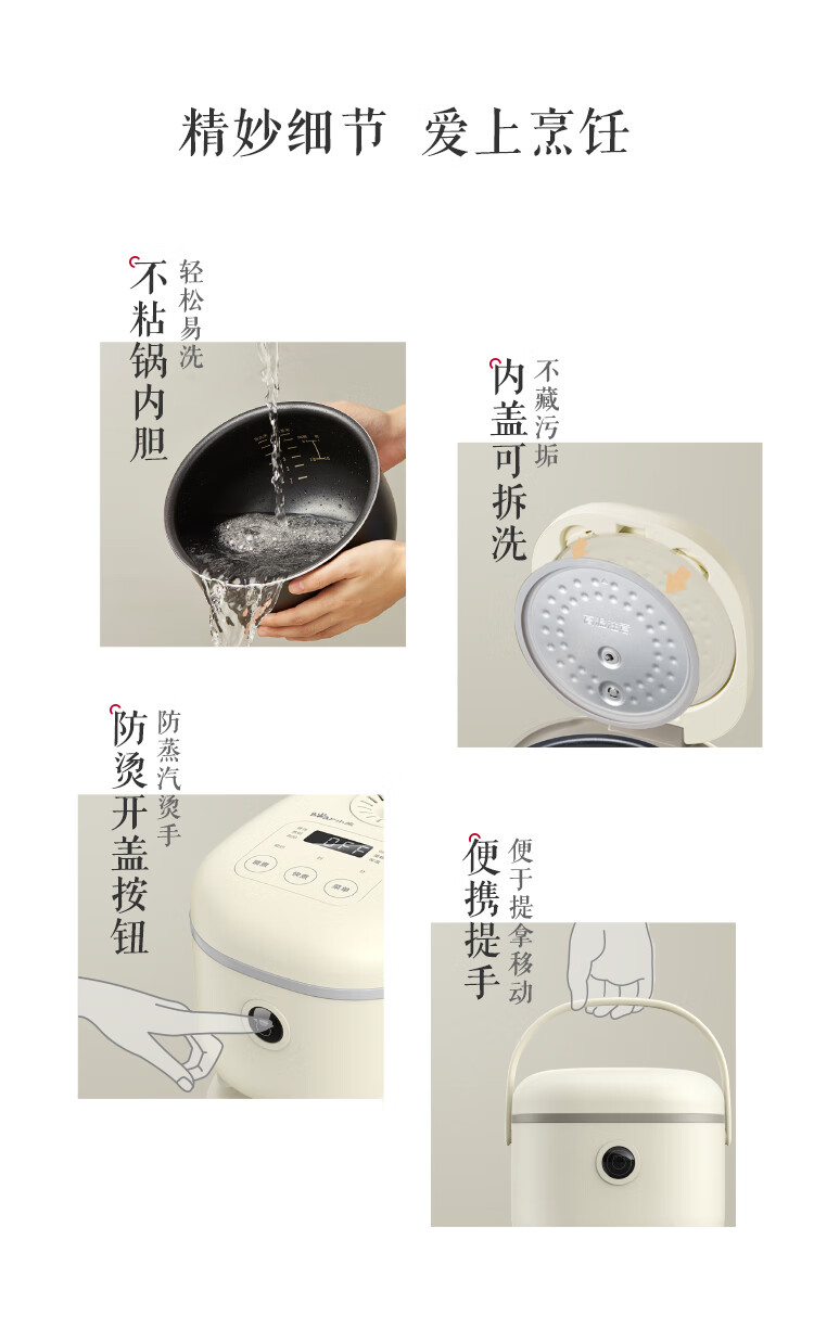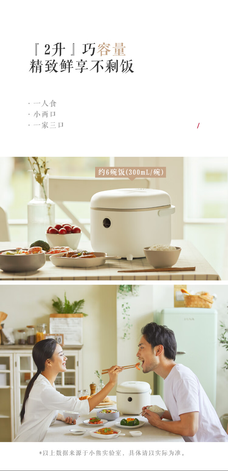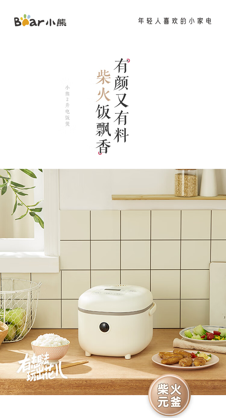 小熊(Bear)电饭煲小 2升迷你小容量智能预约小米粥保温1-2人小型多功能柴火元釜内胆2-3人电饭锅2L DFB-B20A1