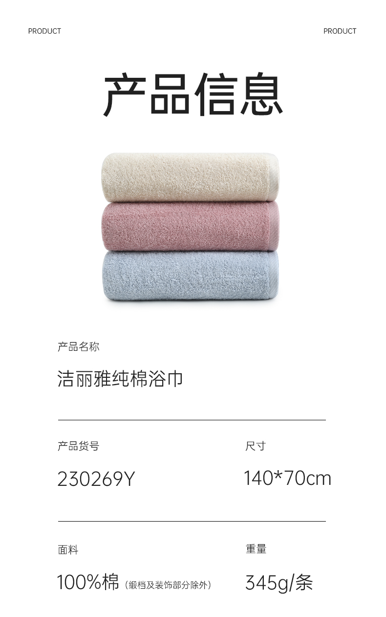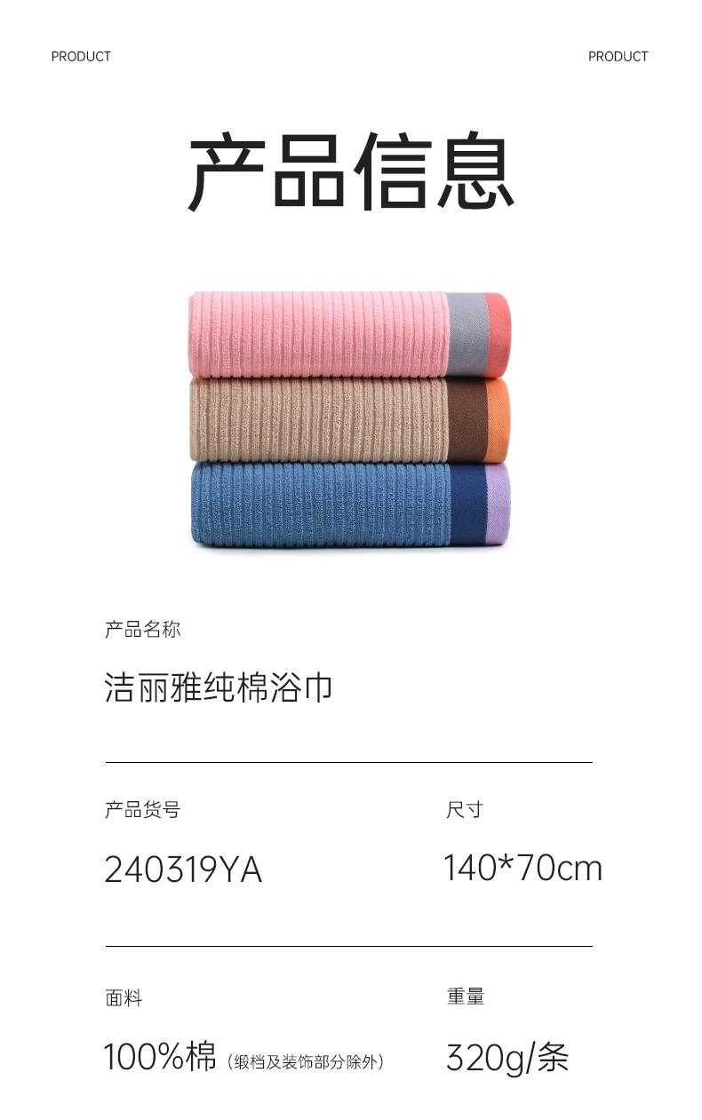 洁丽雅棉浴巾100%棉吸水柔软蓬松浴室家用洗澡成人浴巾情侣透气