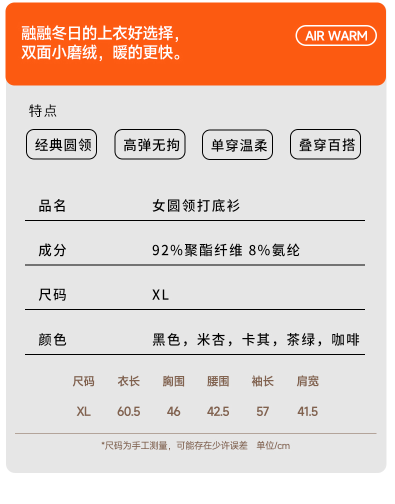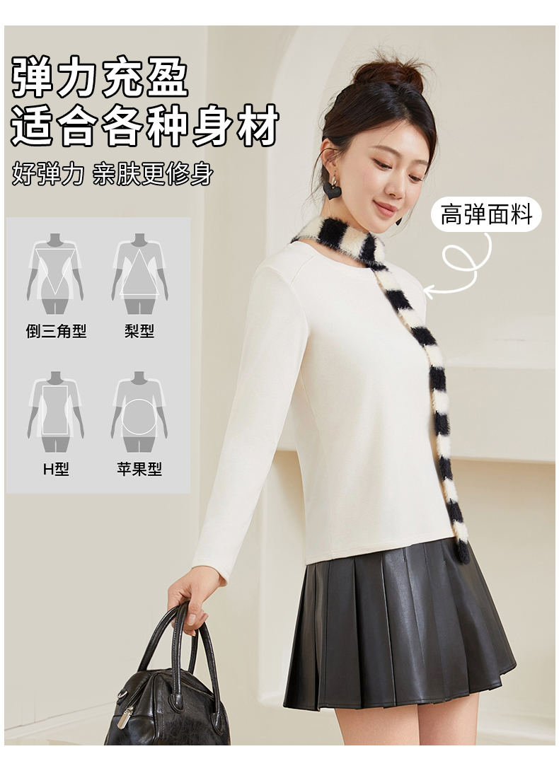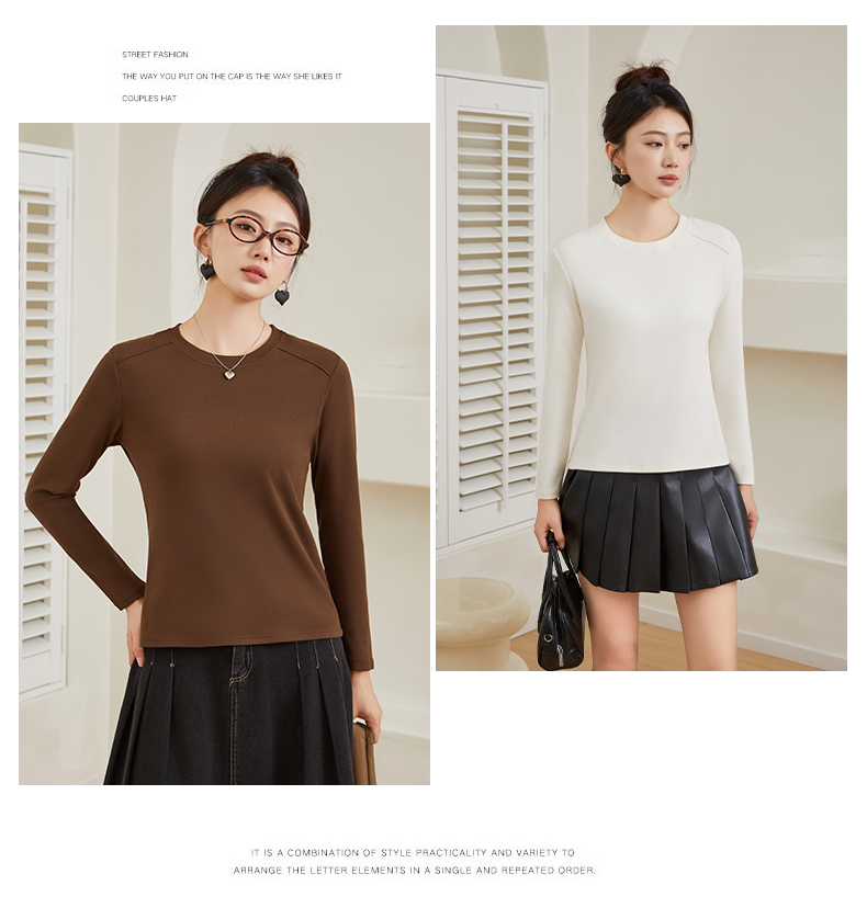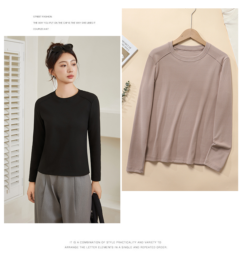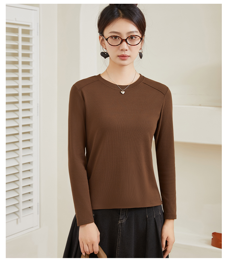 秋季新款女圆领轻奢打底衫柔百搭软亲肤舒适保暖上衣5801