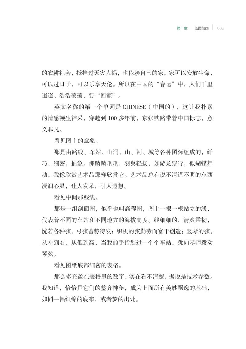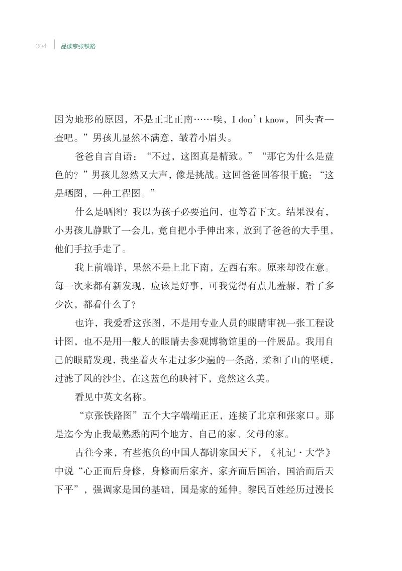 京张铁路是中国人自主勘测、自主设计、自主建造的第一条铁路,是中国铁路史上的里程碑,京张高铁是在这条路上的奇迹接力。本书以博物馆的文物为着眼点,以全新的视角、拓展的思维、创新的结构、详实的资料,以及优美的文笔,叙述百年京张故事,传承京张铁路精神,发掘中国铁路的历史文化。全书透过一张铁路蓝图、一纸清政府的任命书、一个车站,众多的仪器设备、钢轨桥隧,以及铿锵的铜像、珍贵的影集,让人看到不一样的京张铁路,带人梳理近代中国铁路、中国工业乃至中国的发展脉络,共同领略更多的奋斗、更坚韧的自强不息。