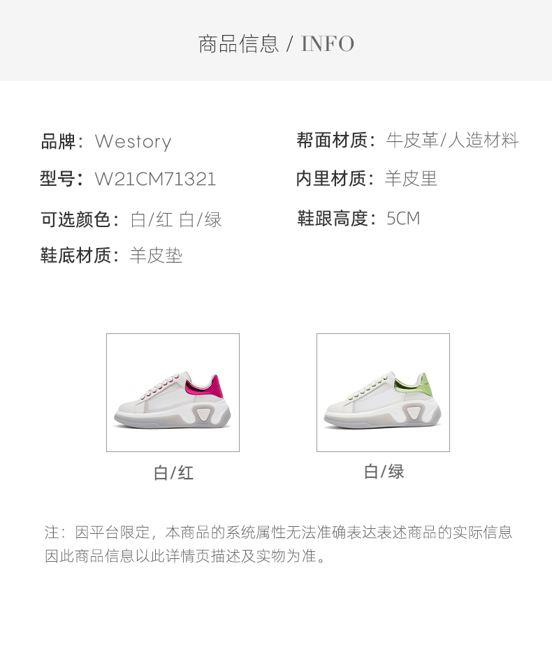 westory女鞋2021夏季新款软底增高小白鞋防滑休闲鞋W21CM71321