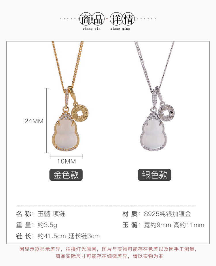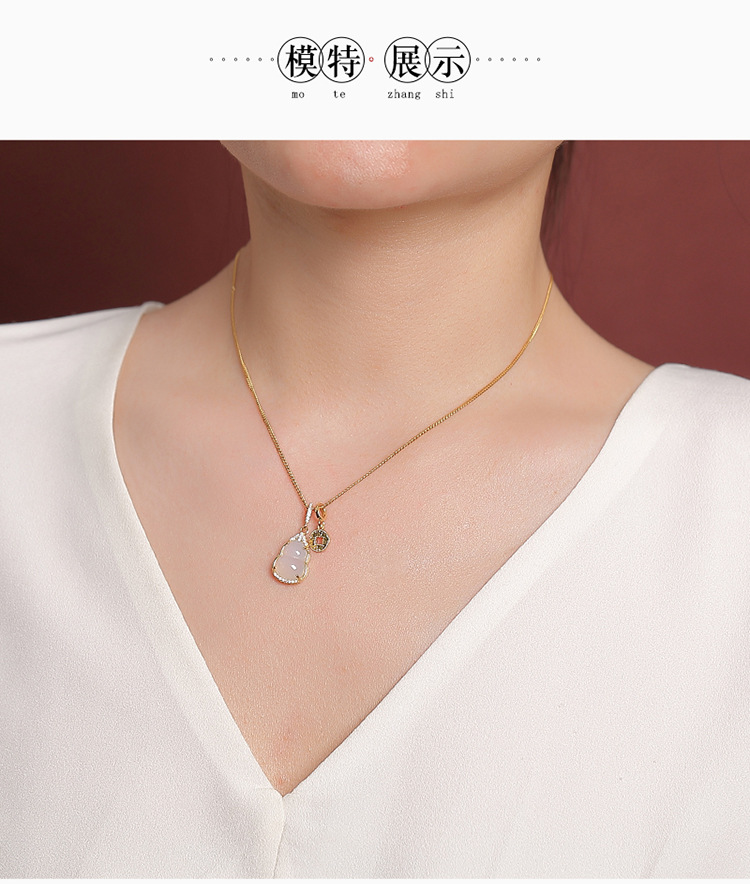 【清禄】S925纯银镀金玉髓葫芦吊坠套链【CW-XL00531】