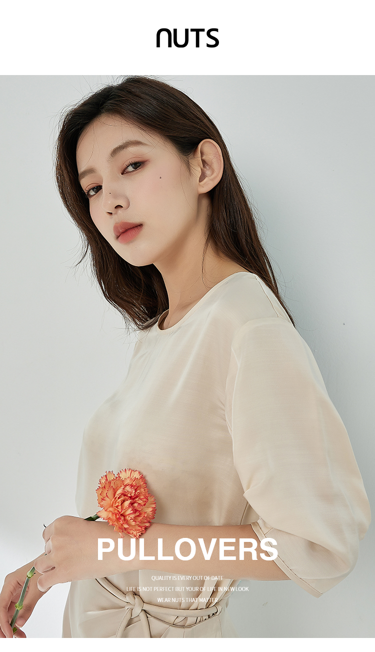 NUTS夏季新品纯色时尚简约气质圆领短袖套头衫326011182B