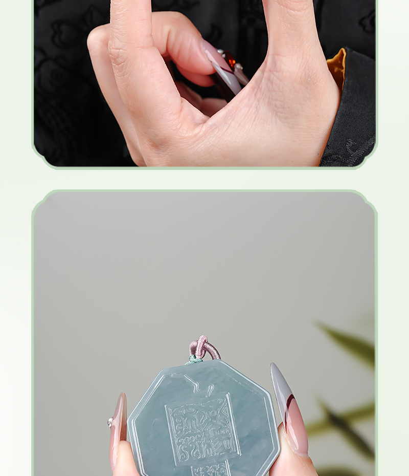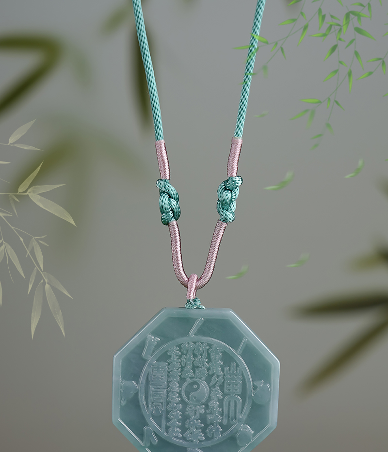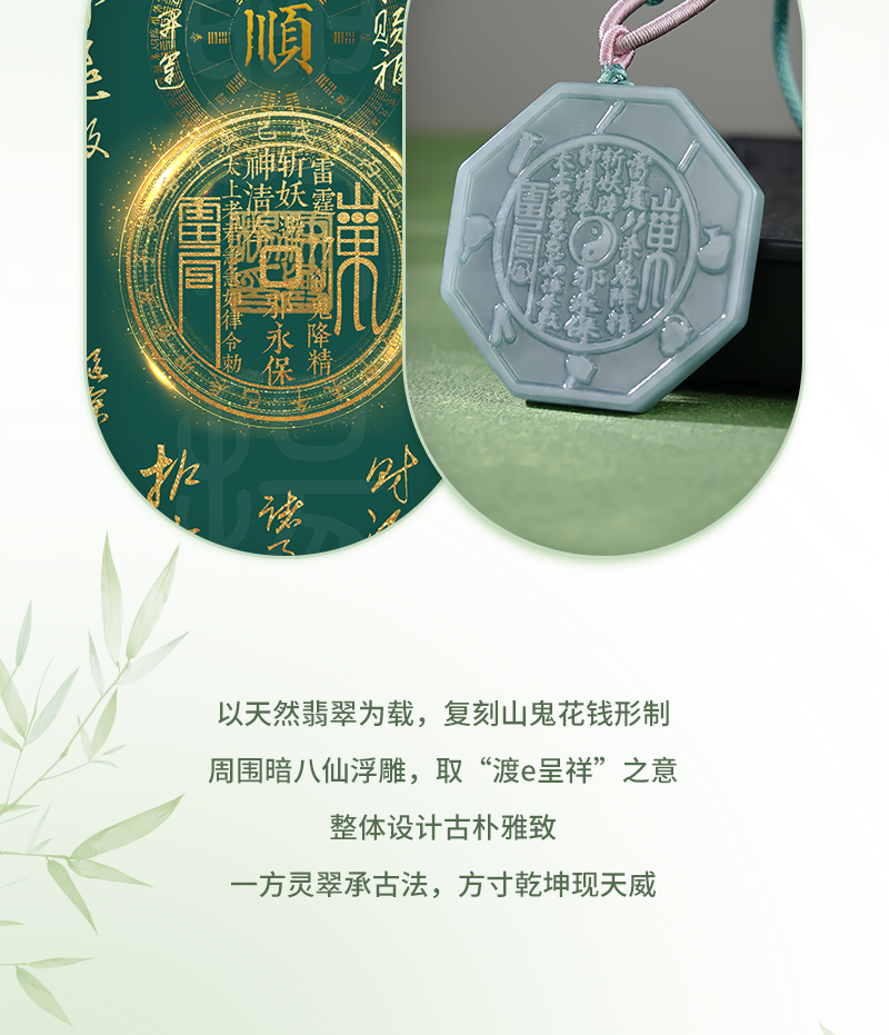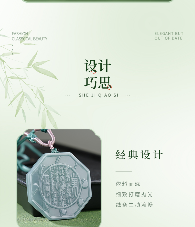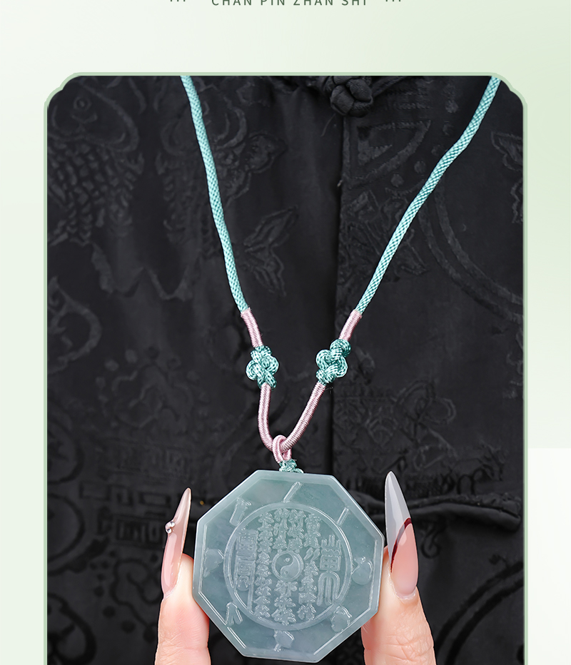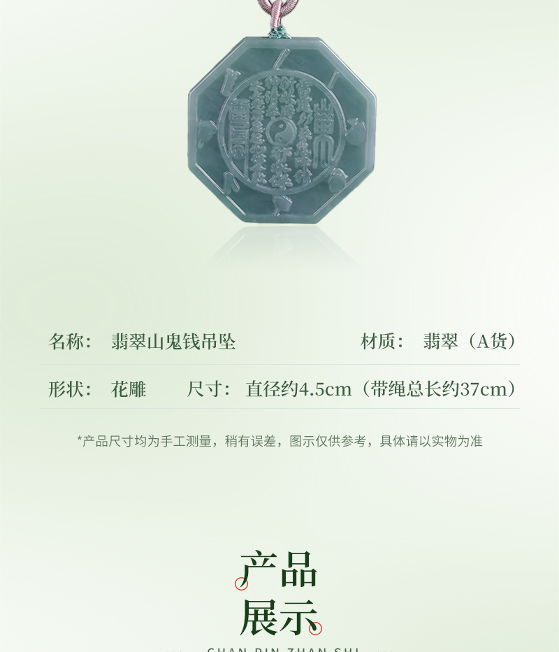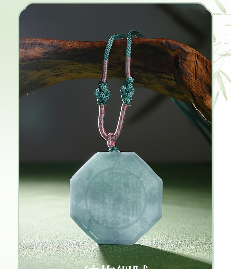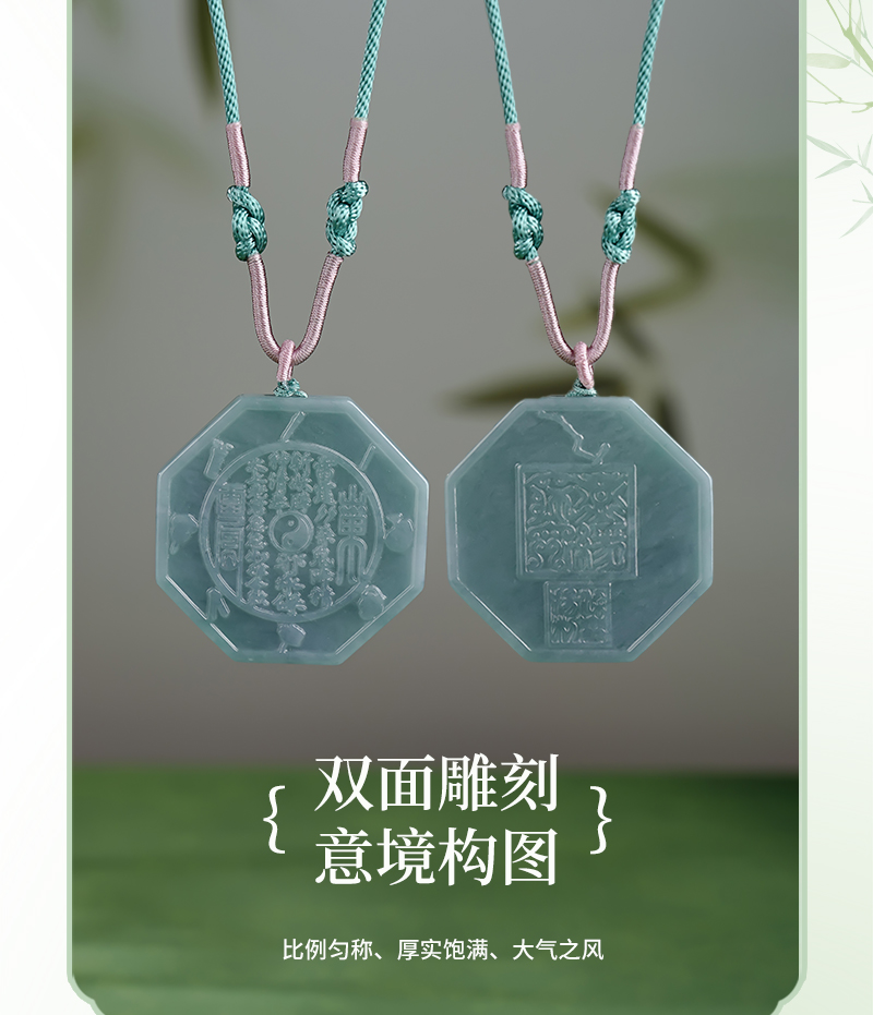 翡翠A货山gui花钱吊国风八gua平安扣挂件玉雕