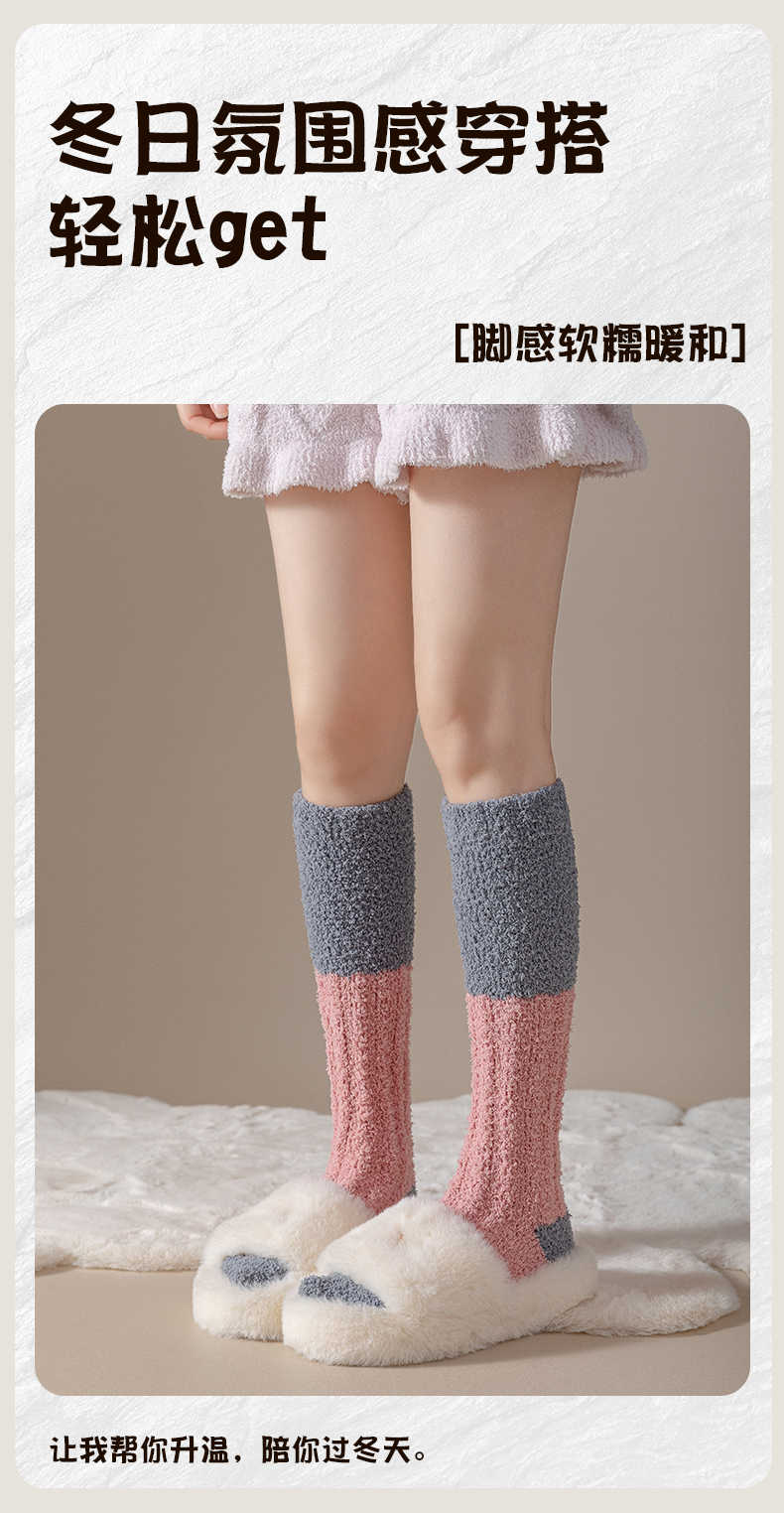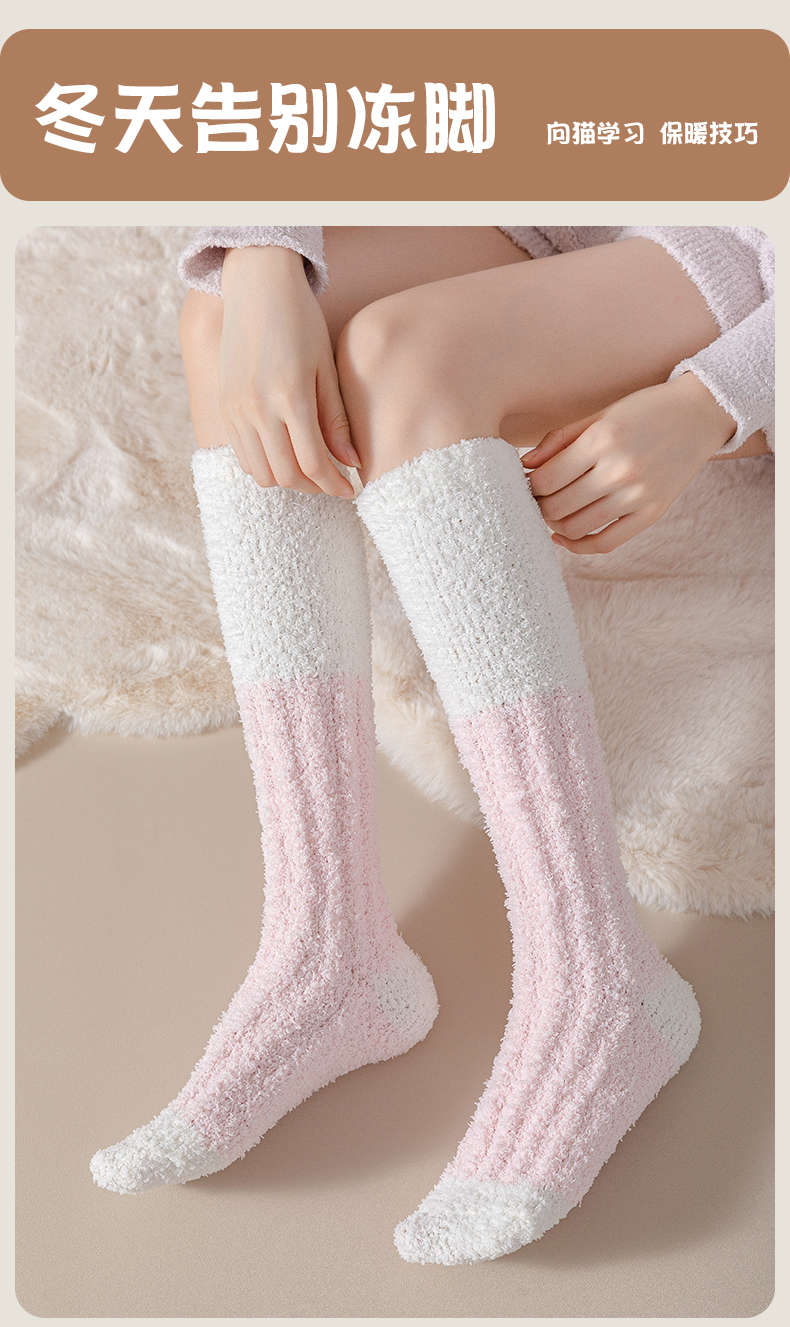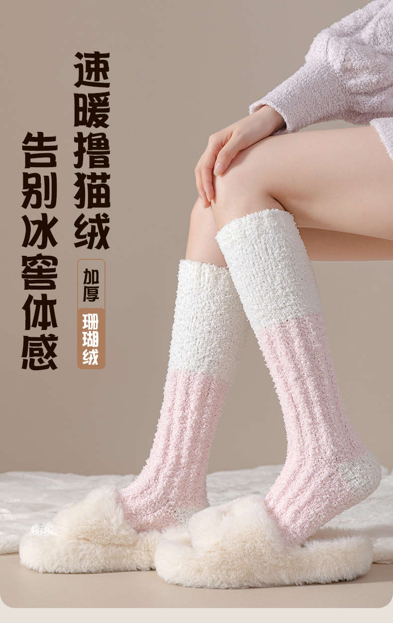 男女同款|奶fufu,毛茸茸的珊瑚绒长筒袜子,火炉一般,超级暖,可以穿着睡觉的袜子