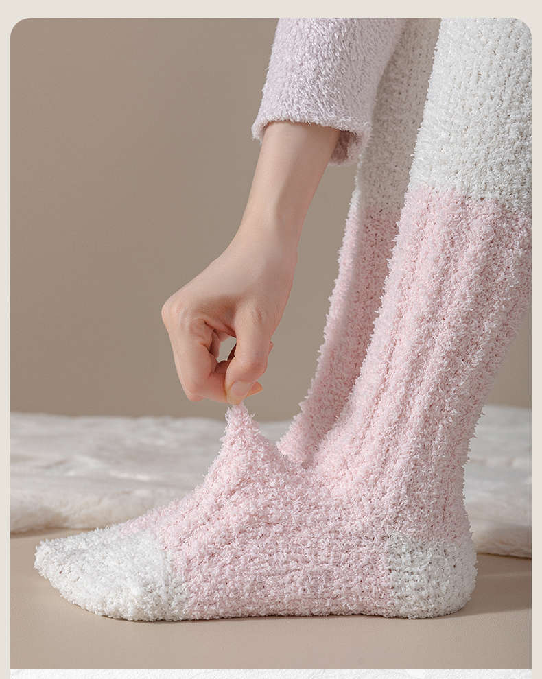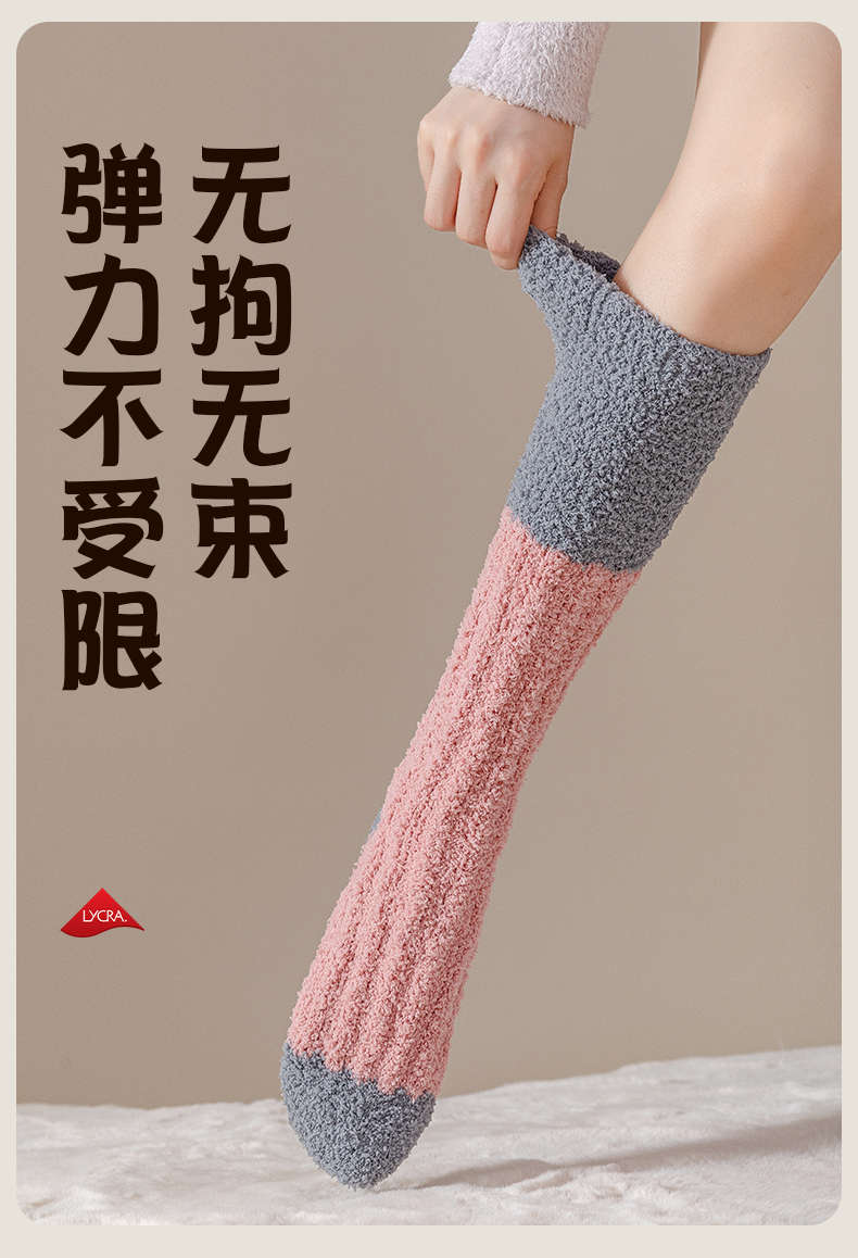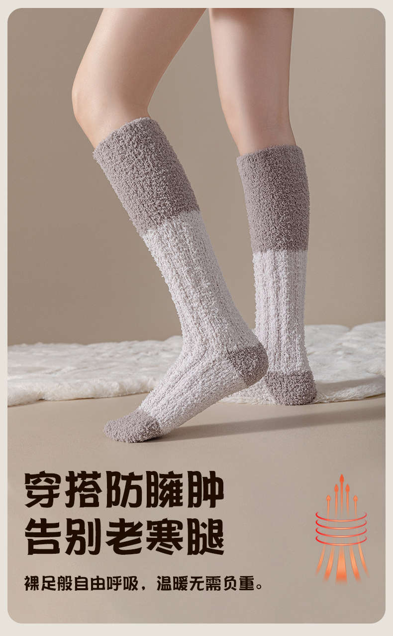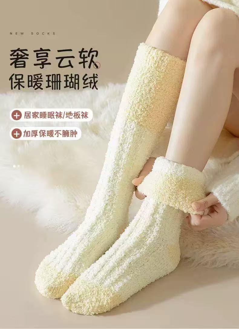 男女同款|奶fufu,毛茸茸的珊瑚绒长筒袜子,火炉一般,超级暖,可以穿着睡觉的袜子