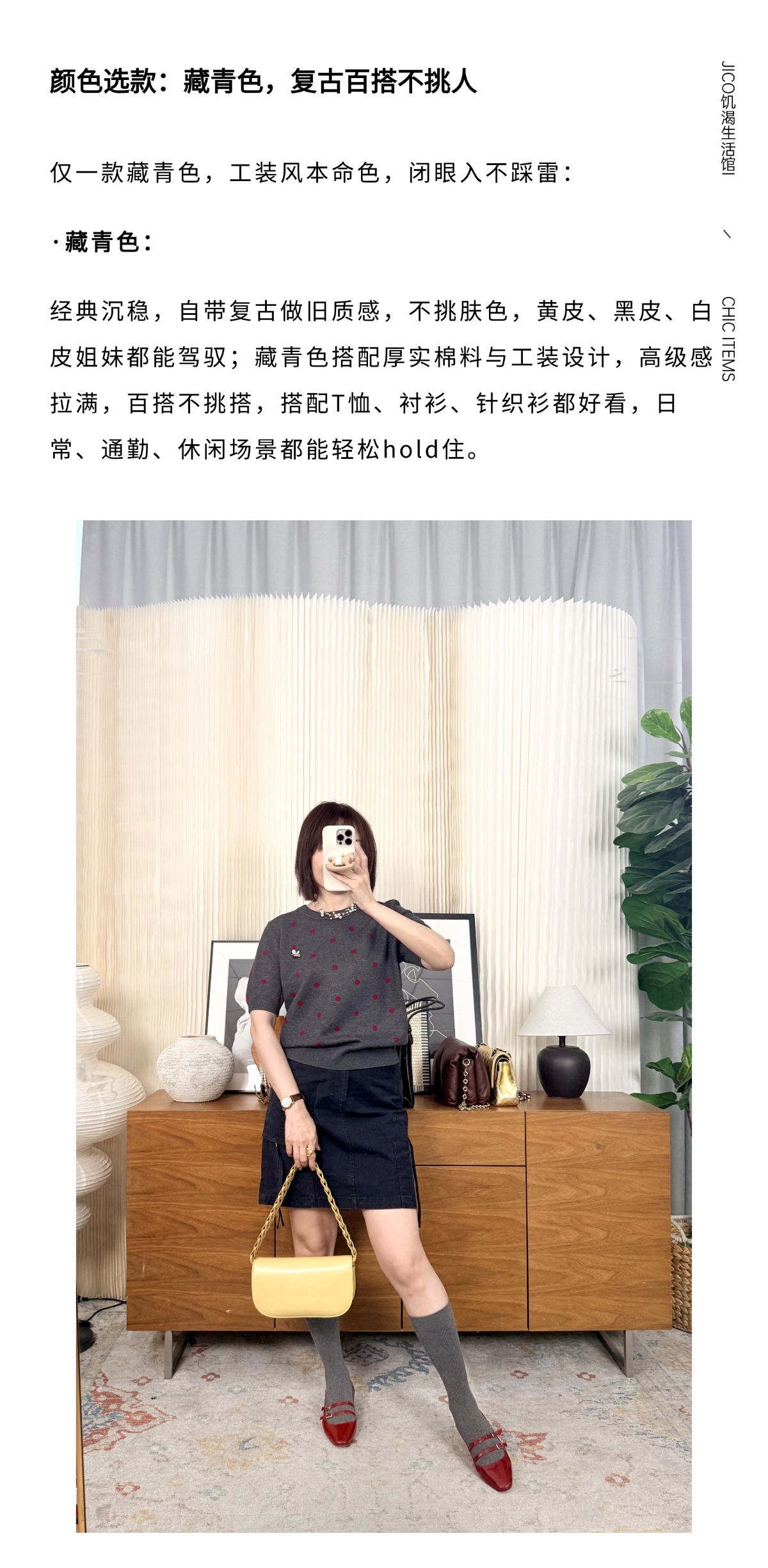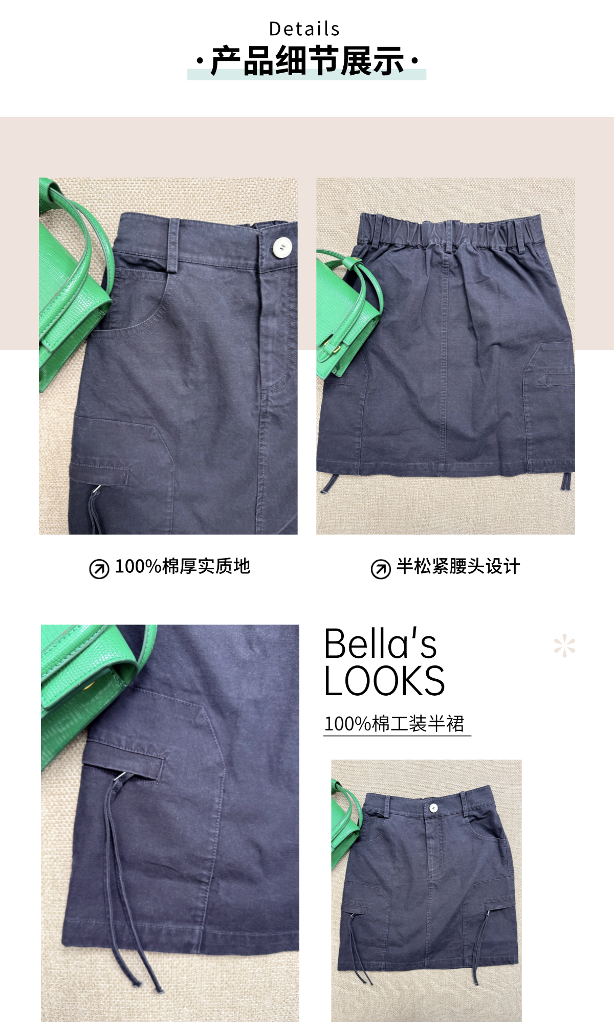 打破边界 时髦工装风100%棉半裙 藏青复古洗水 减龄百搭 全身高覆盖