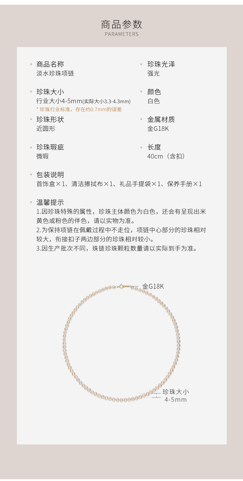 【品牌优选】京润珍珠 岁语G18K金4-5mm近圆形淡水珍珠项链MS