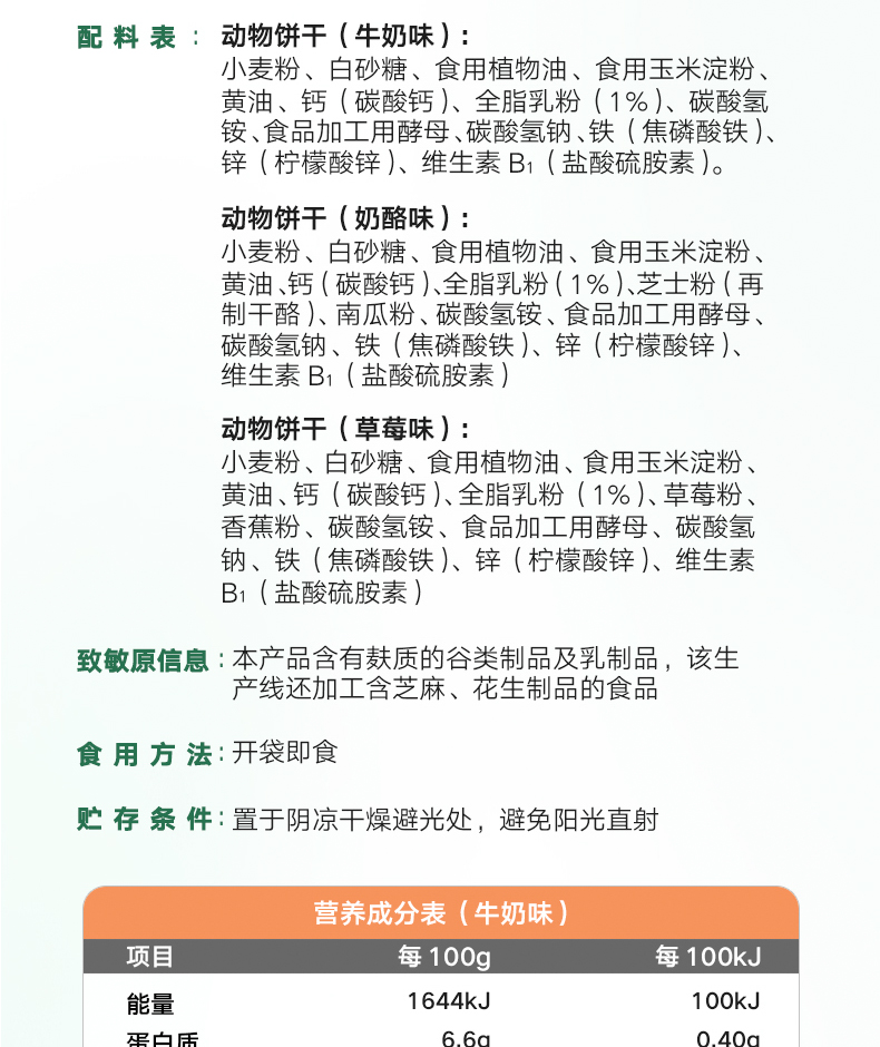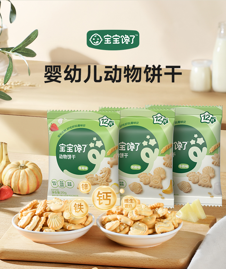 【宝宝馋了】婴幼儿动物饼干 (奶酪/草莓/牛奶)强化钙铁锌 送12月+婴幼儿食谱
