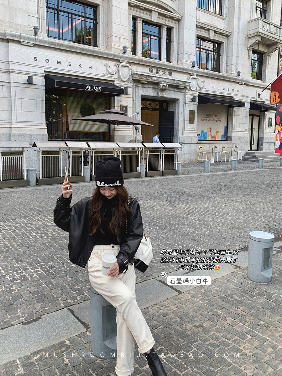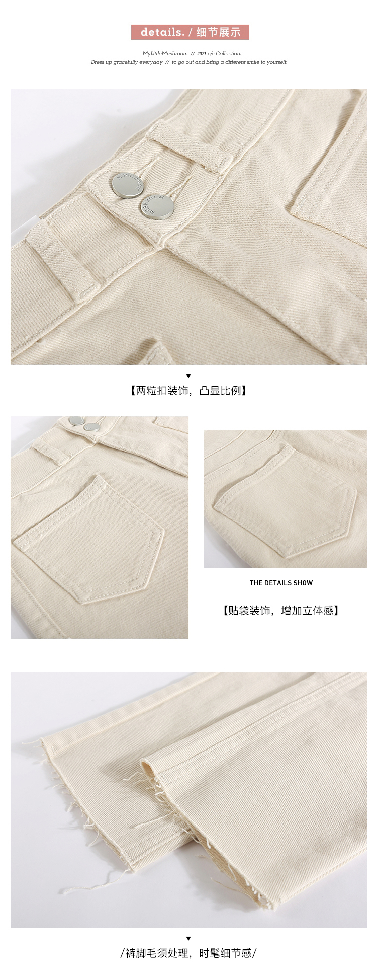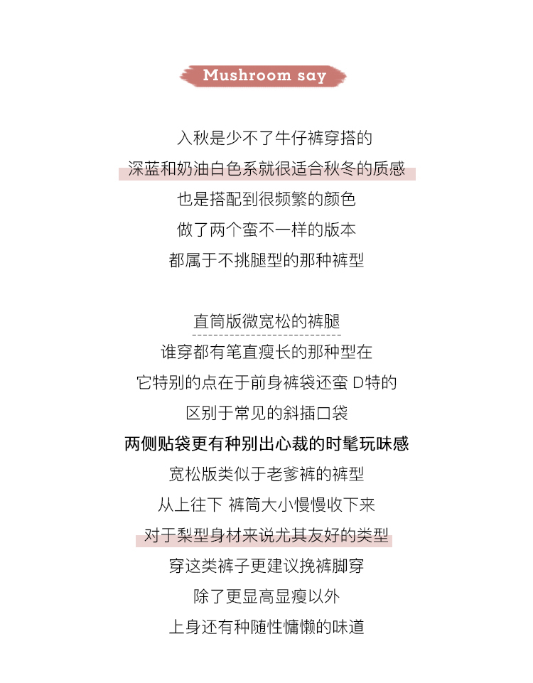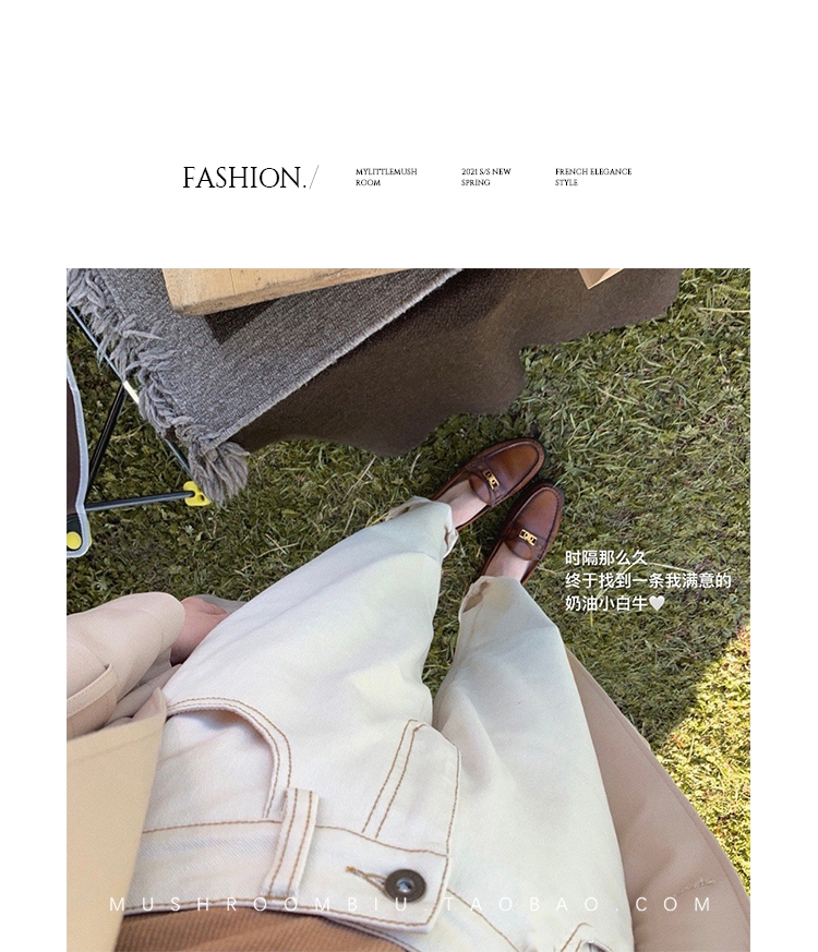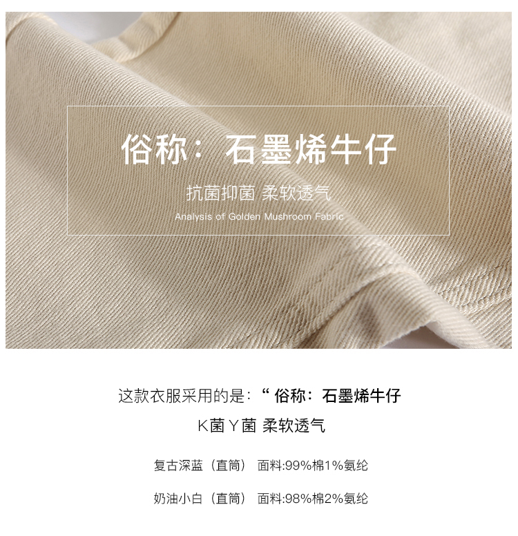 金蘑菇菇【 石墨烯牛仔裤】复古明线白色休闲直筒牛仔裤女