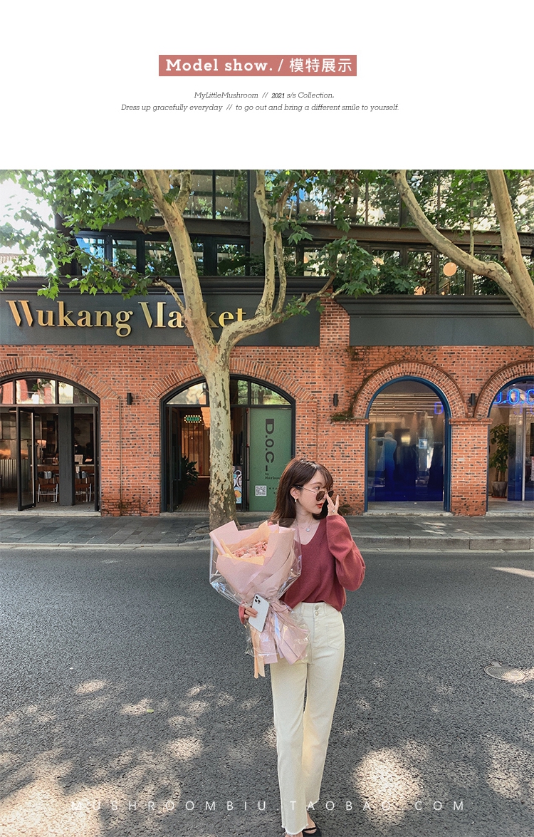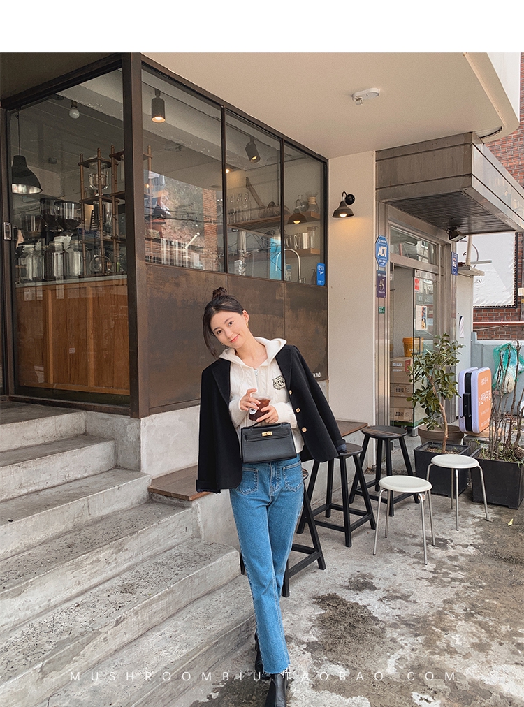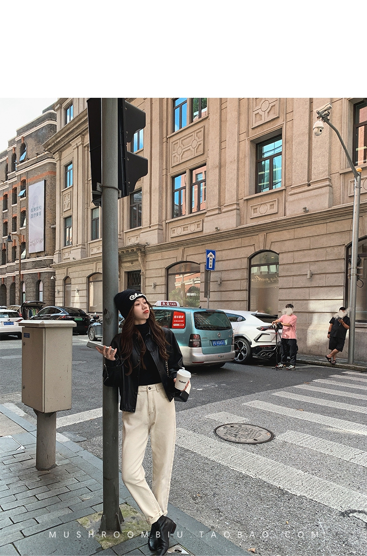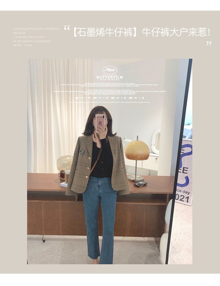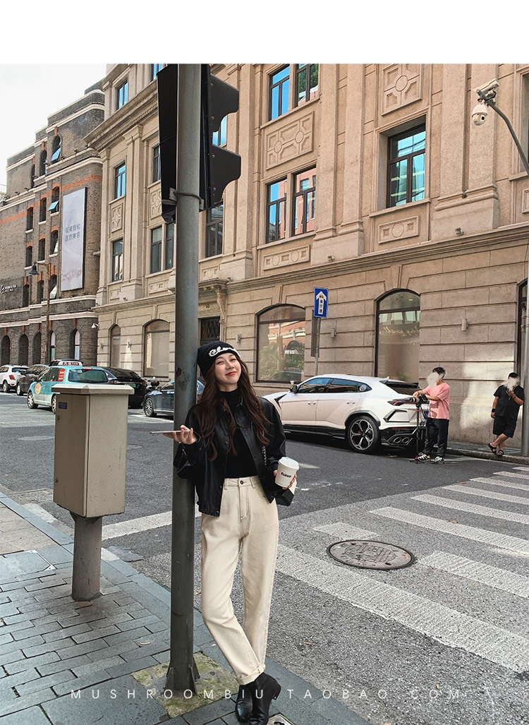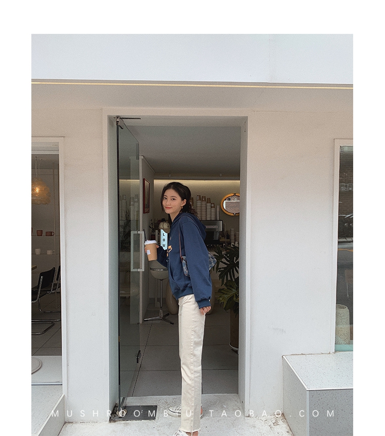 金蘑菇菇【 石墨烯牛仔裤】复古明线白色休闲直筒牛仔裤女