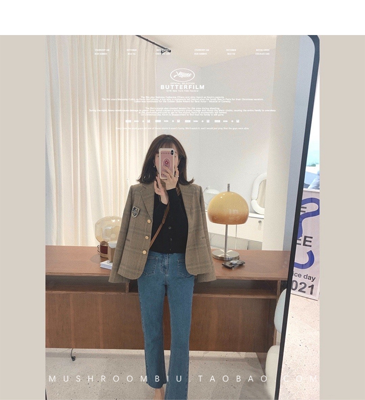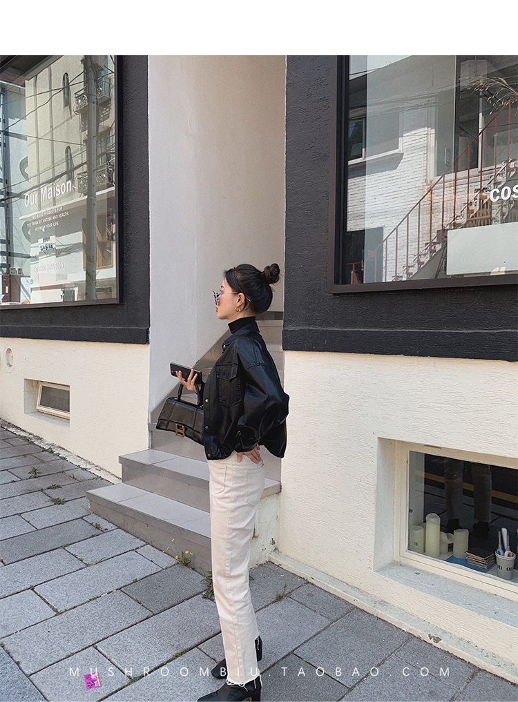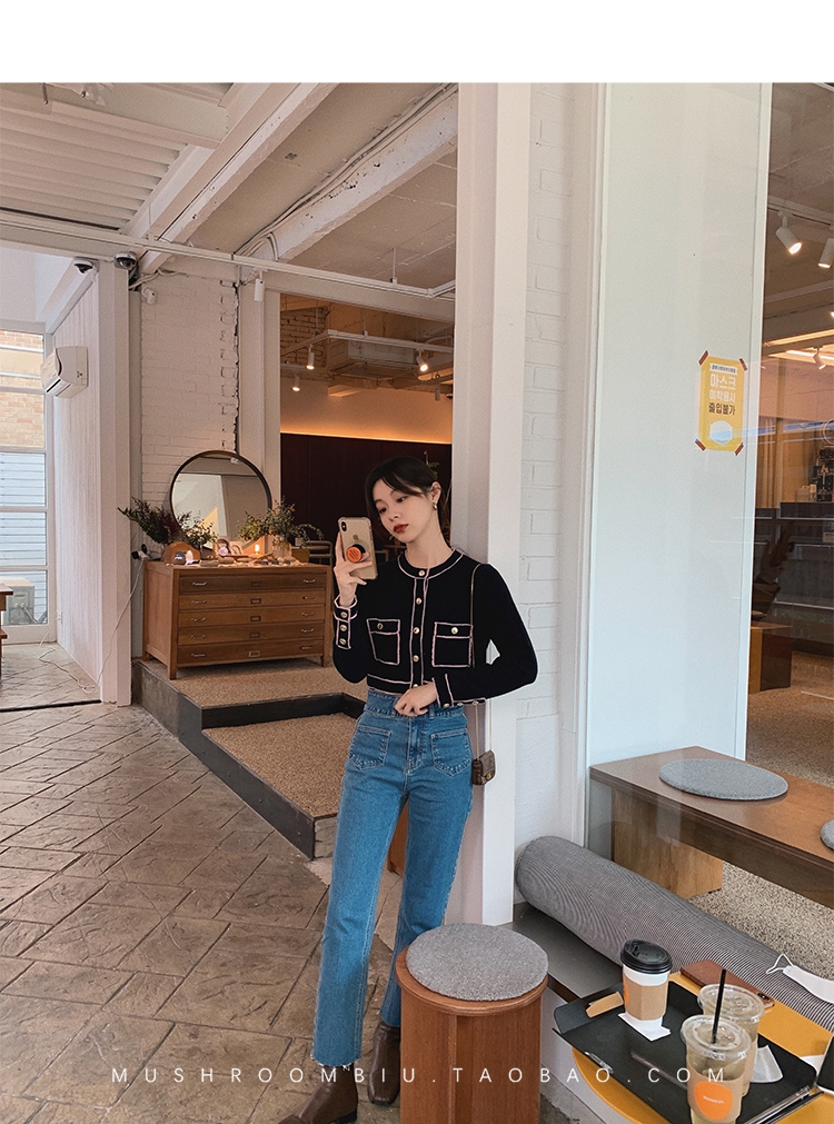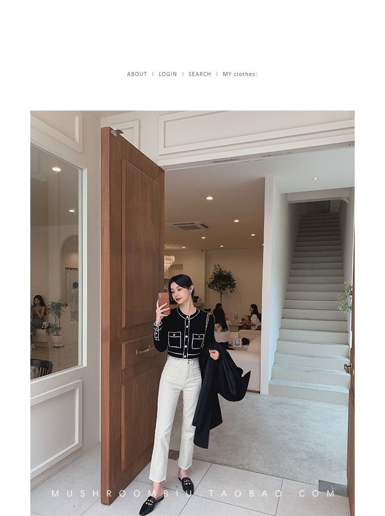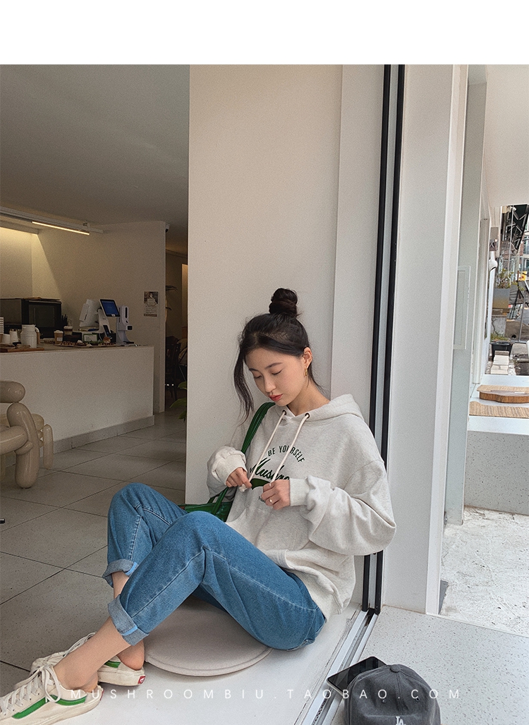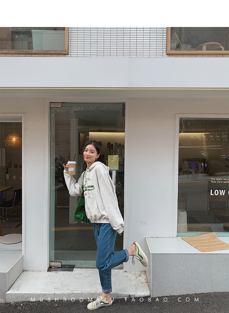 金蘑菇菇【 石墨烯牛仔裤】复古明线白色休闲直筒牛仔裤女