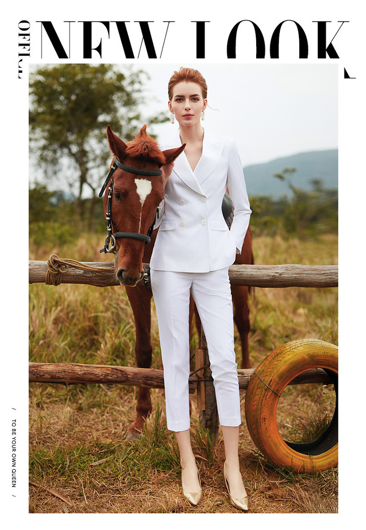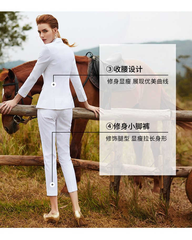 IWY/西装套装女小香风高冷御姐时尚显瘦小脚裤潮流白色条纹职业装CP9320