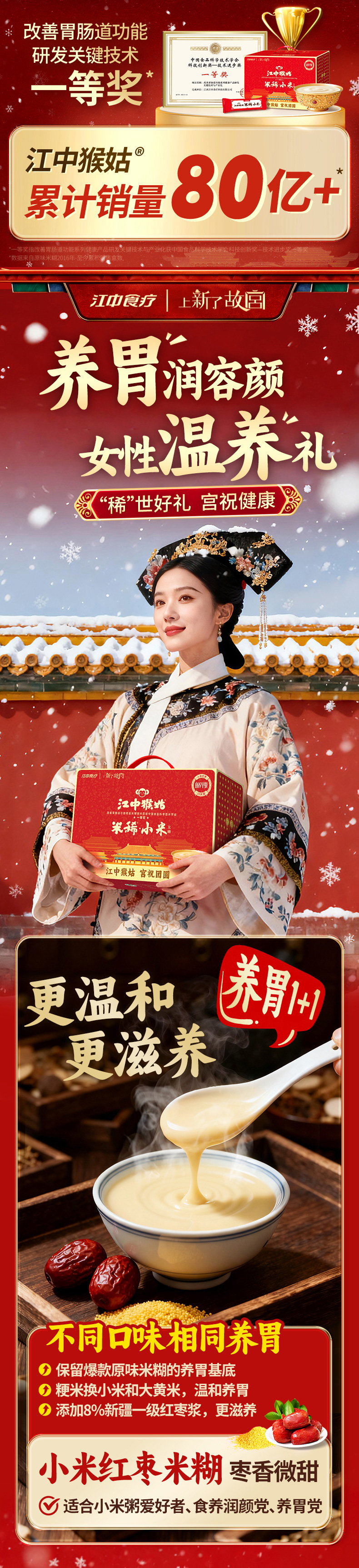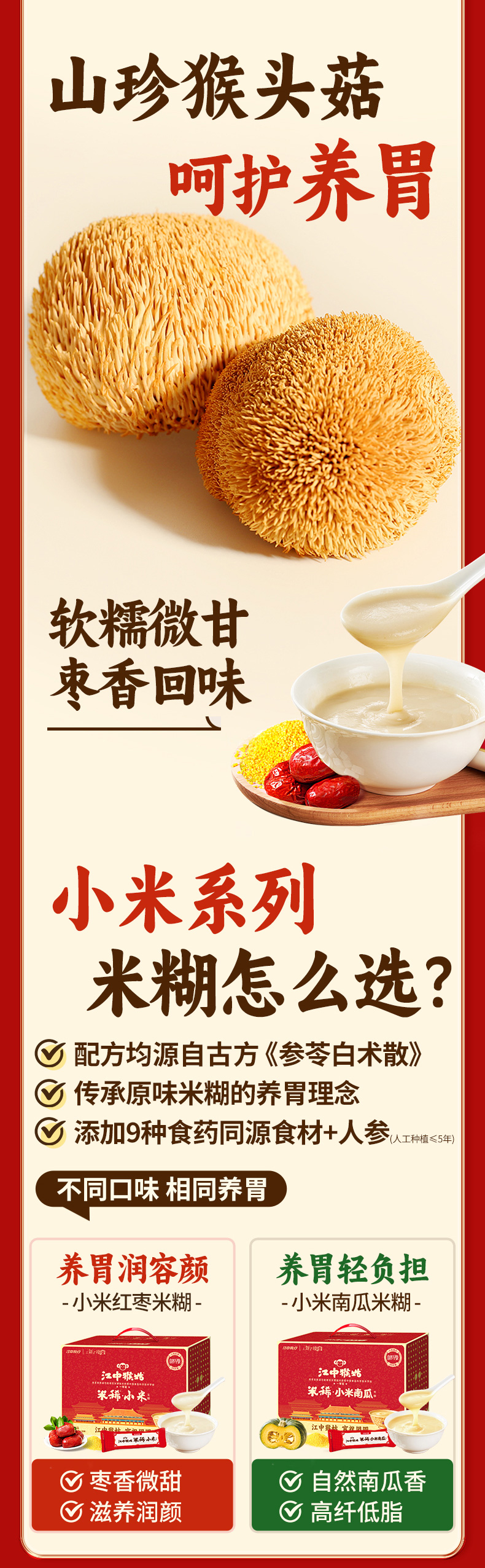 江中猴姑米稀小米红枣米糊 30天装 900g/30包/盒