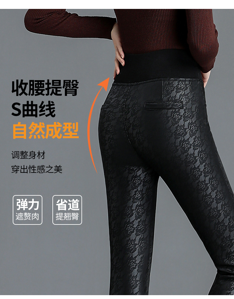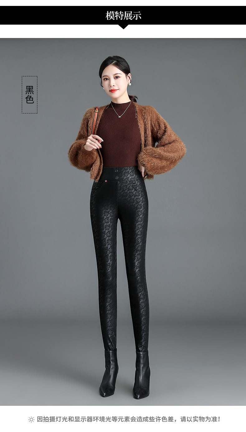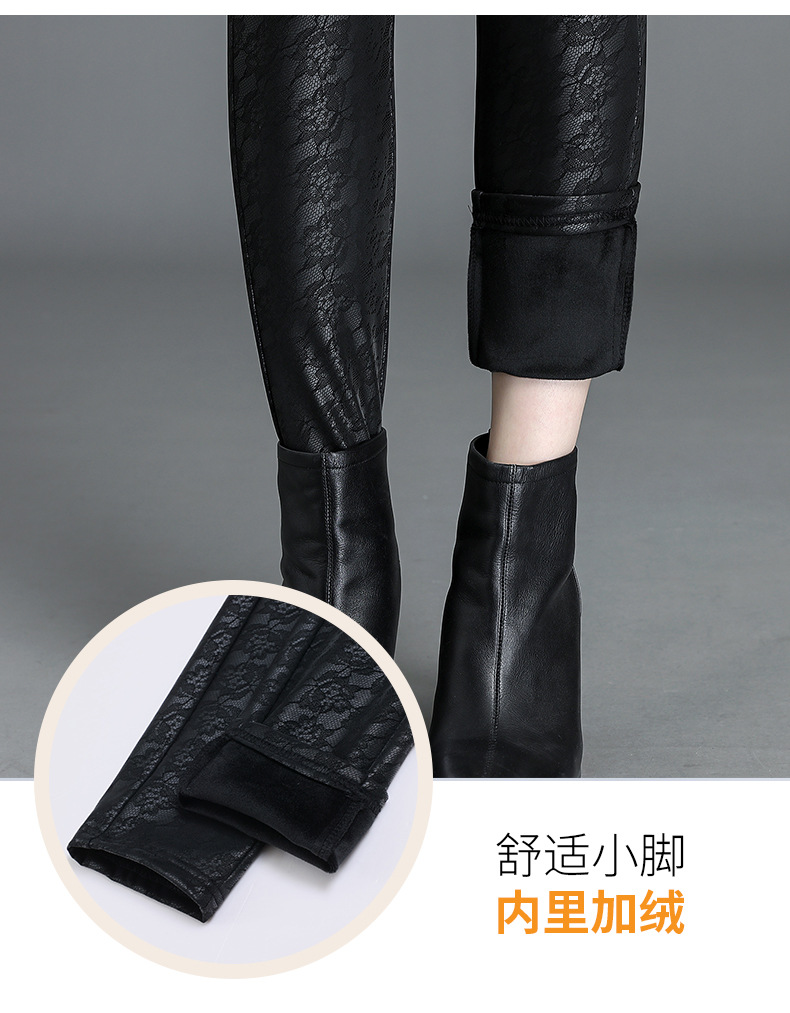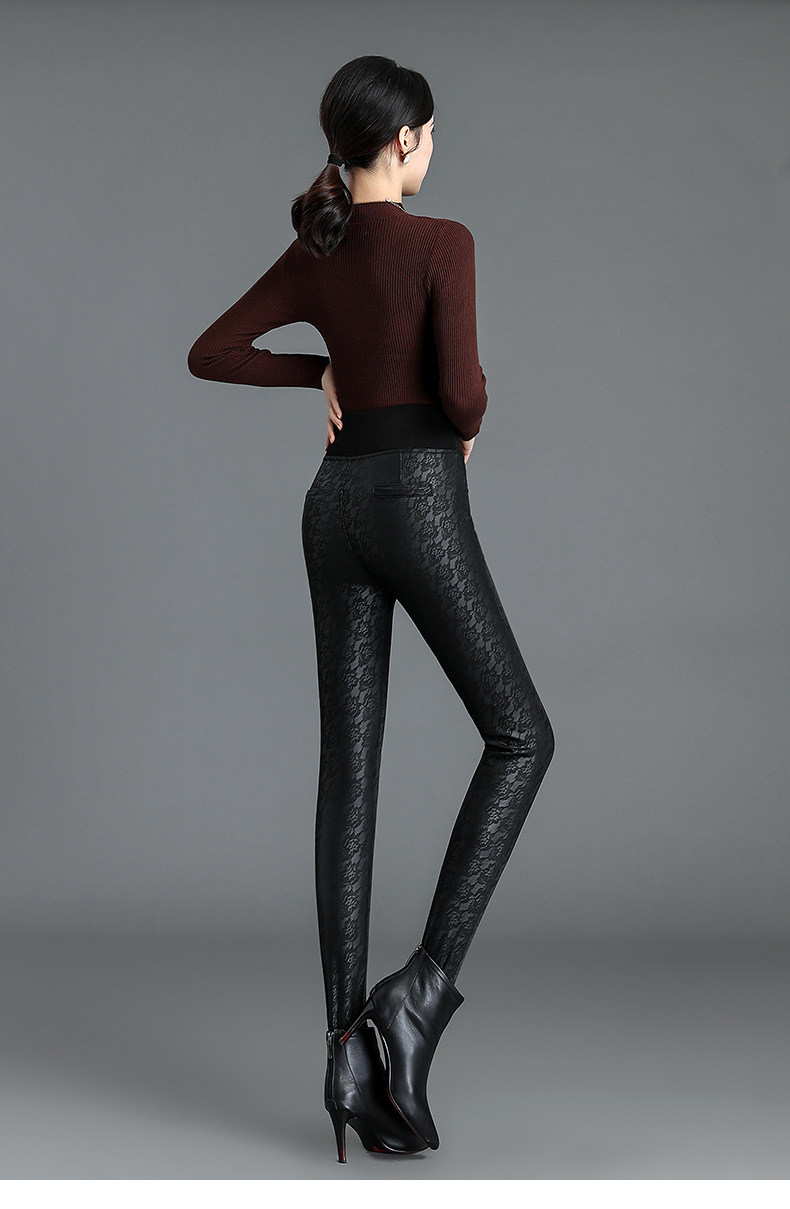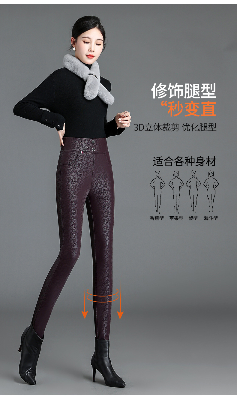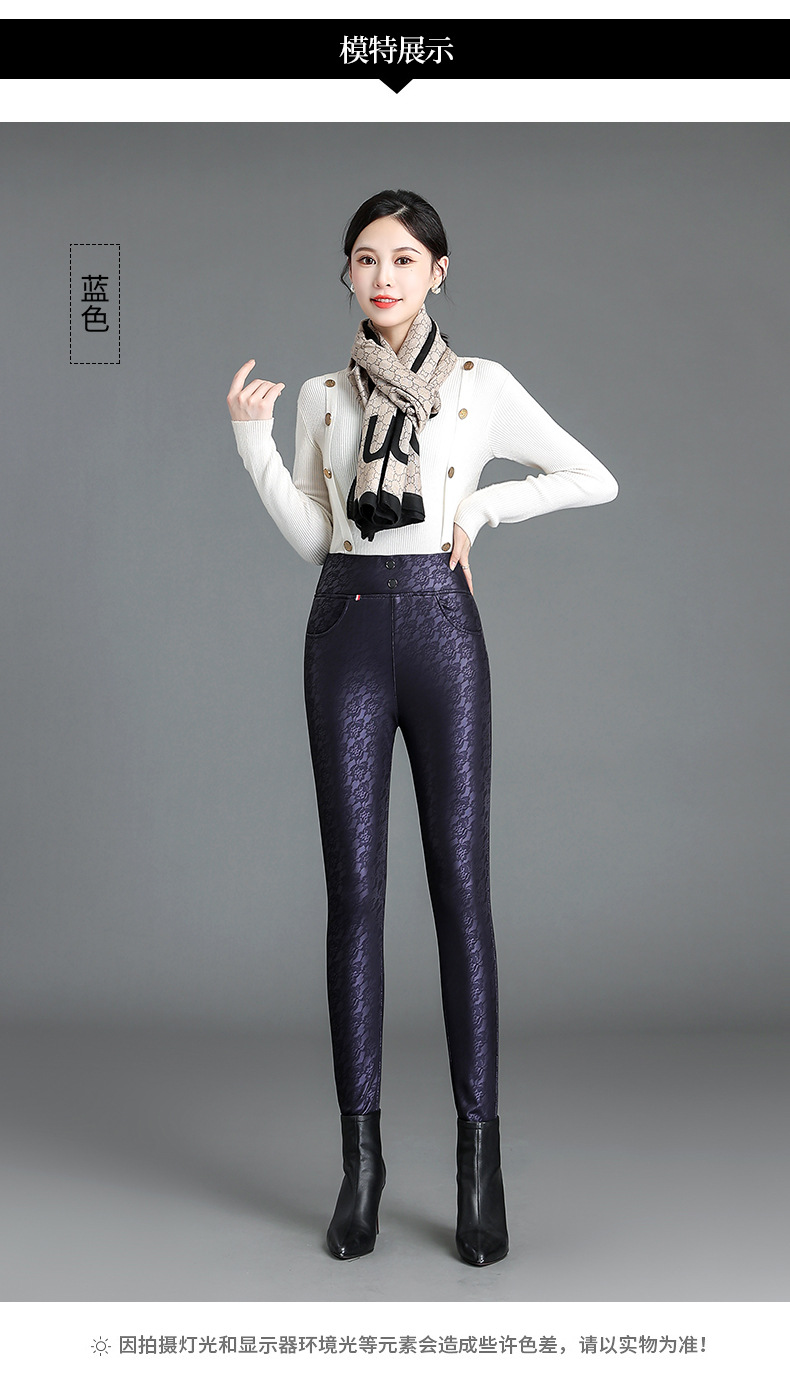 印花长款时尚加绒PU皮打底裤,新款松紧腰修身气质小脚裤MYX-Q8103