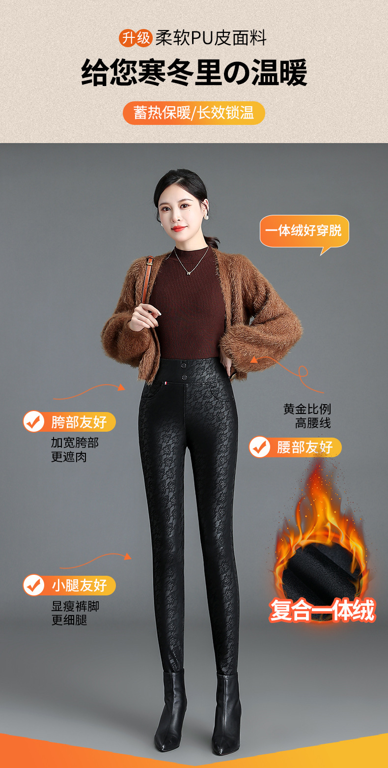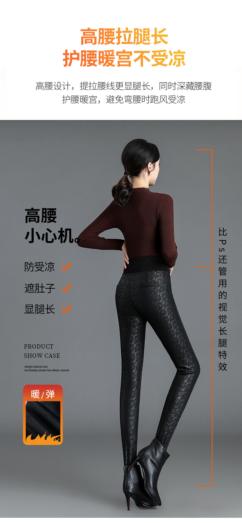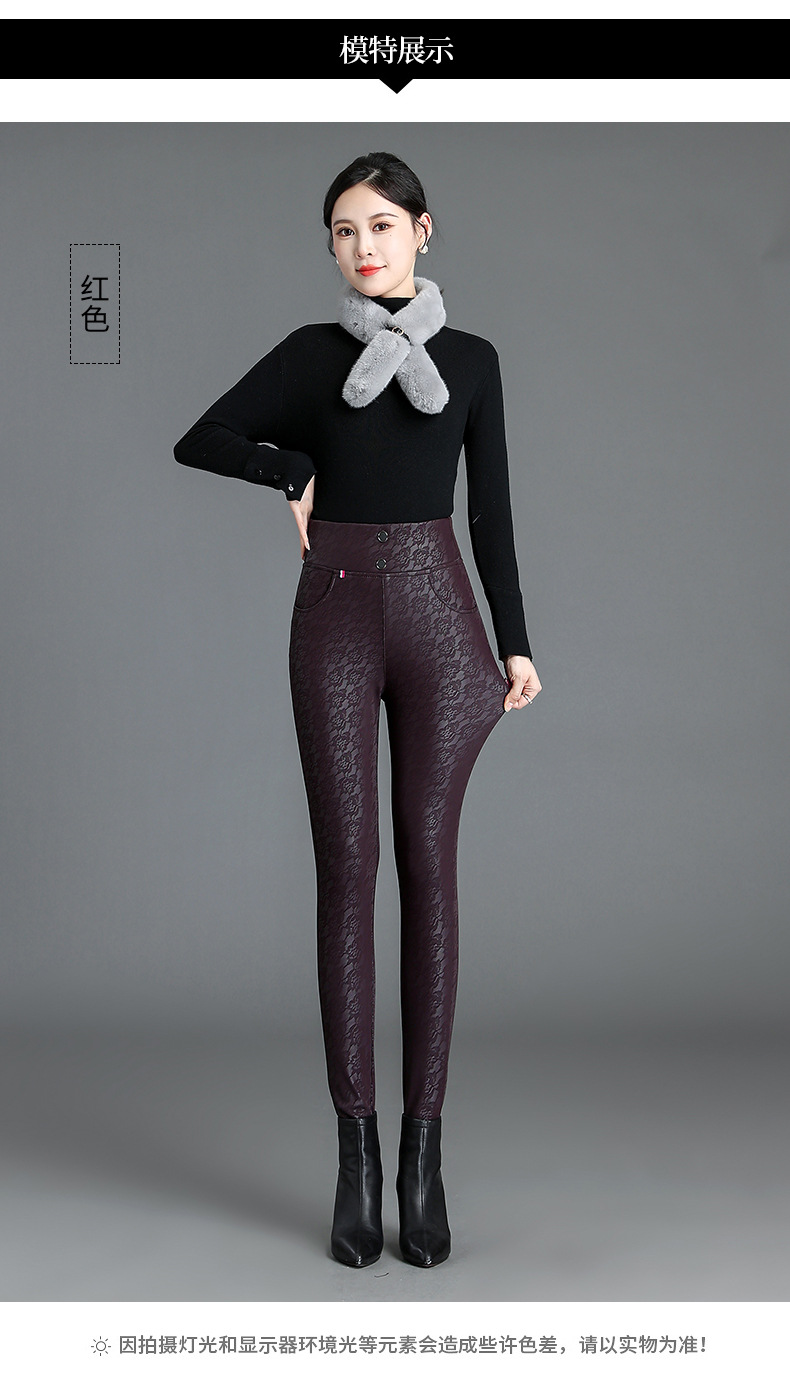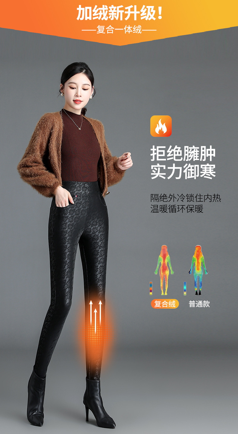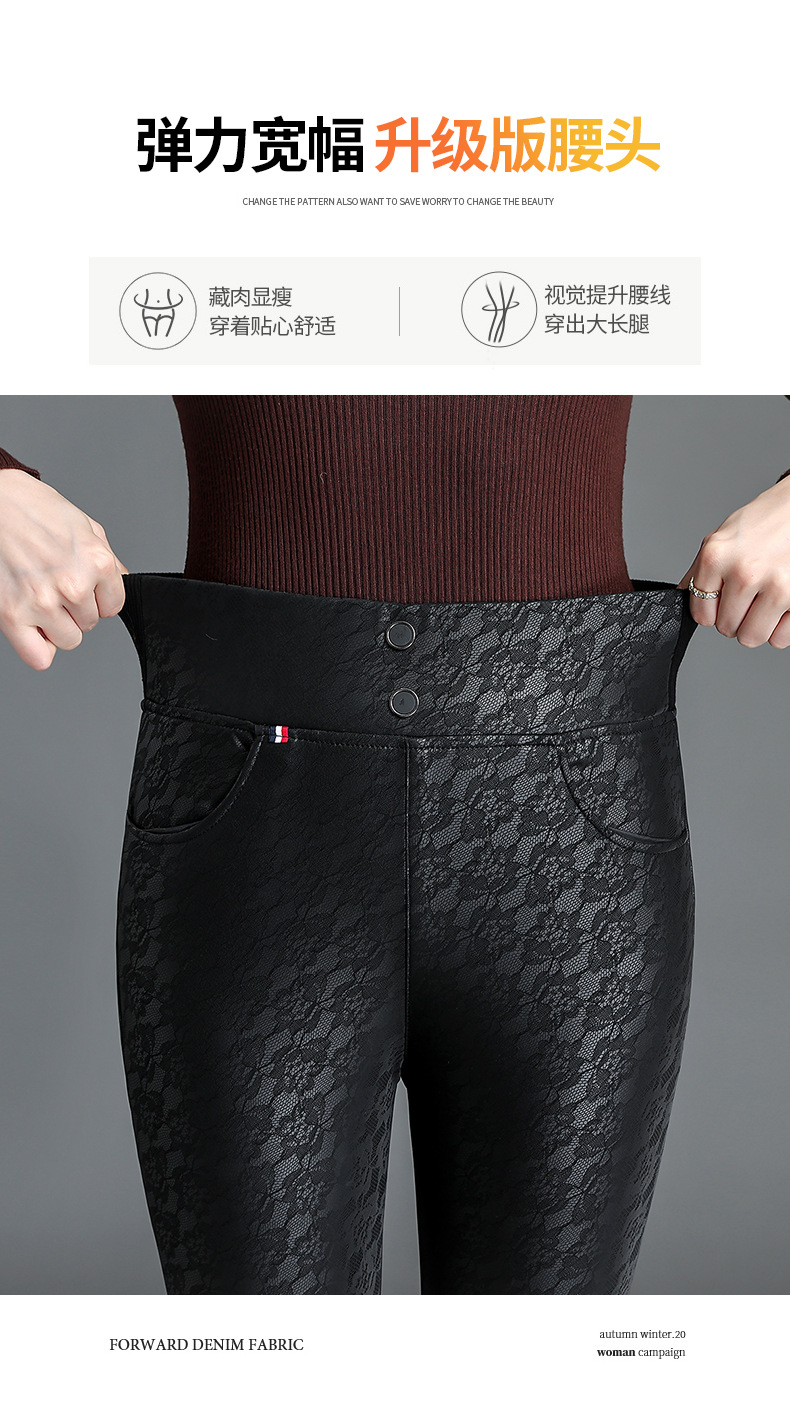 印花长款时尚加绒PU皮打底裤,新款松紧腰修身气质小脚裤MYX-Q8103