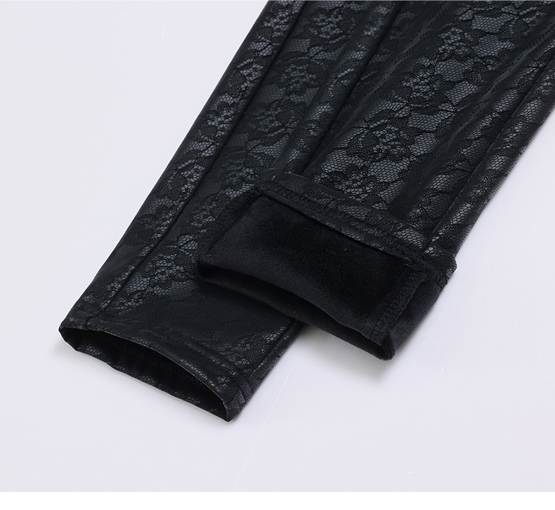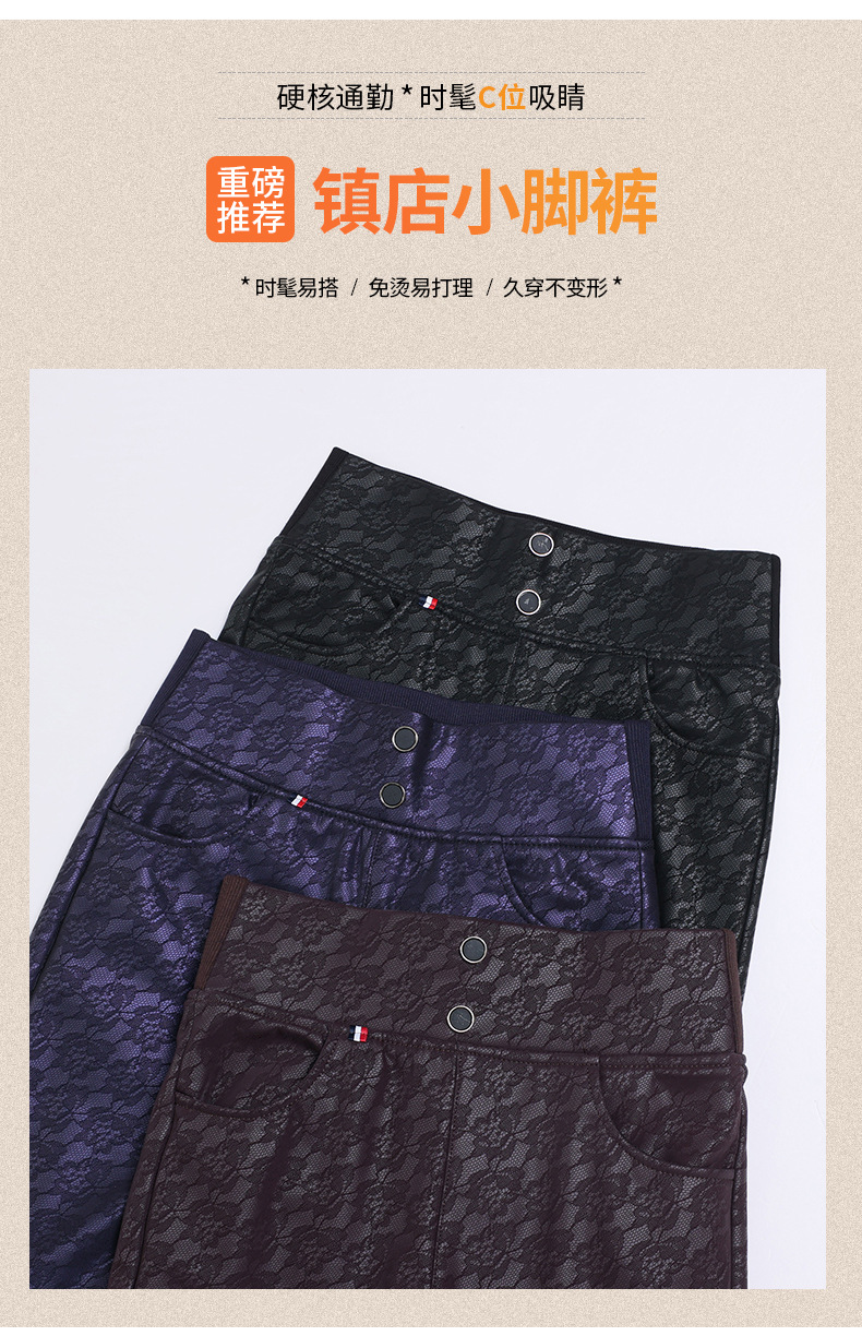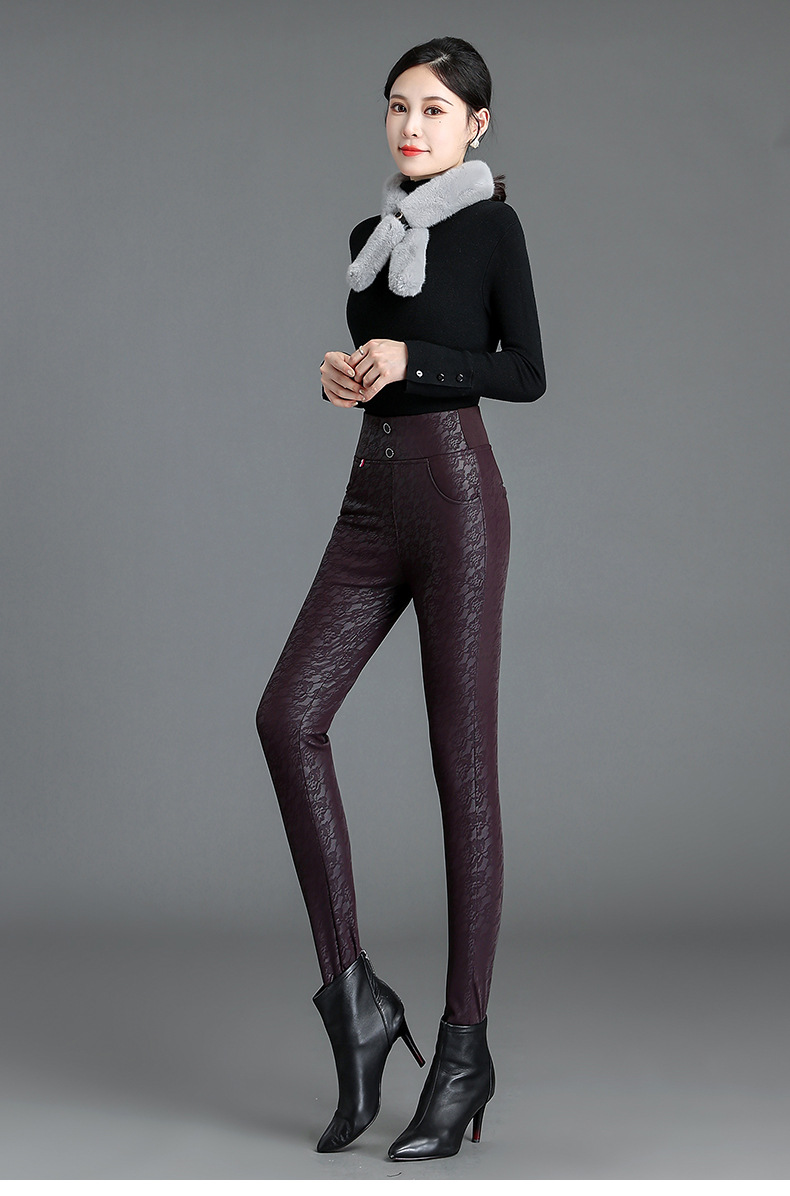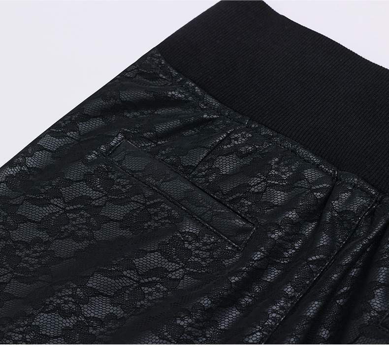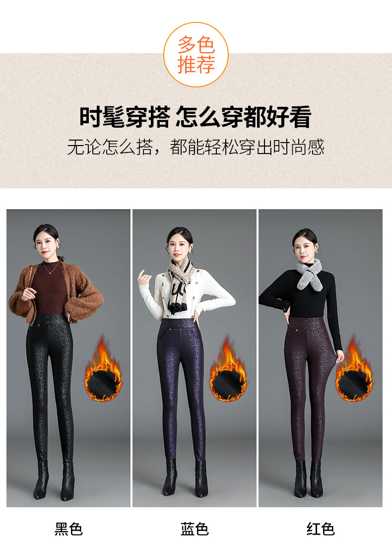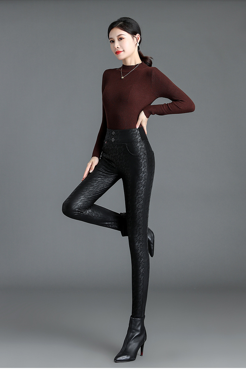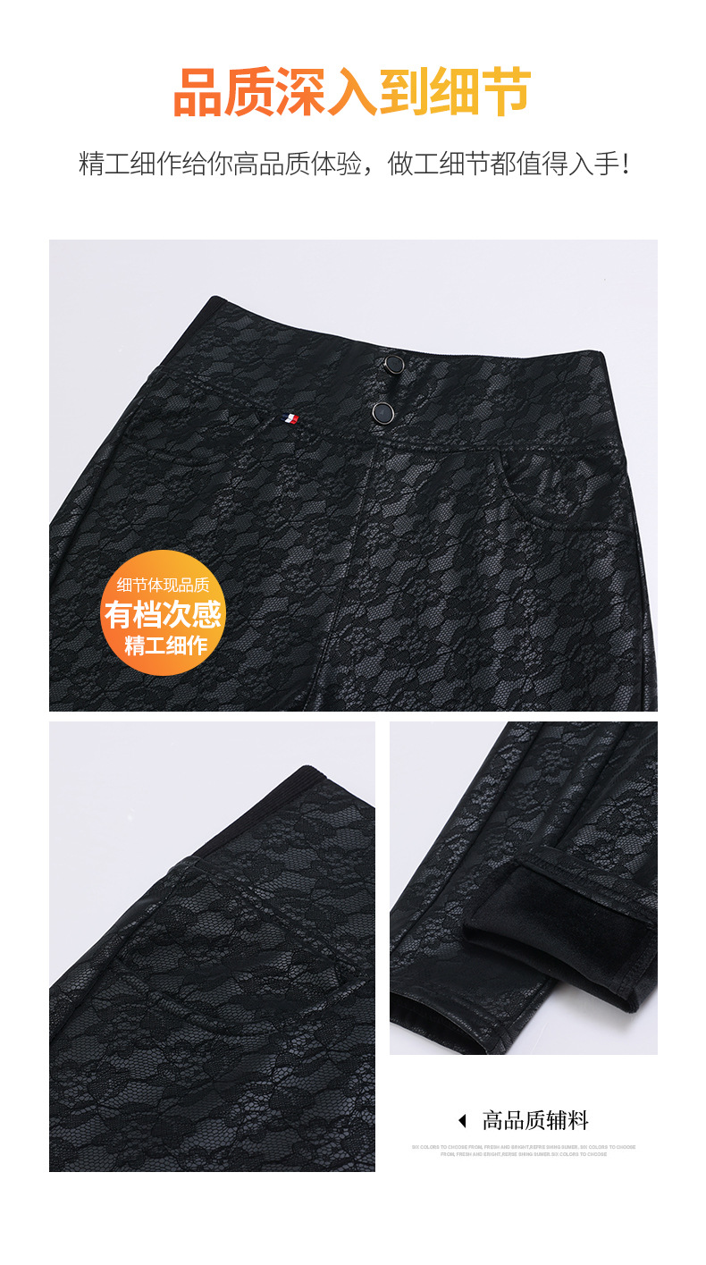 印花长款时尚加绒PU皮打底裤,新款松紧腰修身气质小脚裤MYX-Q8103