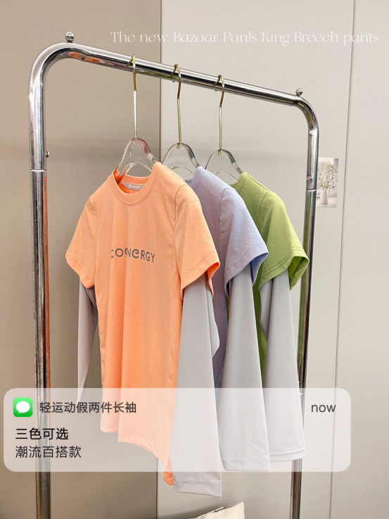 这款T恤上身后特别时尚,宽松但不松垮。下面搭配紧身裤、阔腿裤、萝卜裤,都超级nice。颜值那就更不用说了。我超级爱这个假两件的款式,一件衣服,穿出了层次感,谁穿谁可爱。