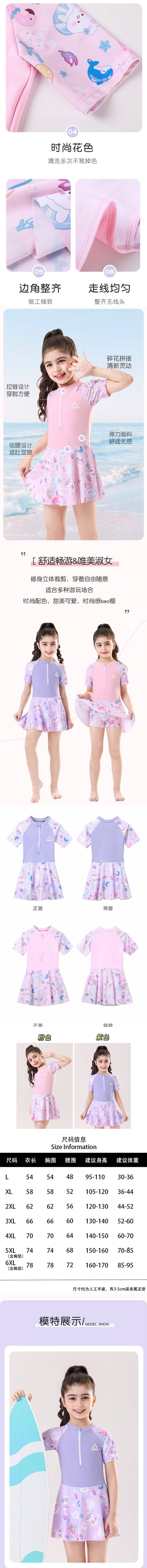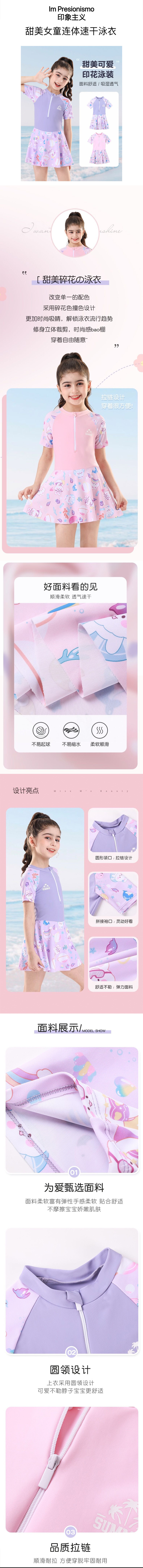 甜美女童连体速干泳衣