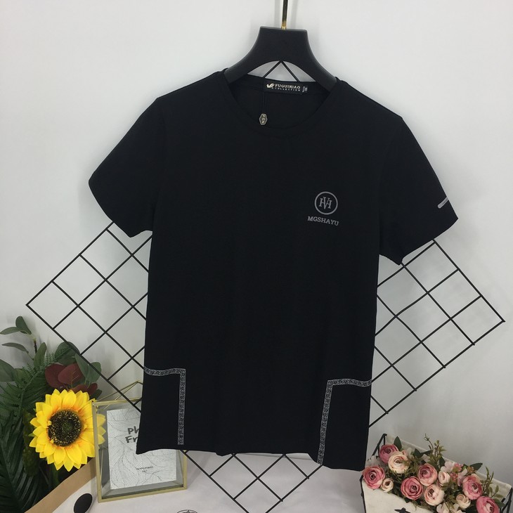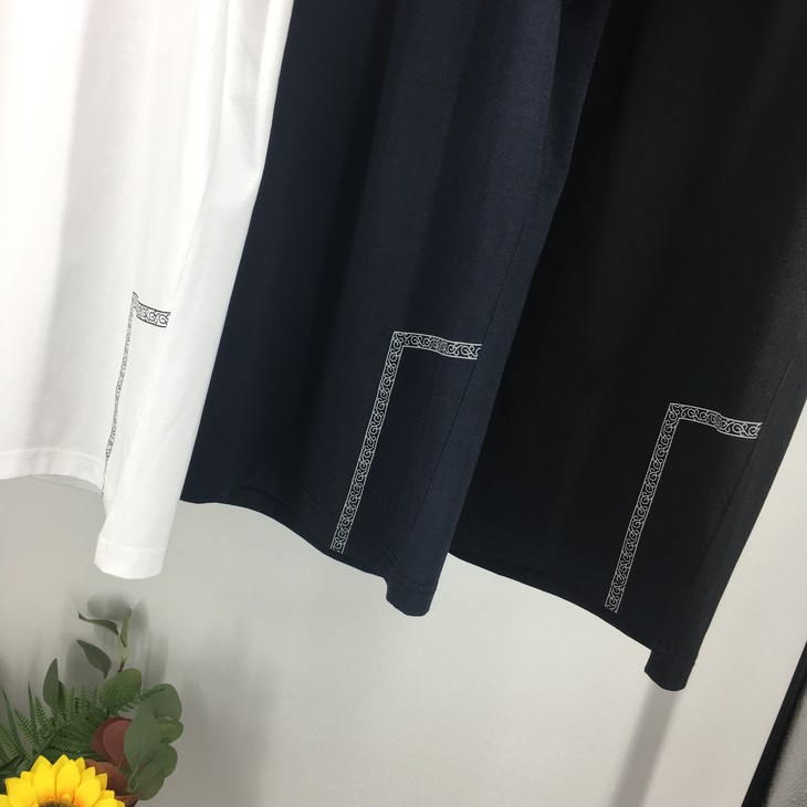 这款无论是从面料还是做工上面都是没得挑的。今年丝光棉面料的T恤非常的火,而我们从来都是只做好的。无论是悬垂感、抗皱性,还是强度、色牢度都不在话下。入手的第一感觉就是与众不同,手感光滑凉爽,袖口胸口还有下摆有印花,这个花型也是我们打版了好多次才定下来的,时尚简约的年轻风格,非常好搭配。这一款错过了真的会后悔的~