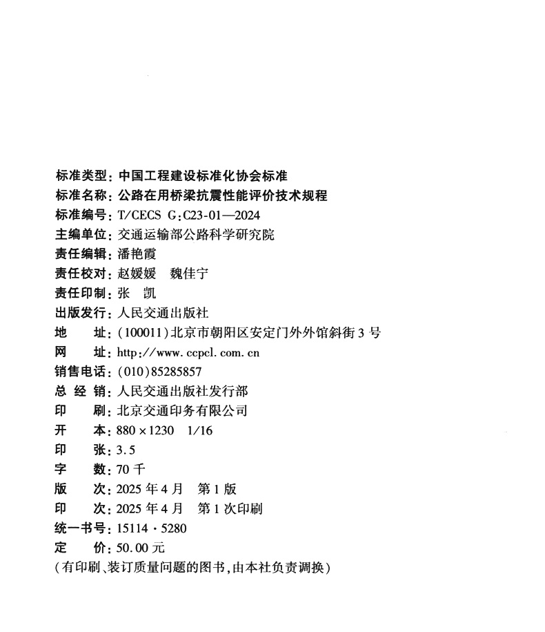 书名:公路在用桥梁抗震性能评价技术规程(T/CECS G:C23-01—2024)