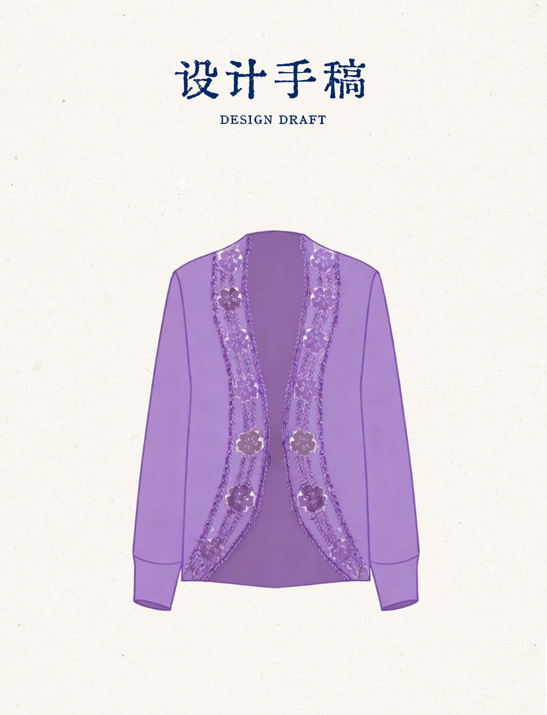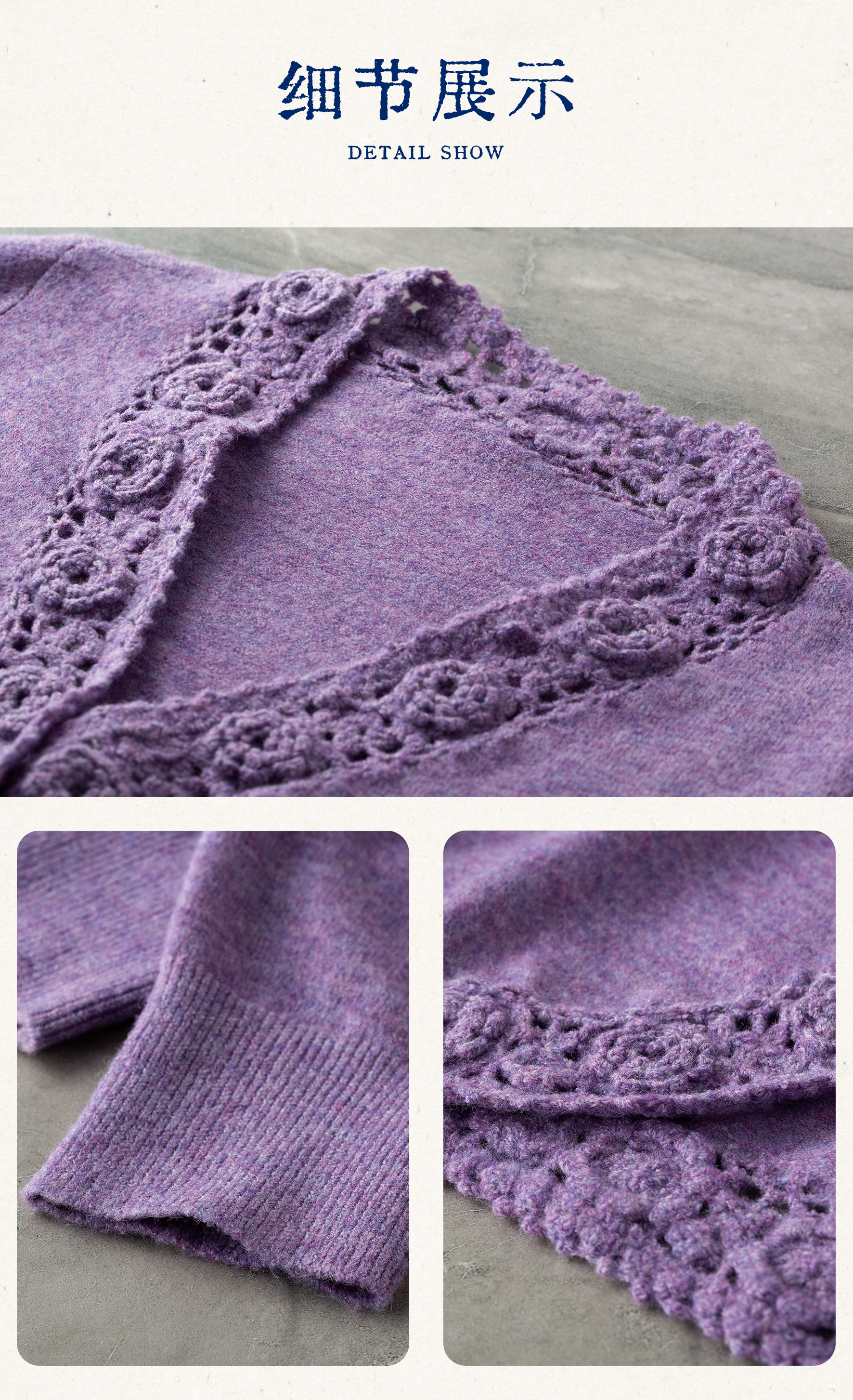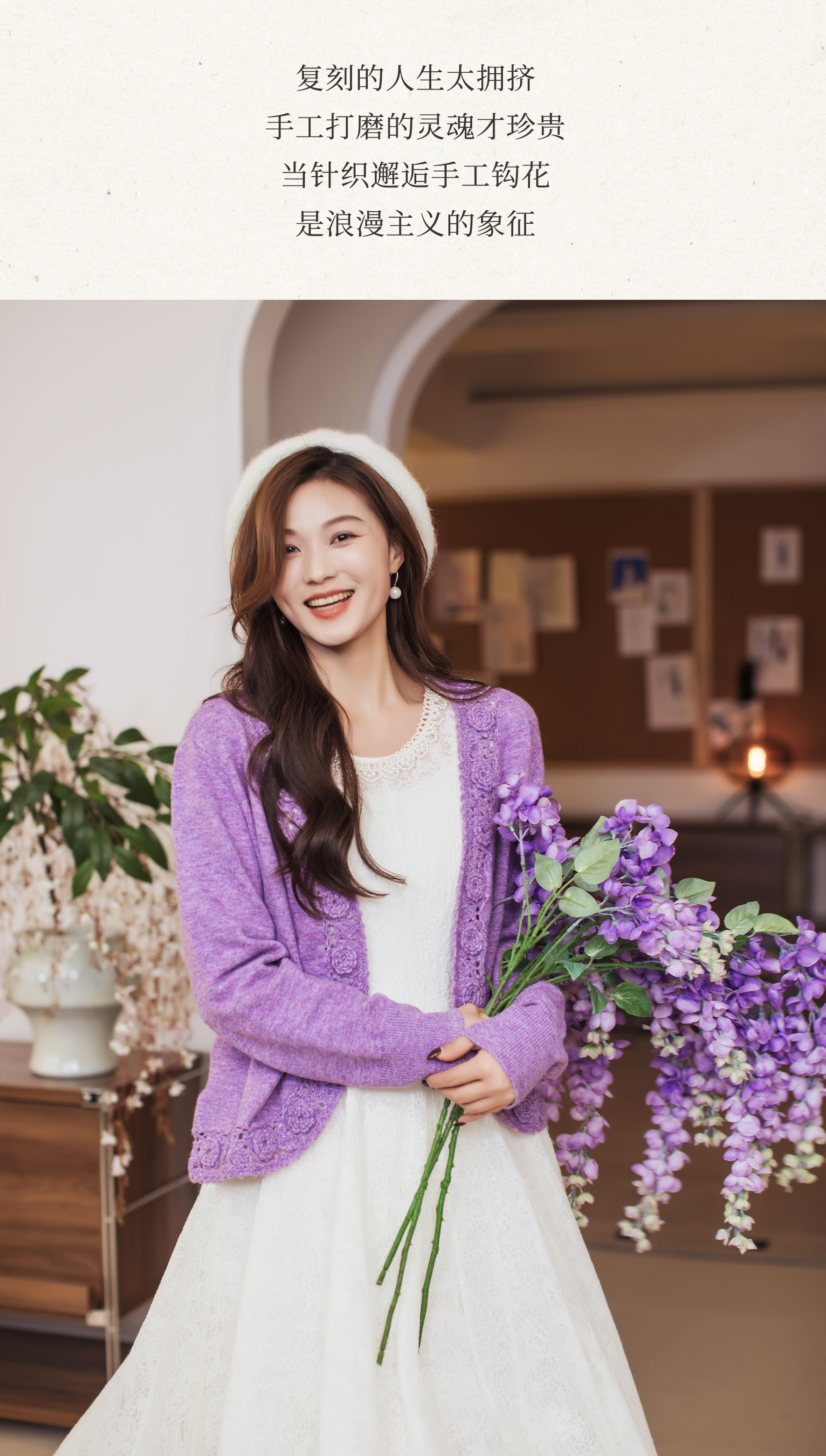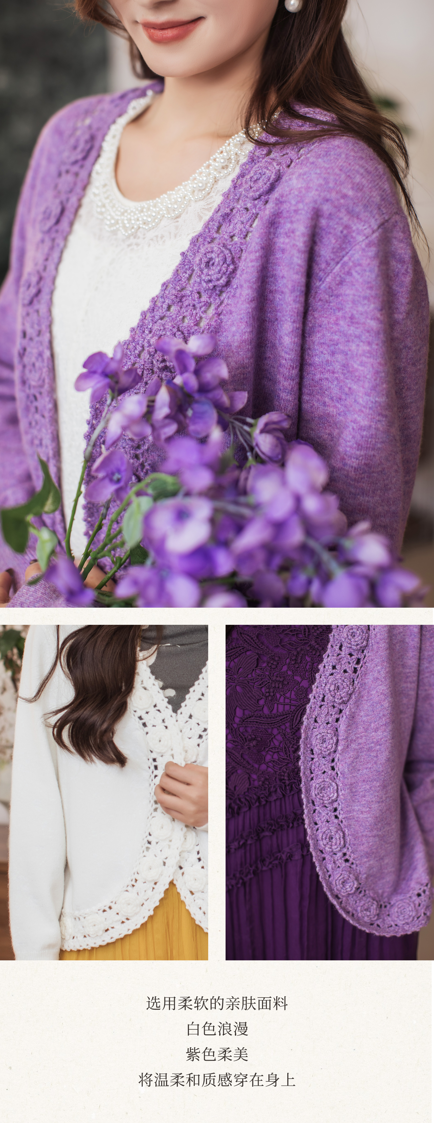 【林栖设计小店】【林栖推荐】(现货)早春度假系列手工钩花立体绣花法式紫色针织开衫短款毛衣外套N1954270