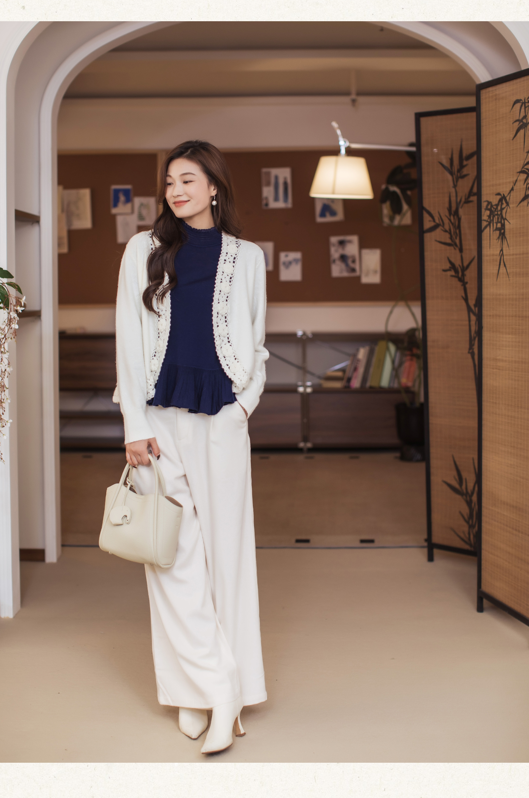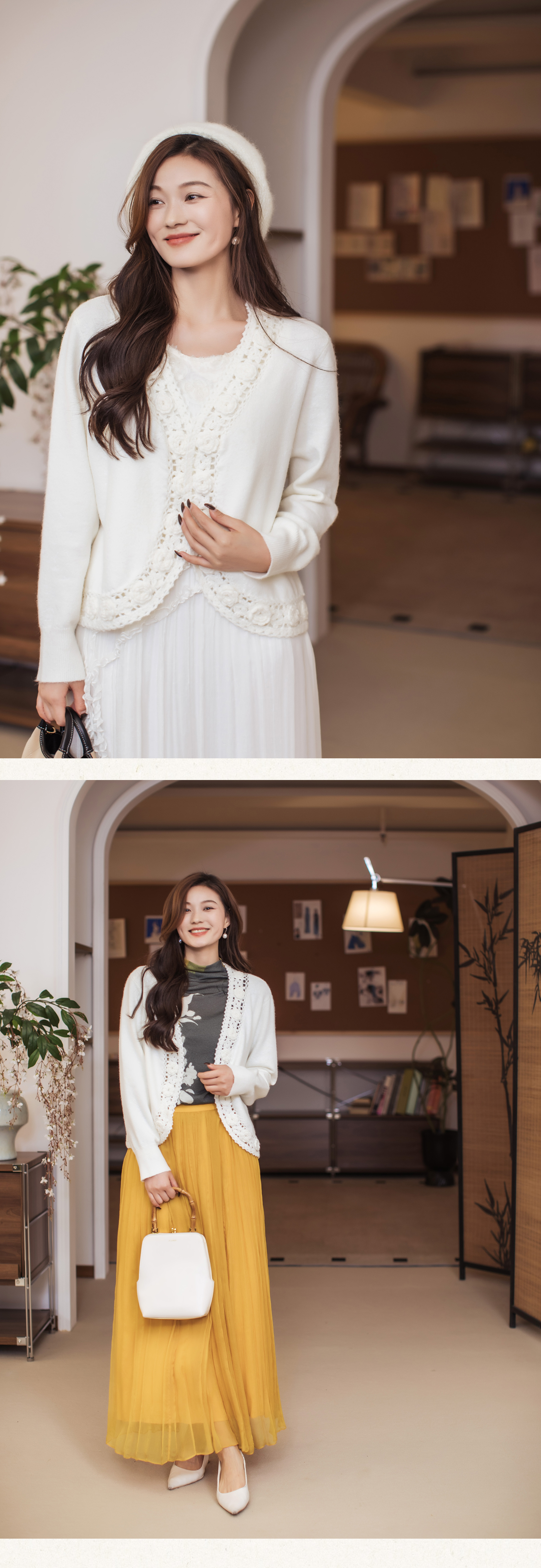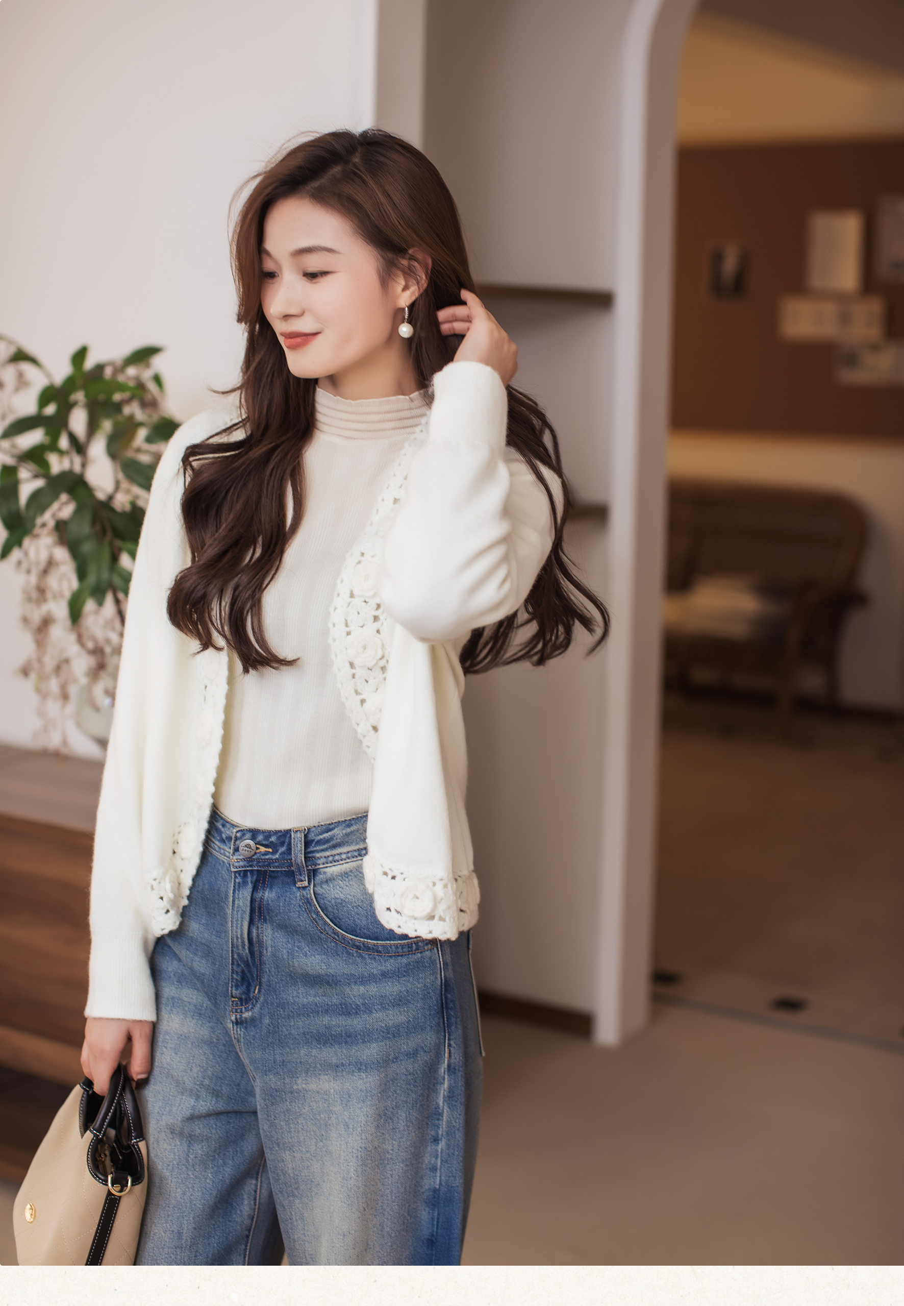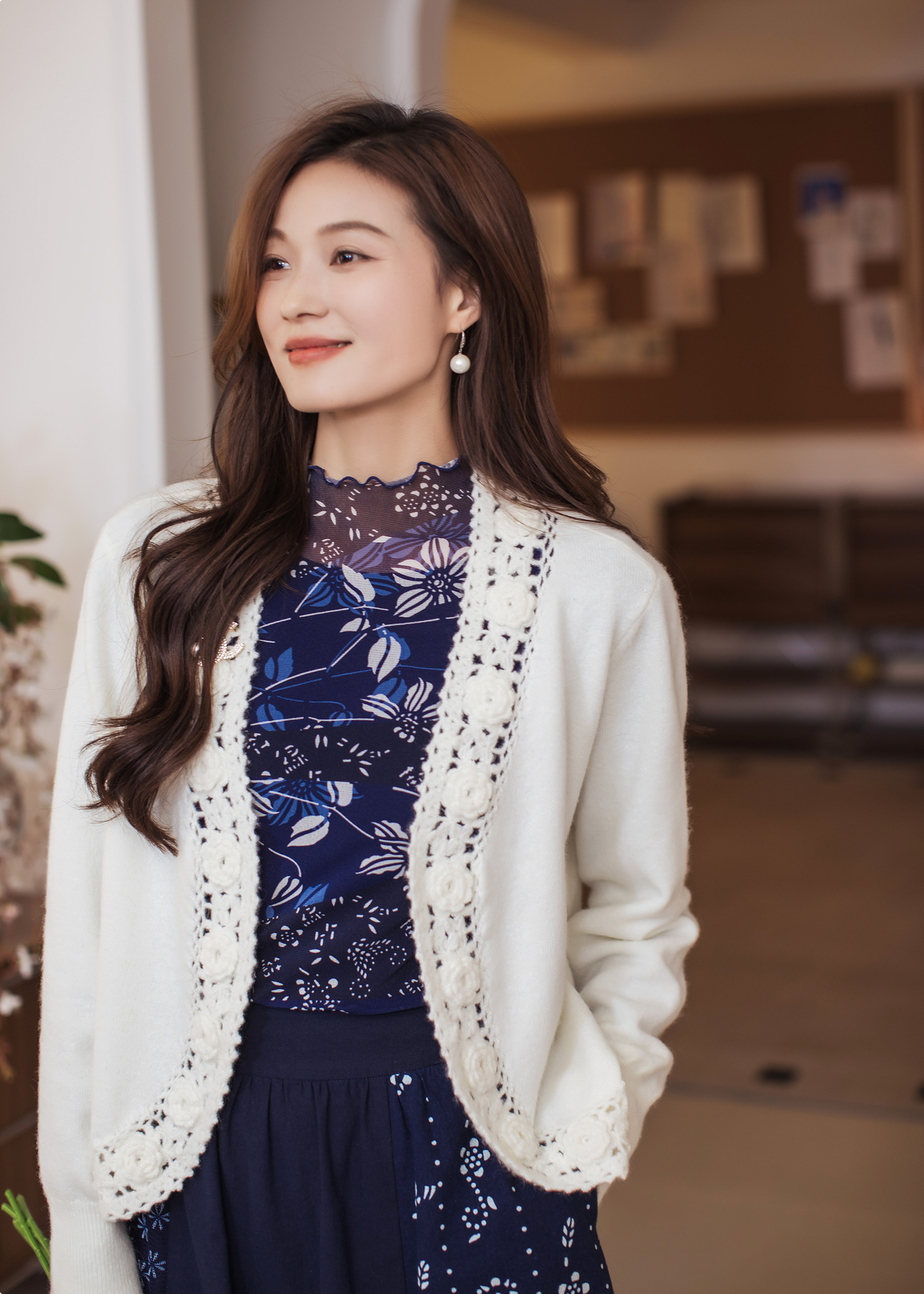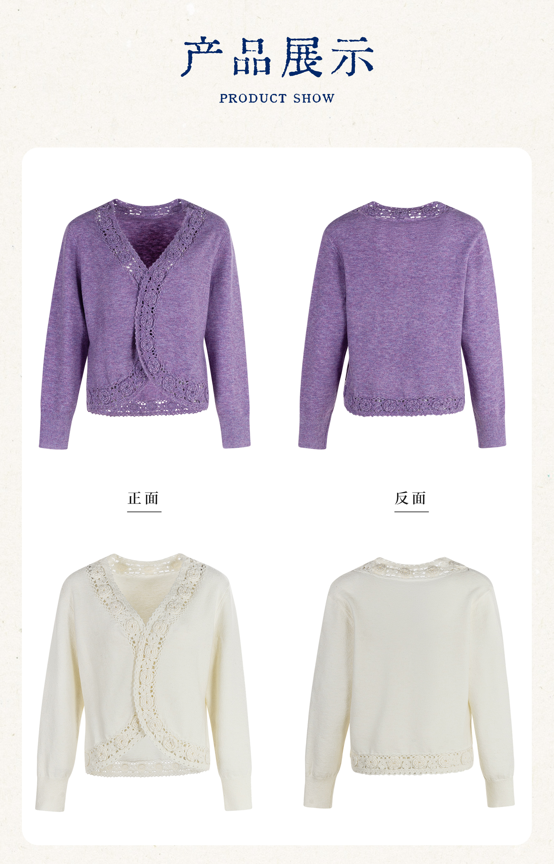 【林栖设计小店】【林栖推荐】(现货)早春度假系列手工钩花立体绣花法式紫色针织开衫短款毛衣外套N1954270