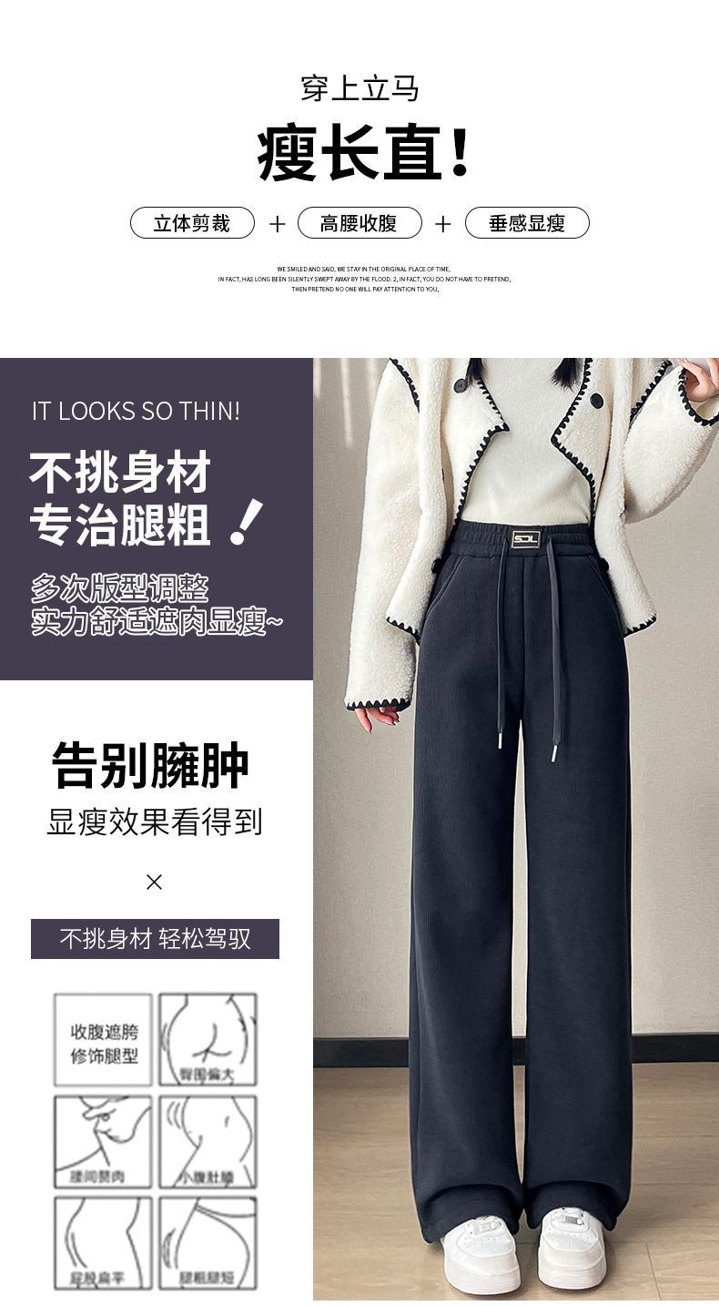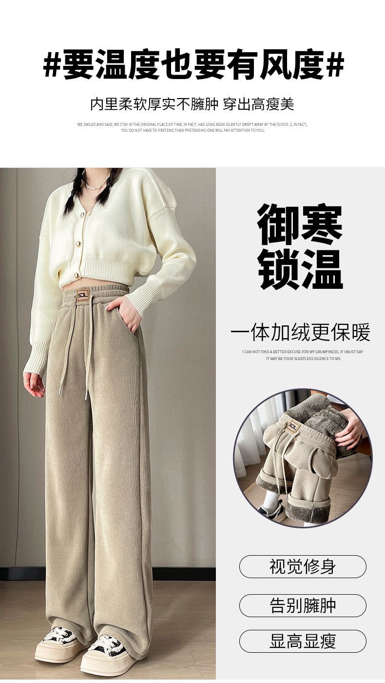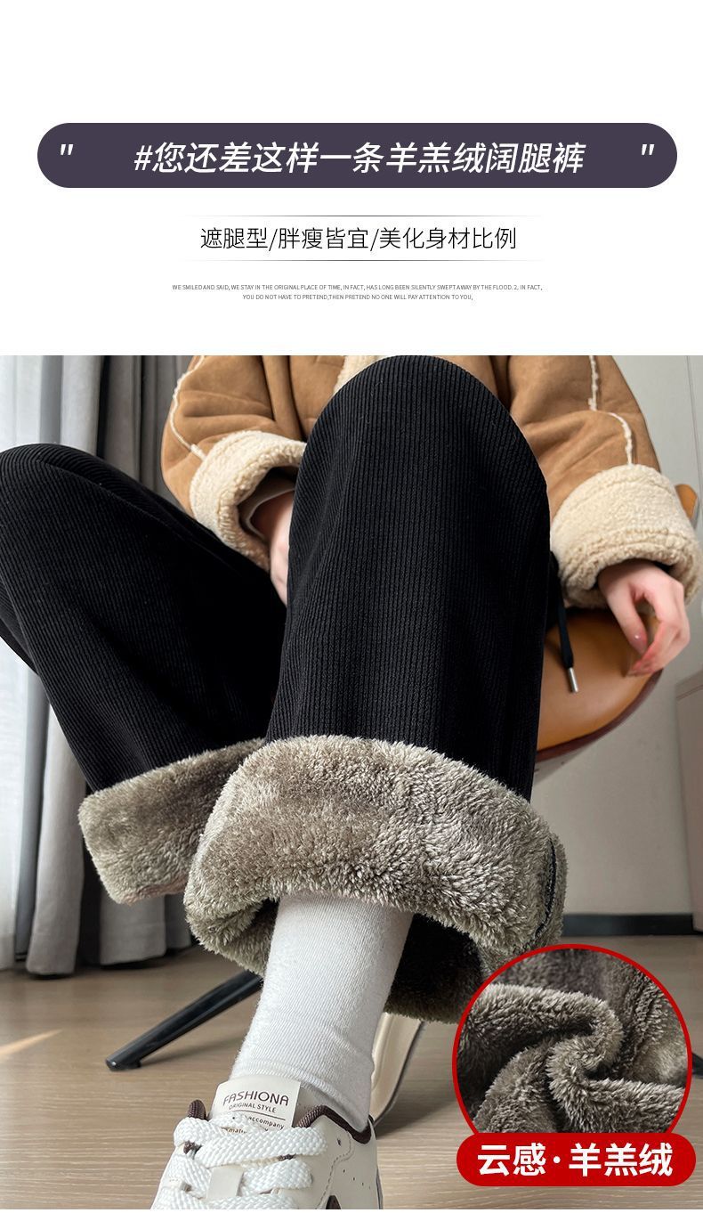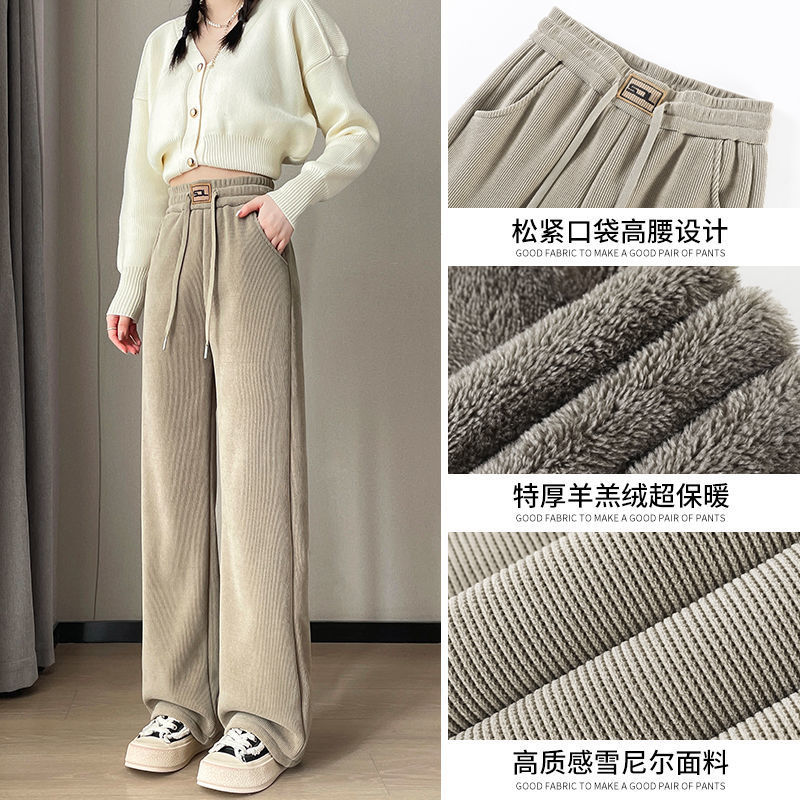 【复合绒阔腿裤】秋冬季 雪尼尔女裤 加绒加厚保暖棉裤 灯芯绒直筒裤子