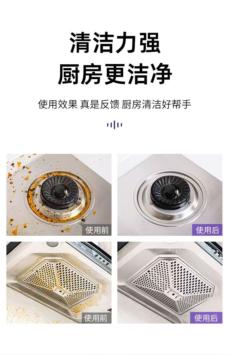 1、内含去污因子,使用后,厨房干净亮新。
