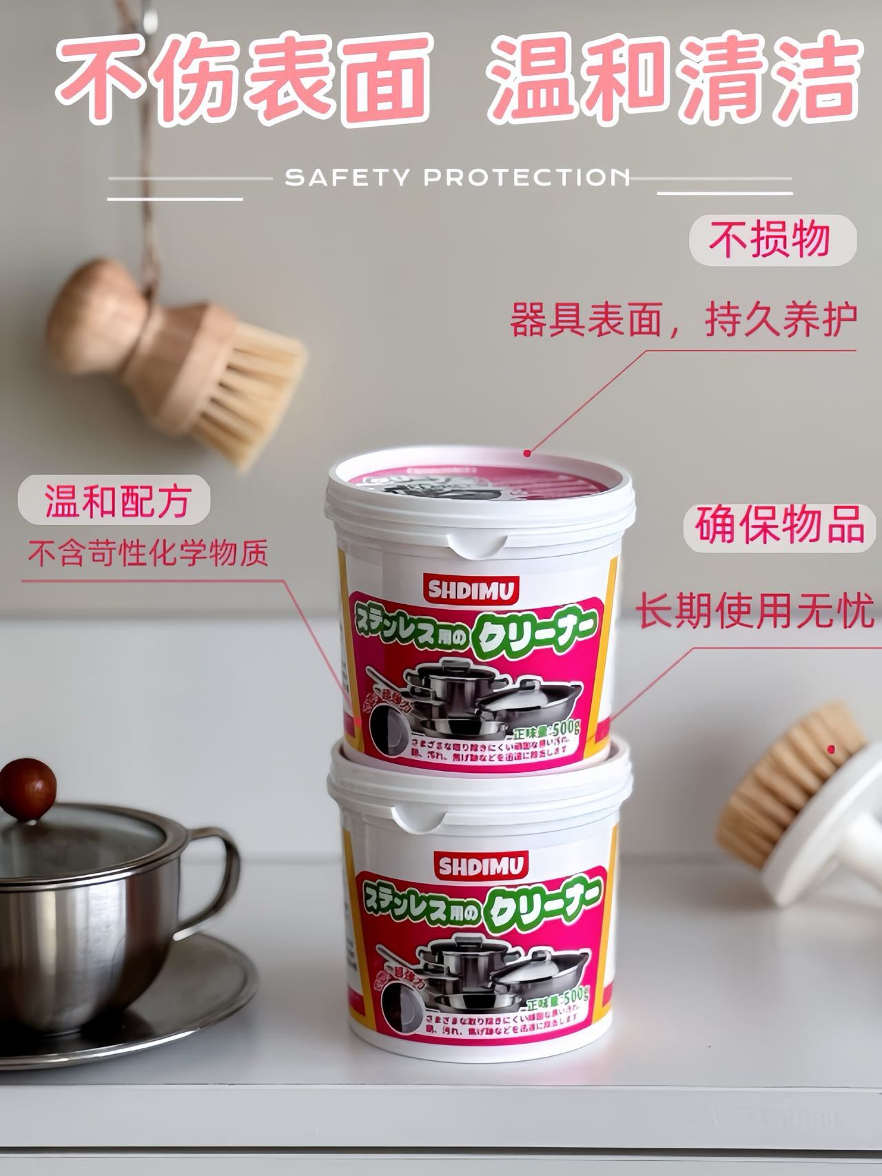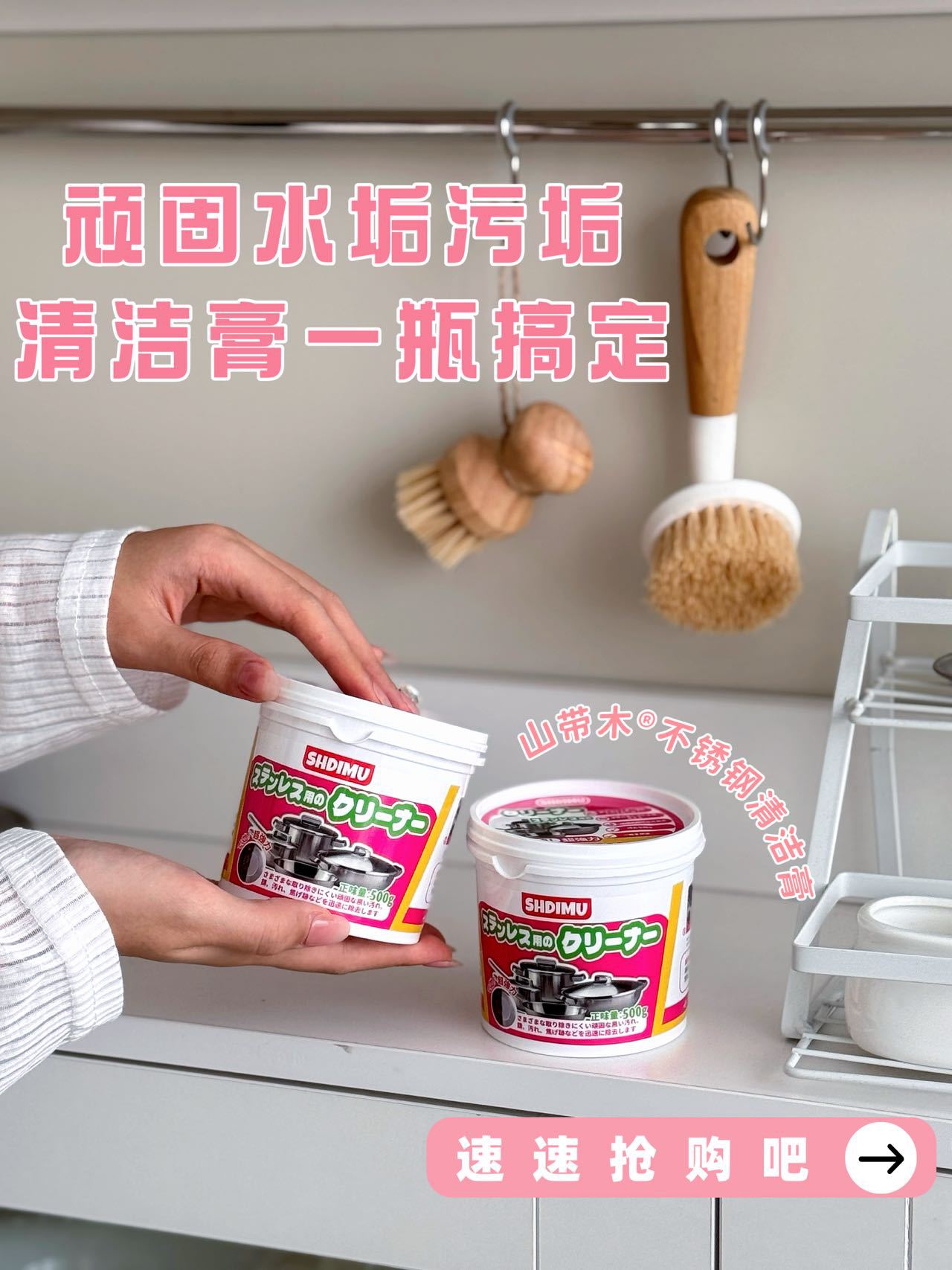 【植物配方深层清洁❗️温和去垢不伤器具】山带木牌不锈钢清洁膏卫浴玻璃水渍清洁瓷砖祛黄去污增白粉色膏体。jb