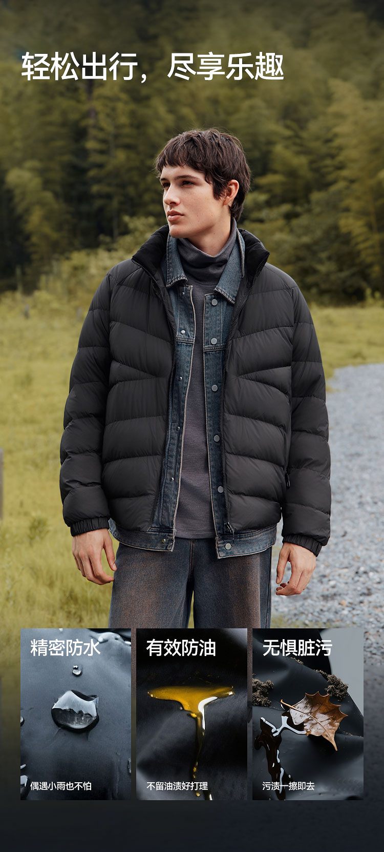 森马羽绒服男三防外套轻量薄款羽绒内胆立领上衣2025新款冬装保暖