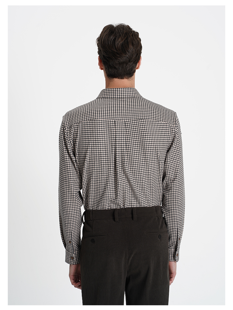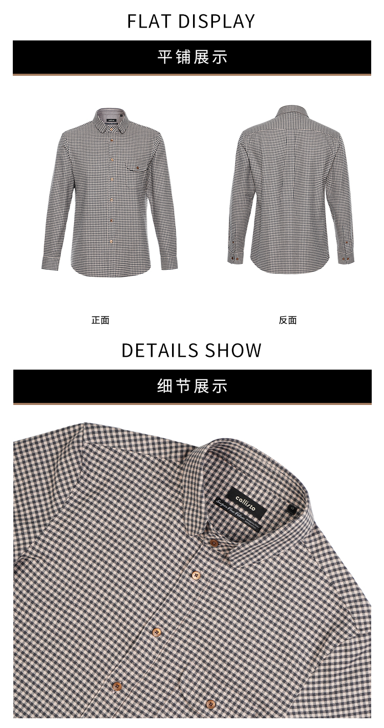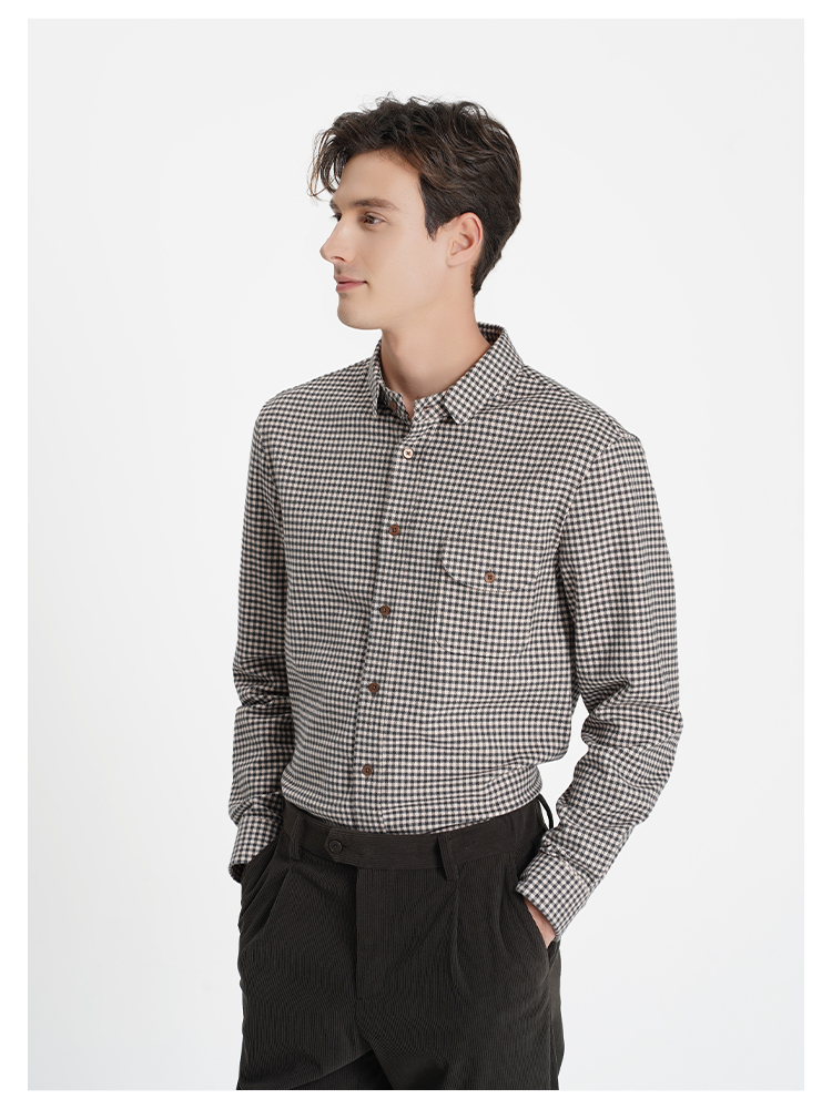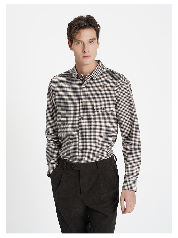 callisto“绒”系列咖色纯棉休闲长袖衬衫