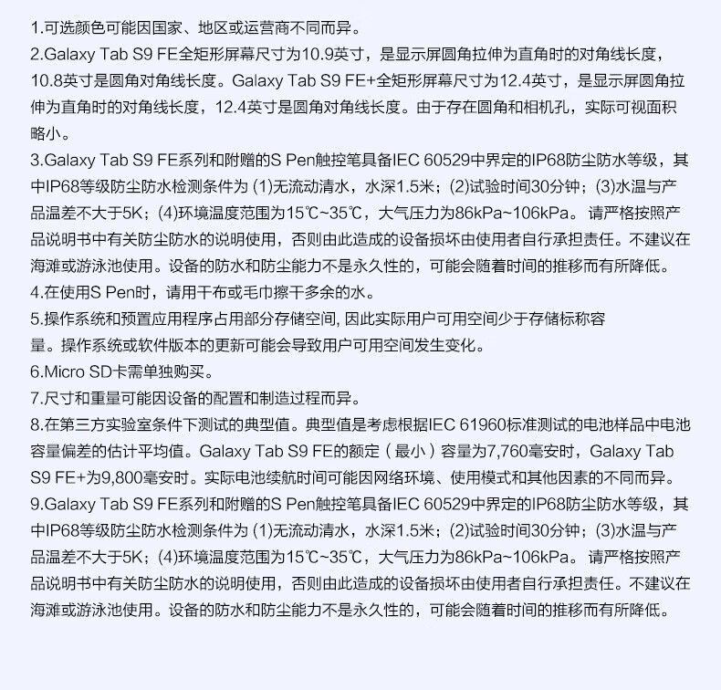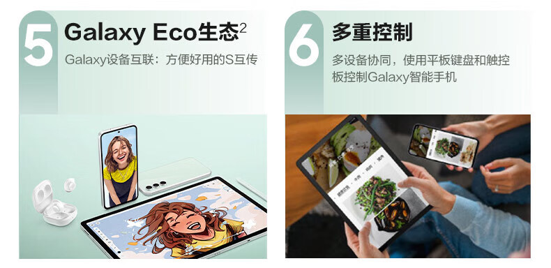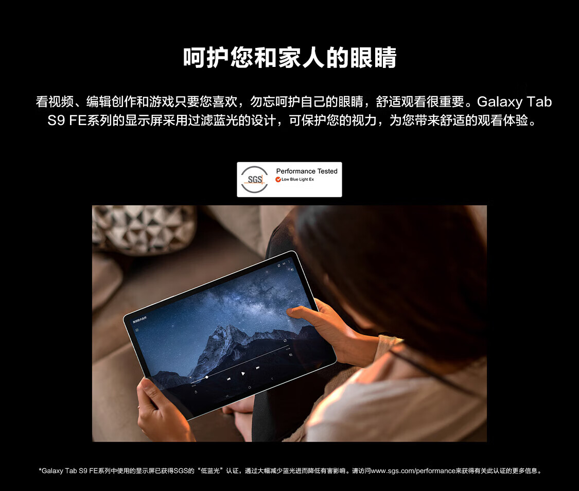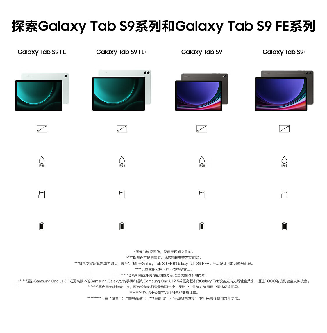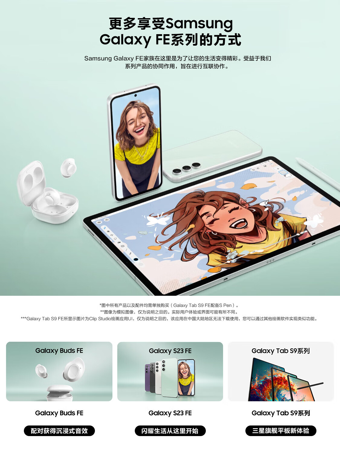 三星(SAMSUNG)平板电脑Galaxy Tab S9 FE 10.9英寸 护眼高清高亮度大屏IP68级防水 附Spen 薄荷绿 6GB+128GB/WIFI