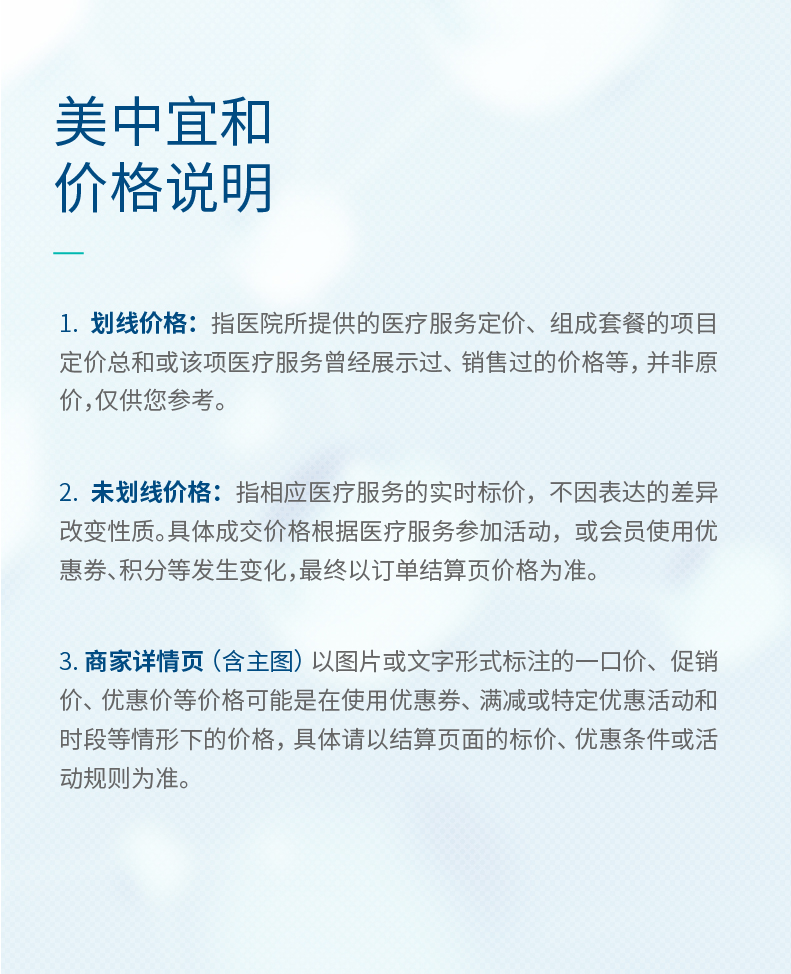 美中宜和商城是美中宜和医疗集团线上电商平台,设有内科、外科、妇产科、儿科、医美、耳鼻喉等全科优质医疗服务产品,让客户享有便捷优质的线上购买体验。