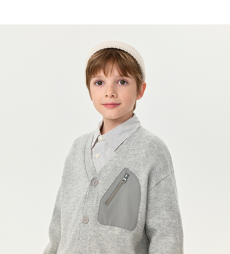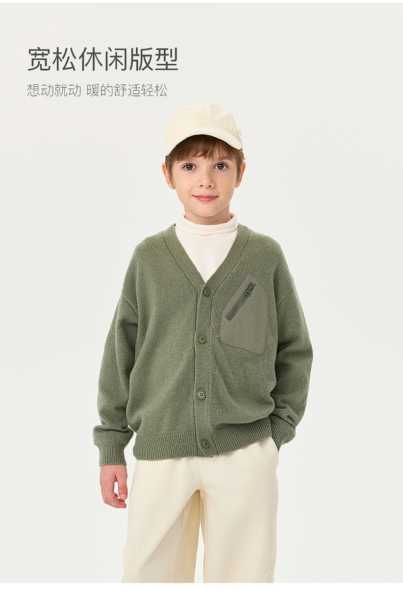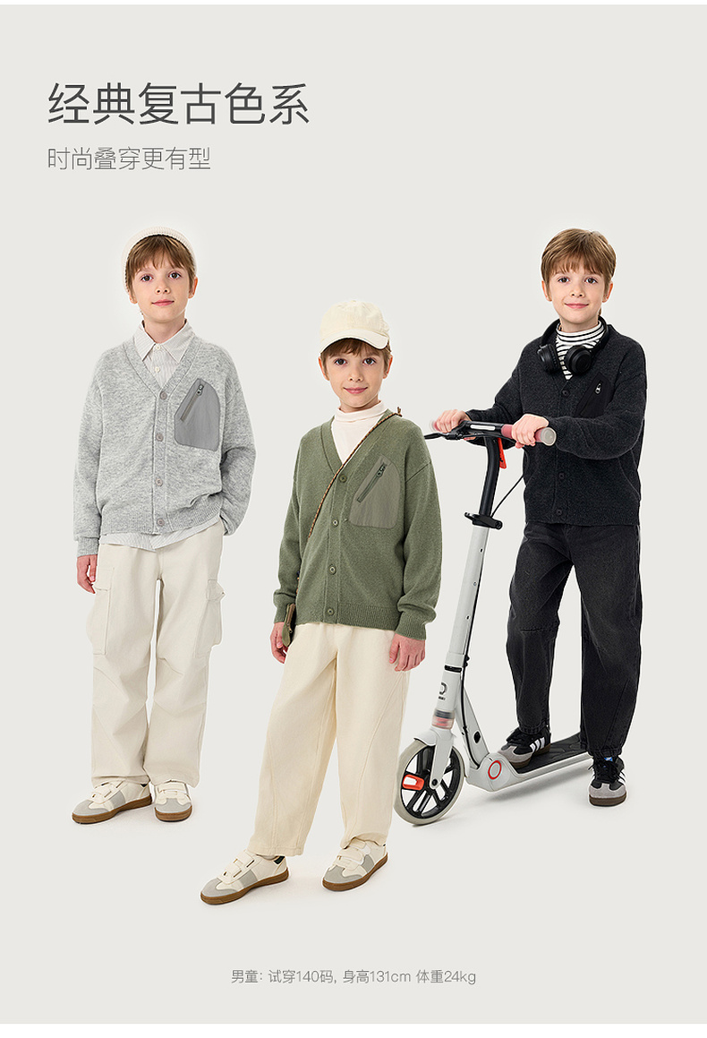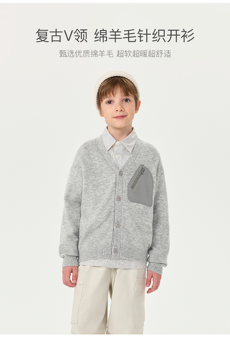 [绵羊毛]马克珍妮男童复古V领针织开衫 儿童2025年秋冬新款551867