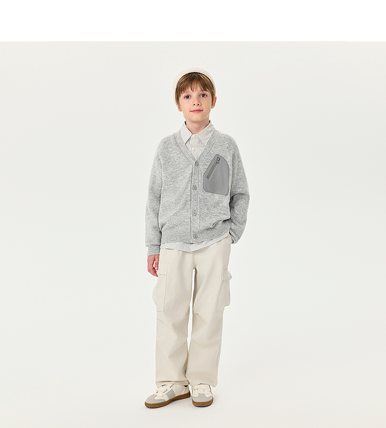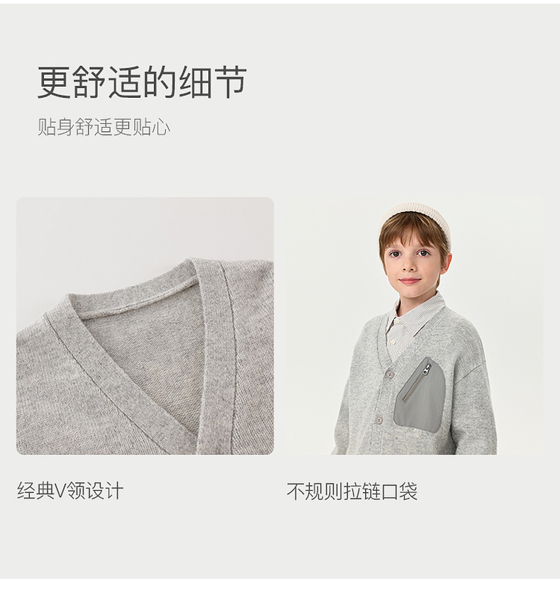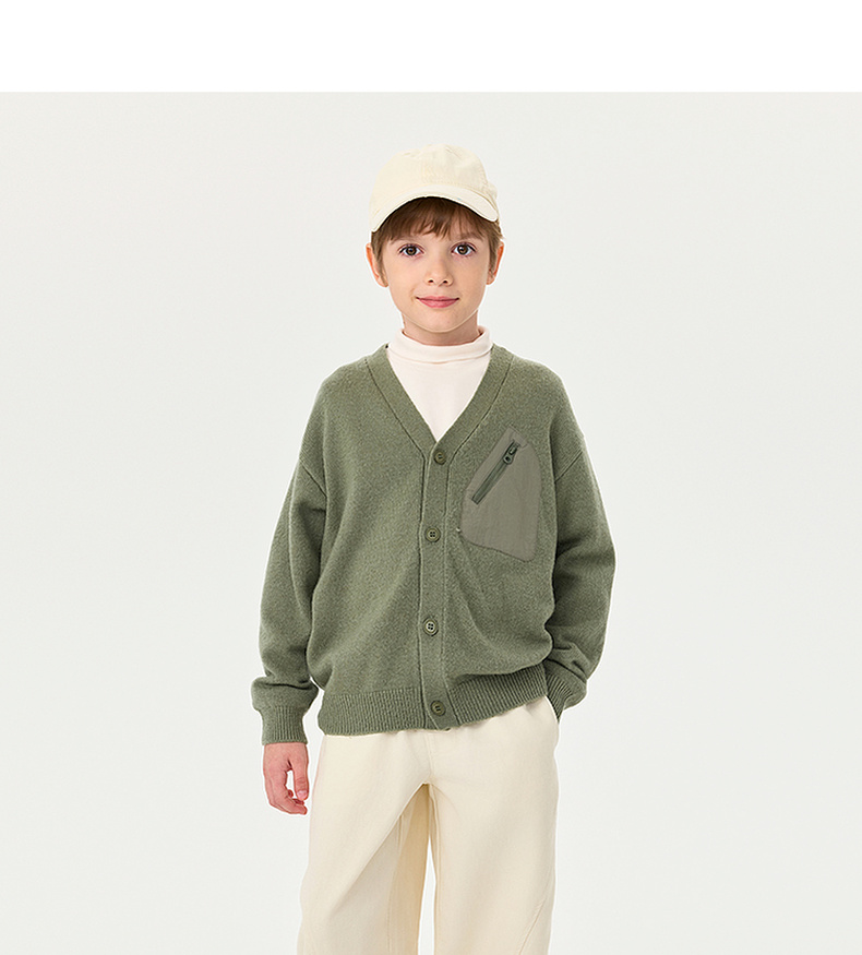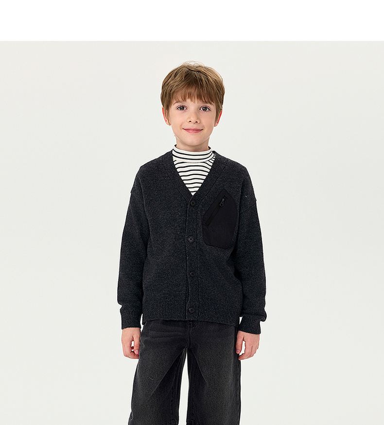 [绵羊毛]马克珍妮男童复古V领针织开衫 儿童2025年秋冬新款551867