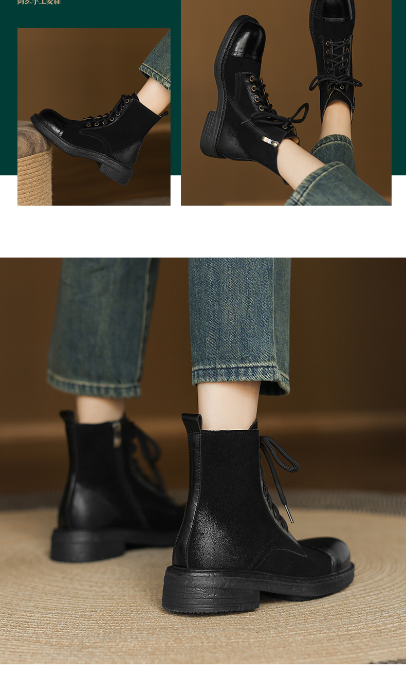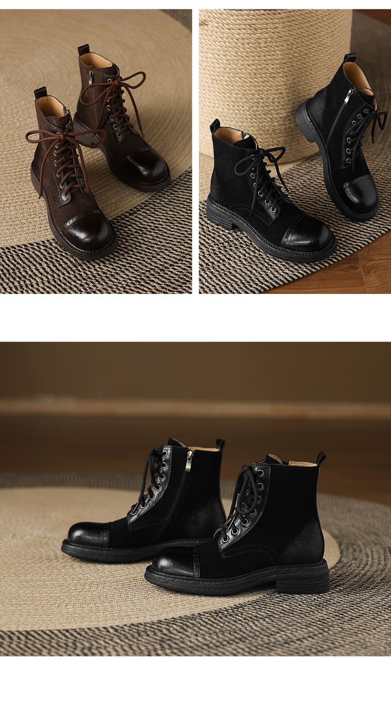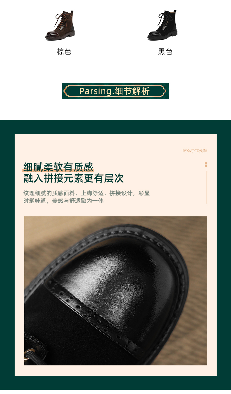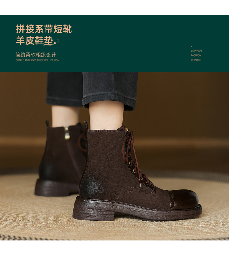 阿么手工女鞋高级感复古拼接马丁靴4.5CM不累脚显瘦小众百搭短靴