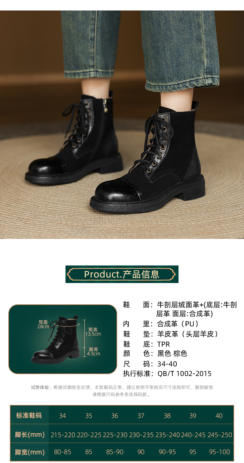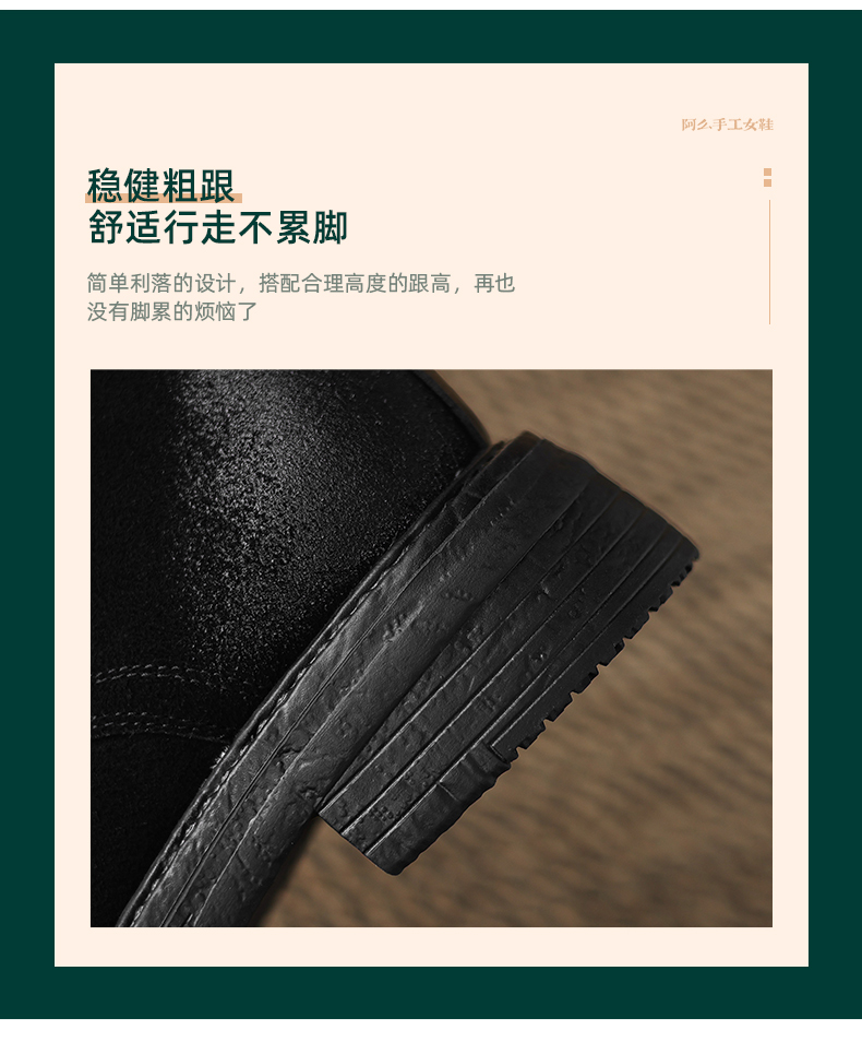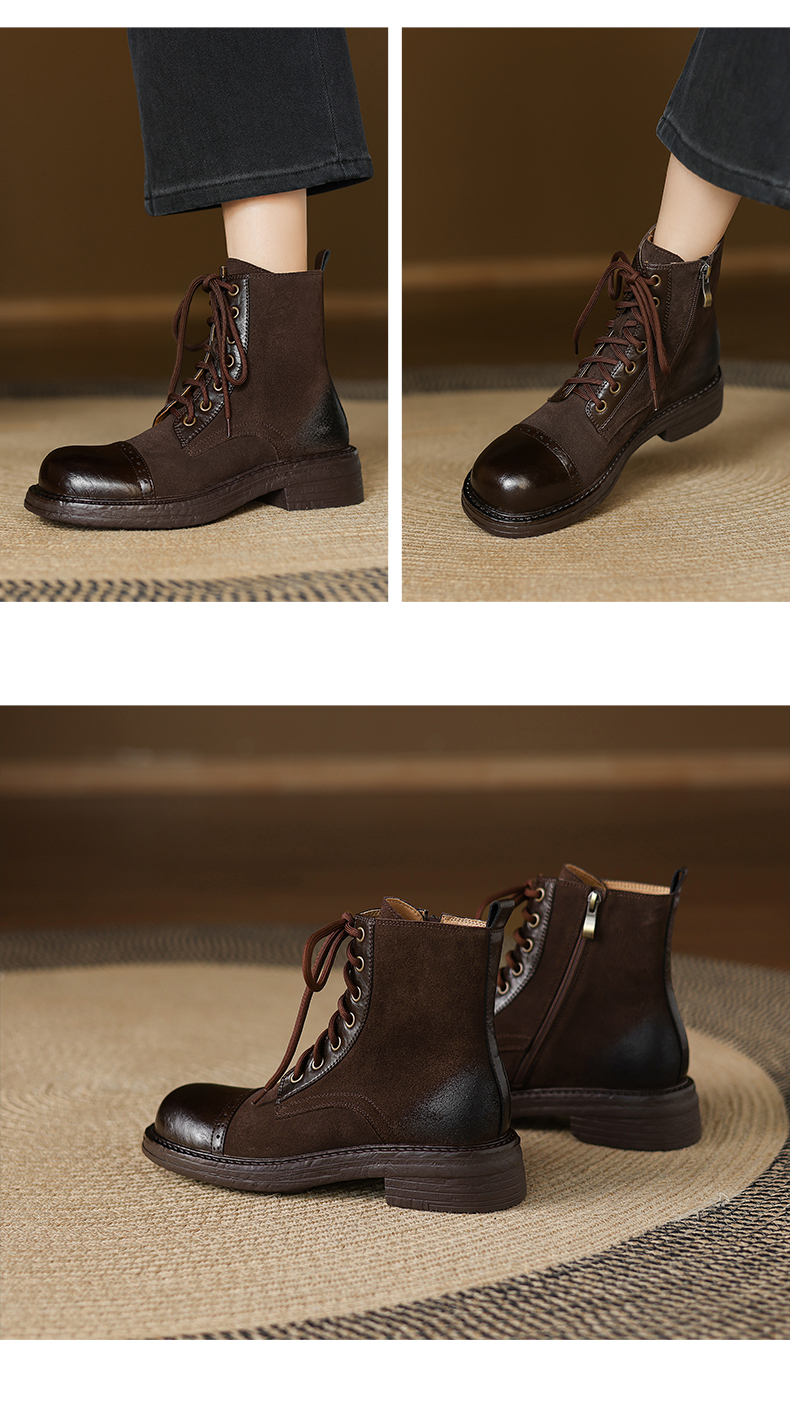 阿么手工女鞋高级感复古拼接马丁靴4.5CM不累脚显瘦小众百搭短靴