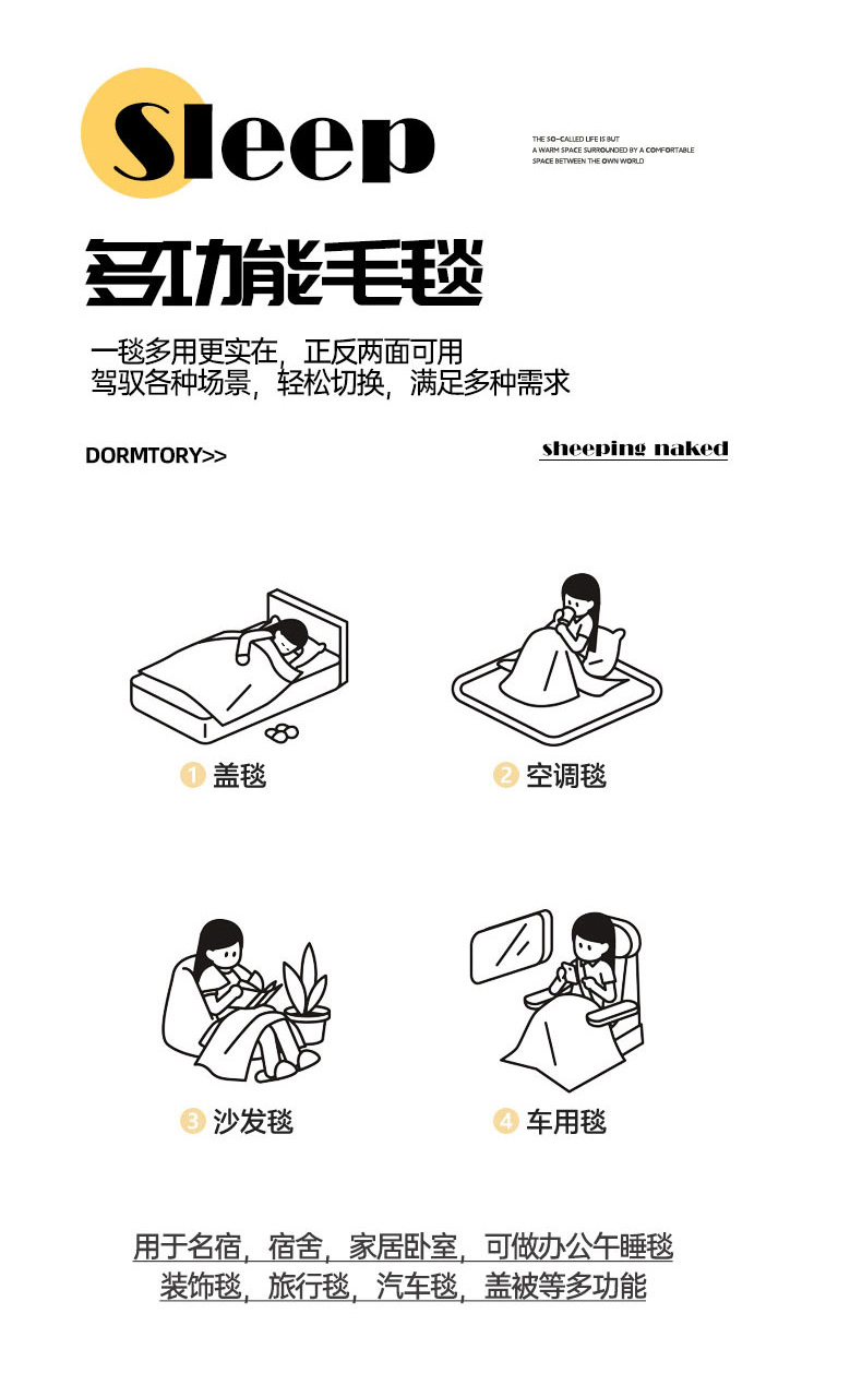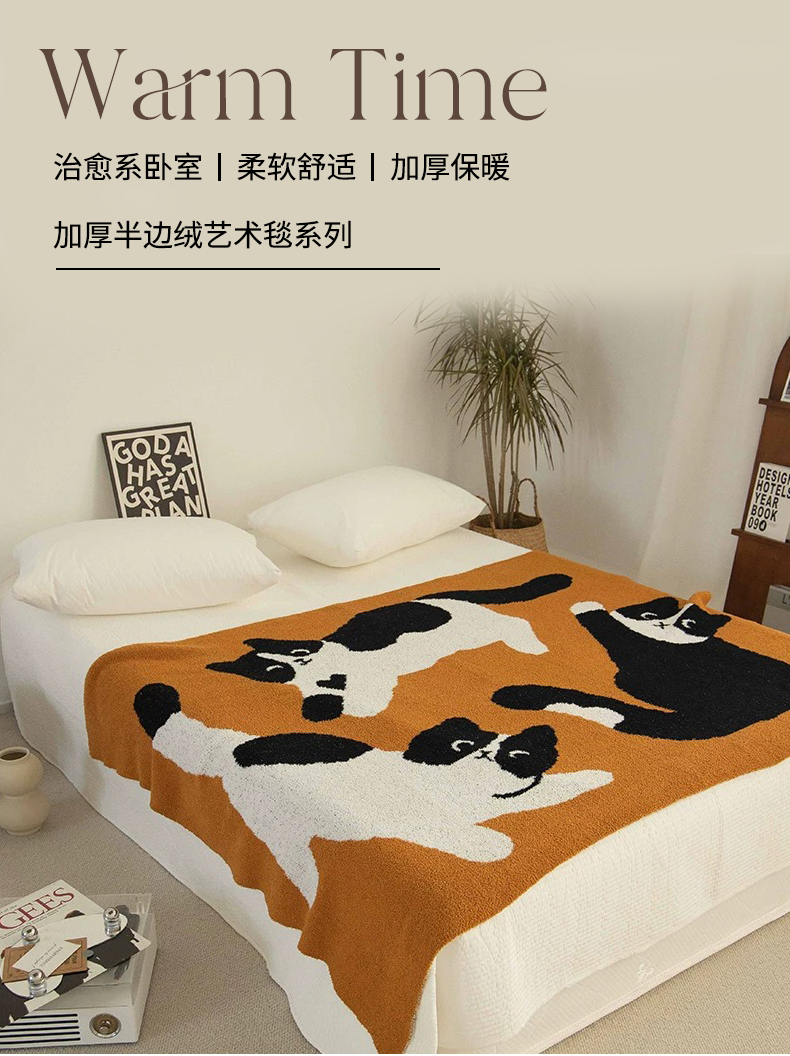 【品牌直发】加倍生活 加厚半边绒艺术毯 办公室午睡毯沙发盖毯空调毯午休四季加厚毯子汽车用毯