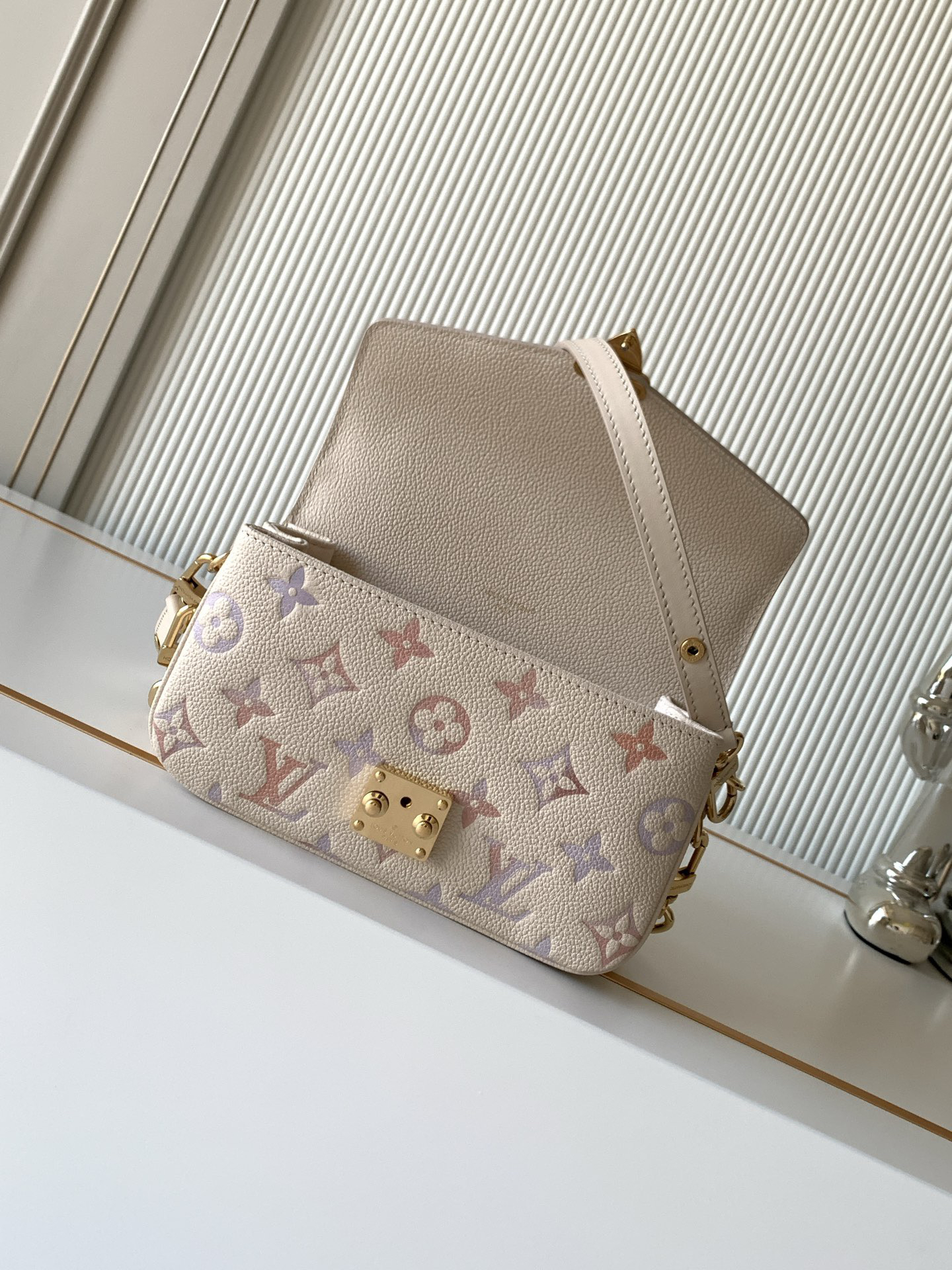 秋冬特惠💰1600 渠道级LV【全钢五金 MB163c01变码芯片】te级LV 全套包装 M25682 本款Pochette Métis East West 手袋取材粒面牛皮革,再以数码印花工艺为经典Monogram 图案渲染渐变水彩色调,巧妙点明Dream 系列的梦幻主题。金属件与S-lock 锁扣闪烁莹润光泽,拉链外袋和多重内袋可容纳昼夜场合所需。