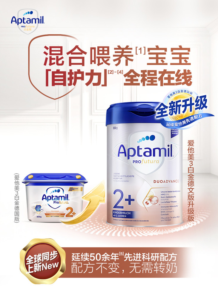 德国爱他美(Aptamil)白金版2+段奶粉800g