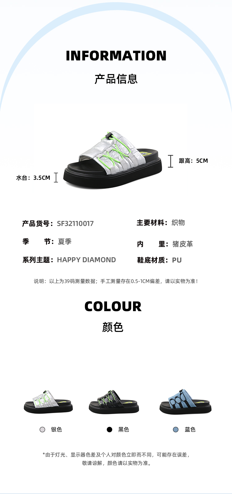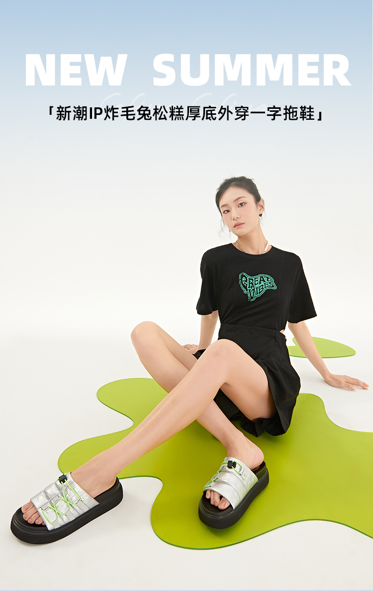 Safiya/索菲娅 2023夏季新品新潮IP炸毛兔松糕厚底外穿一字拖鞋 SF32110017