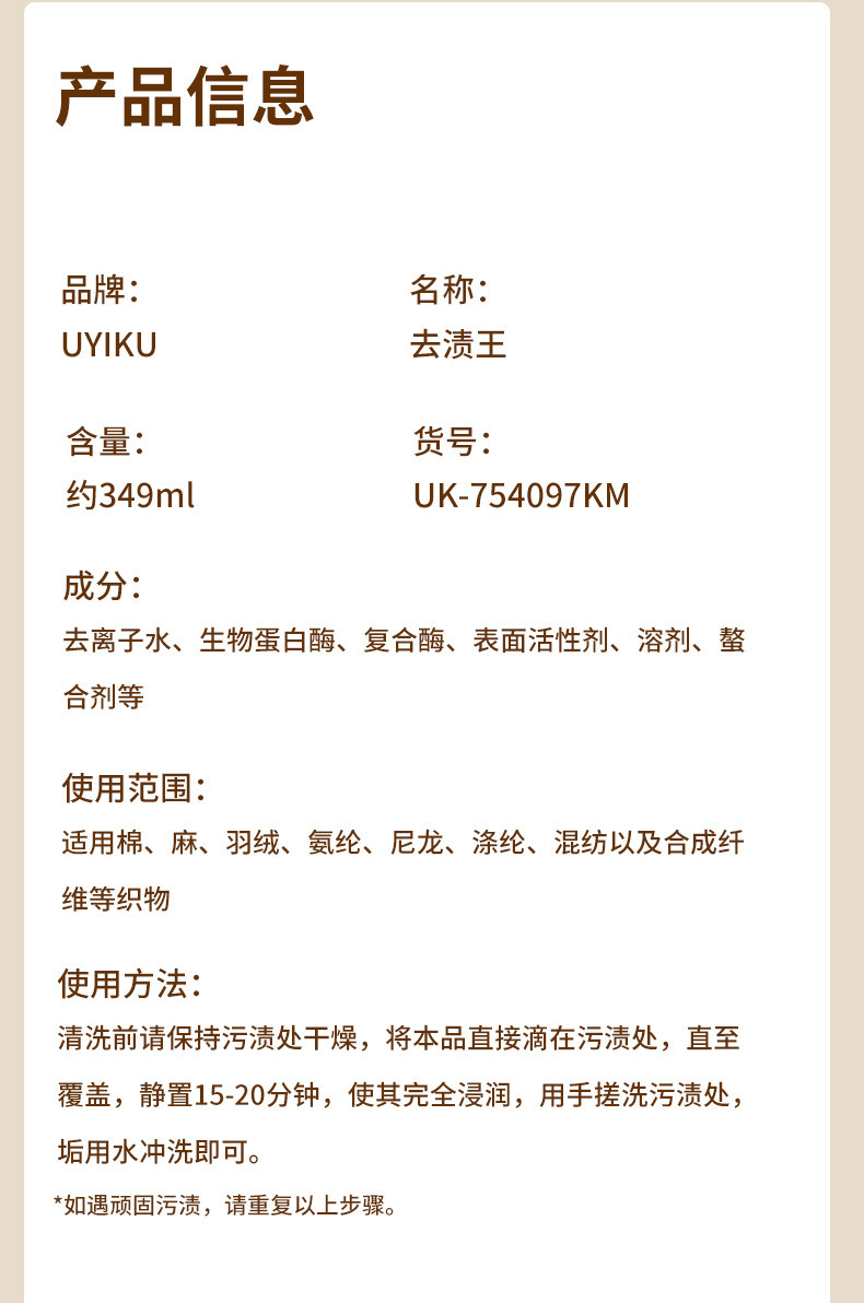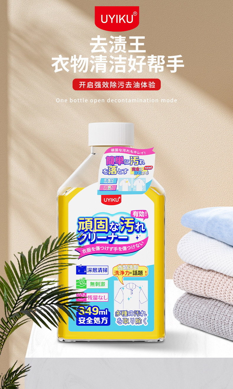 【衣物清洗剂349ml】UYIKU 衣物去油去渍清洗剂物以可去油王多种污渍油轻松去除去污剂