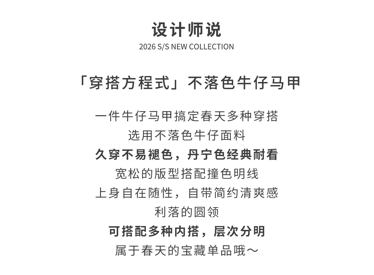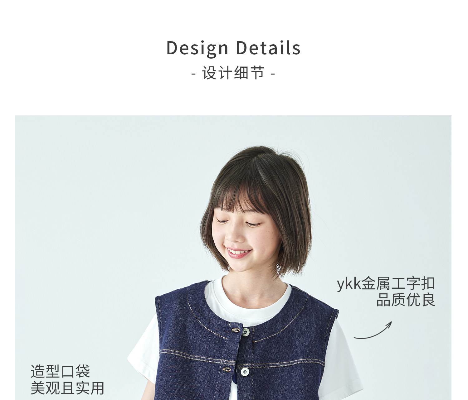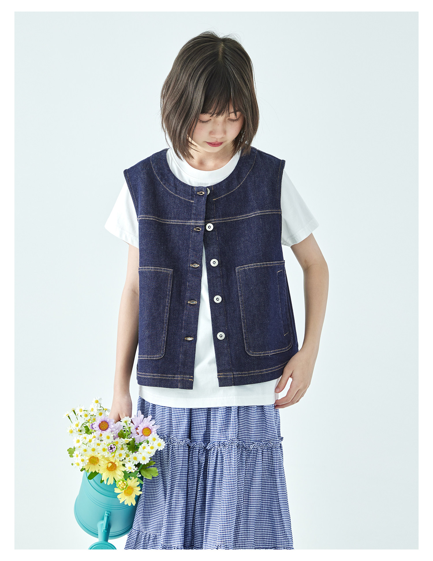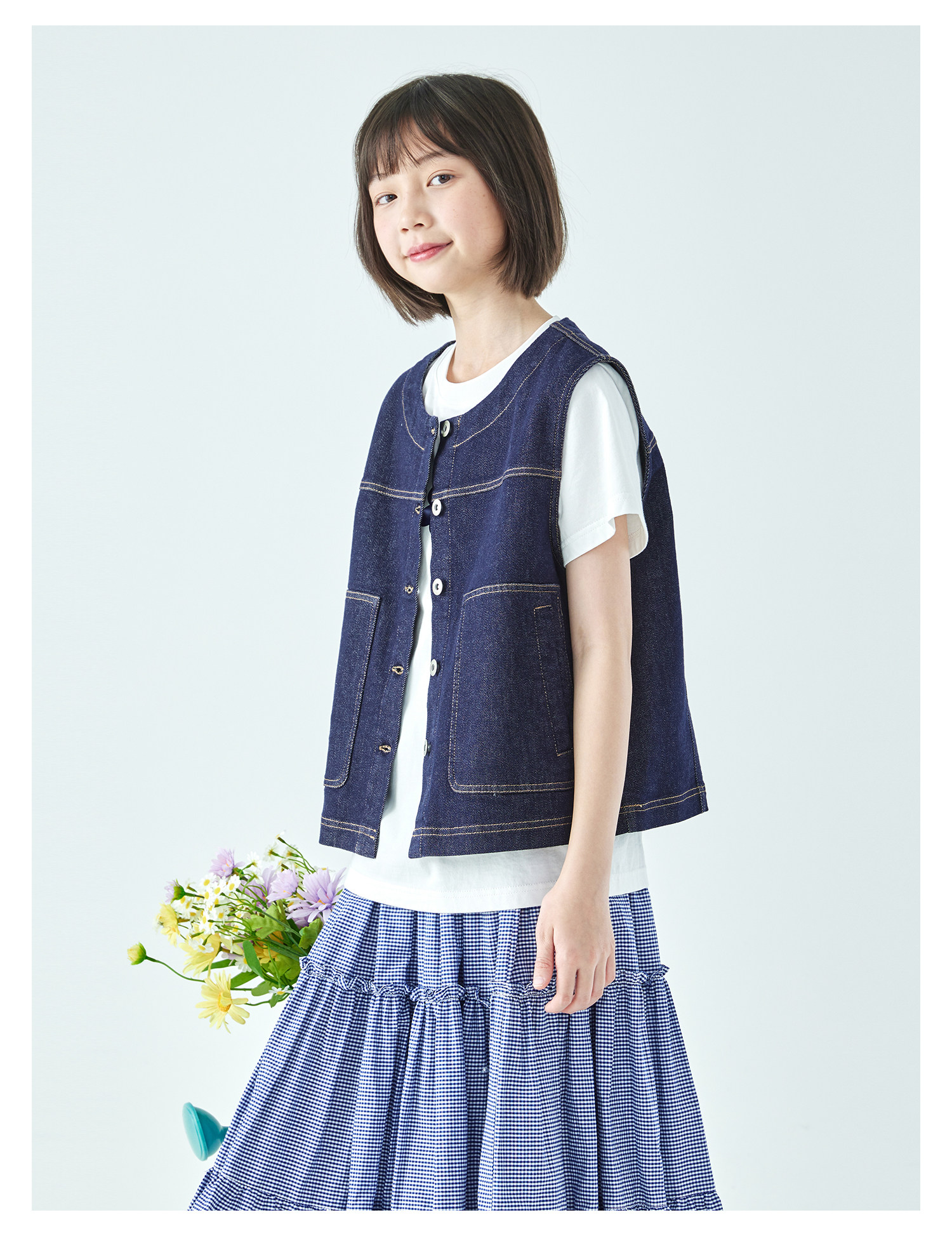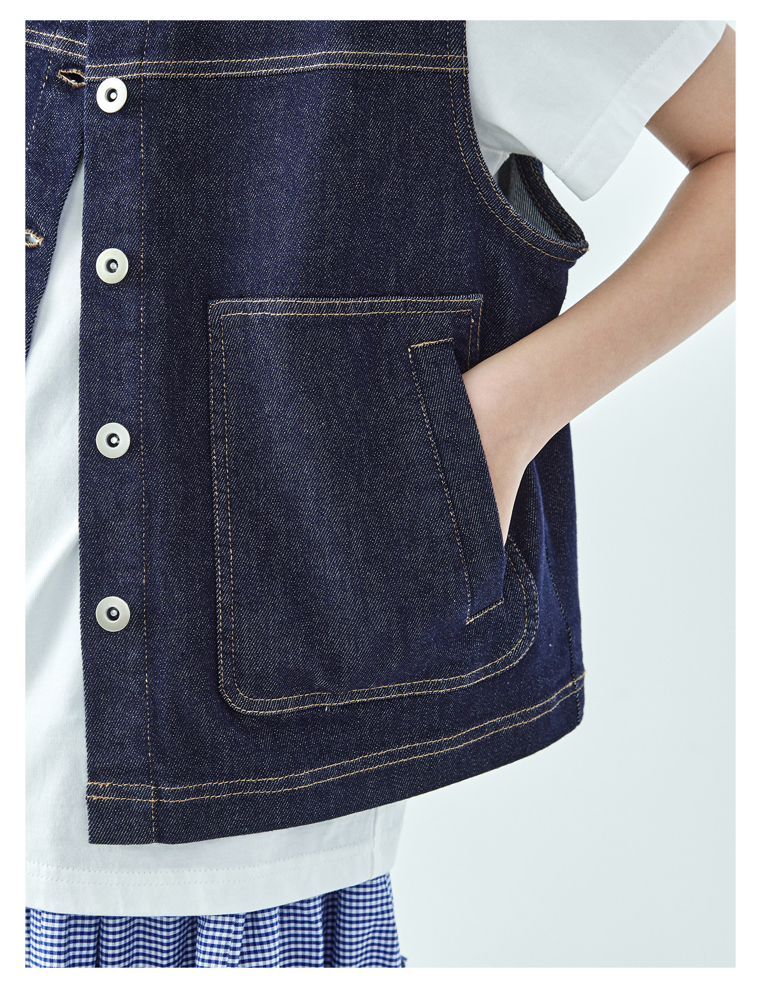 预售4.4发 棵初26年春季新款亲子中大女童不落色牛仔马甲经典大口袋宽松上衣