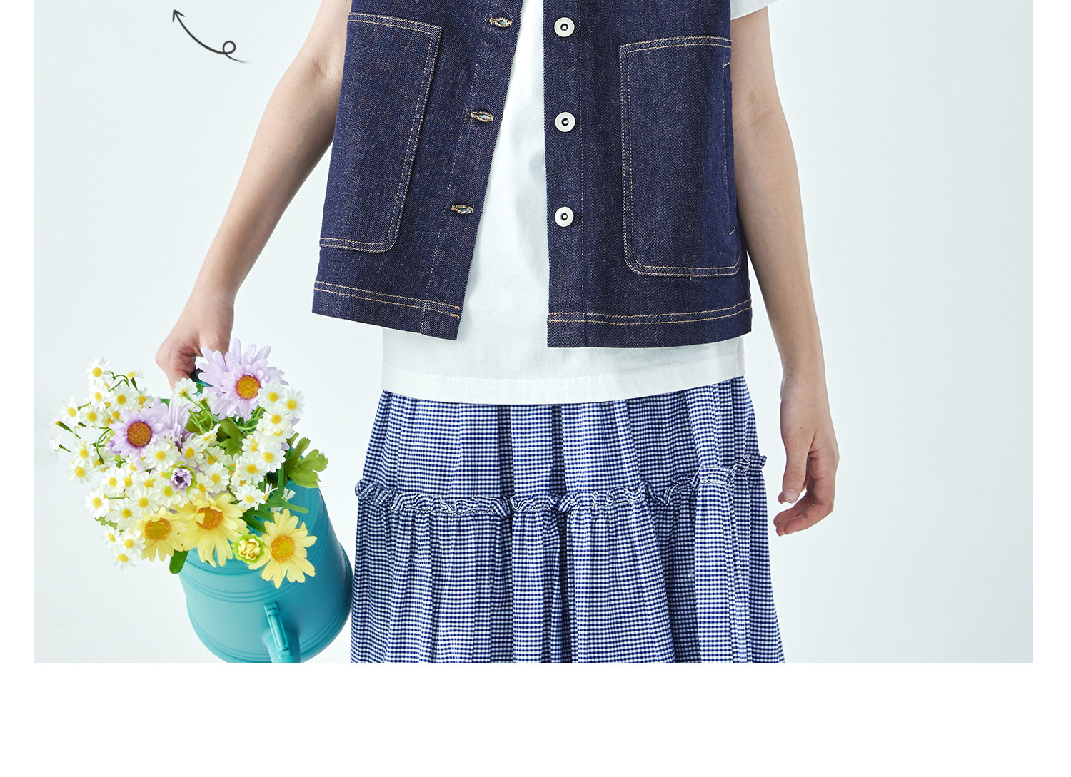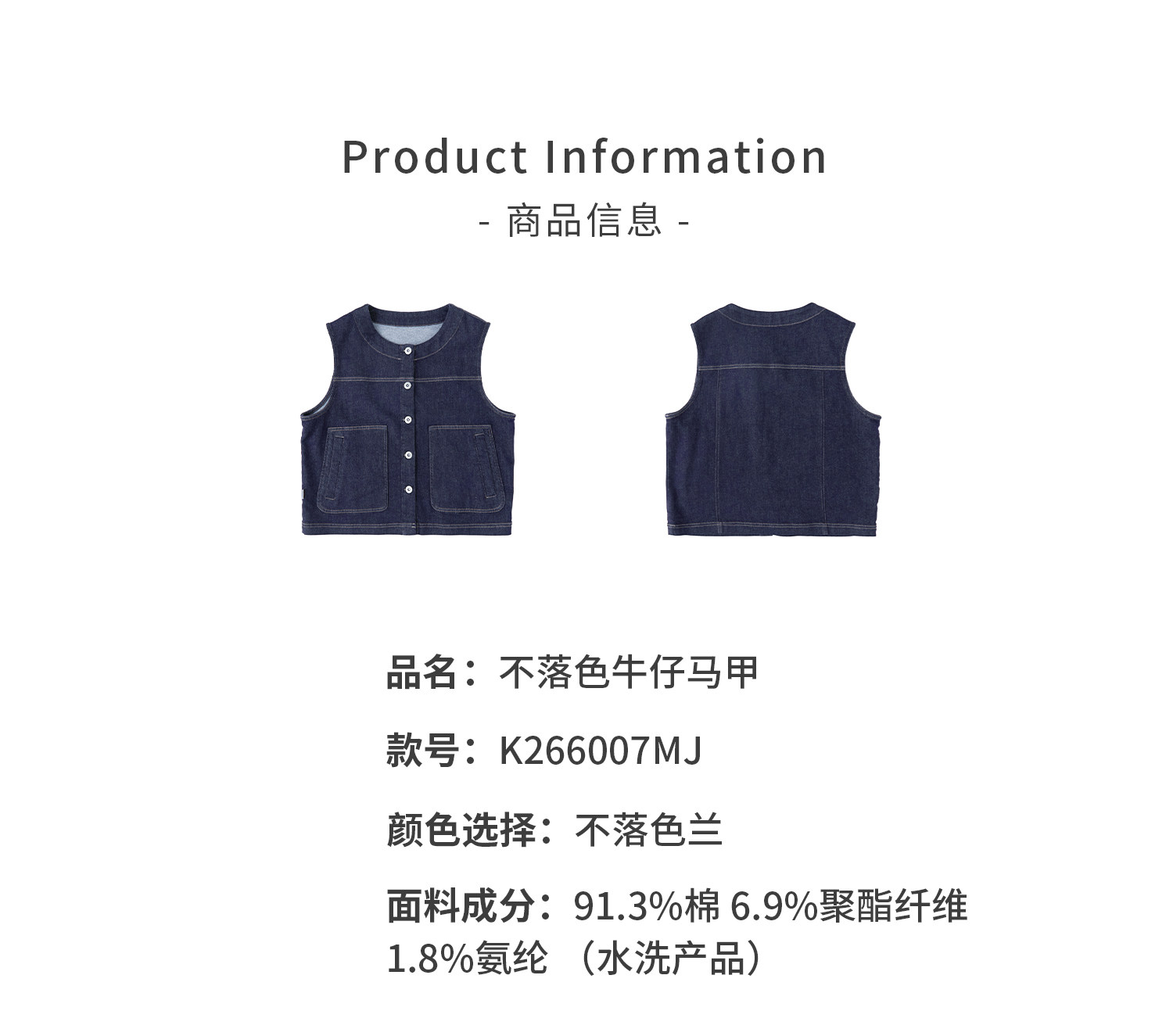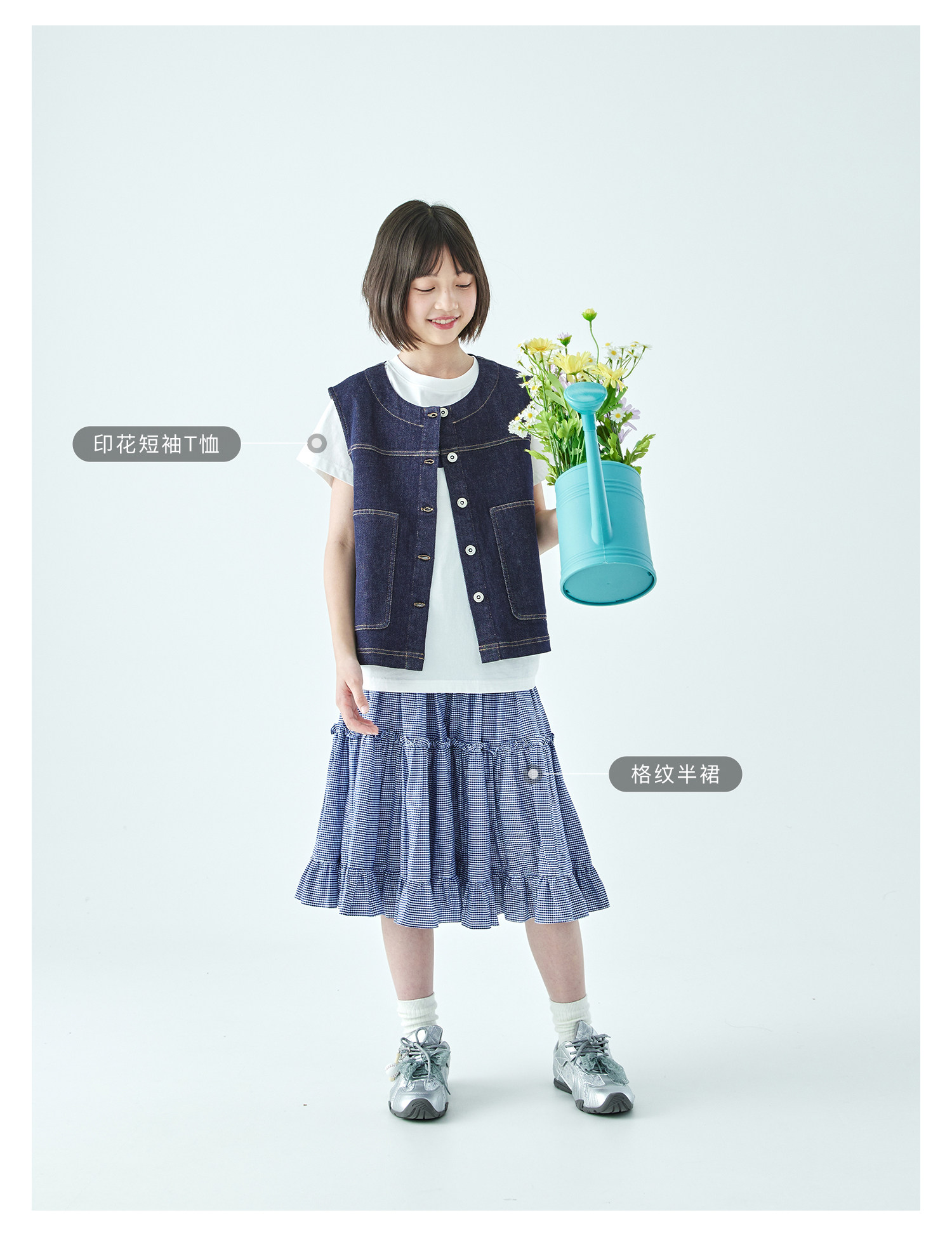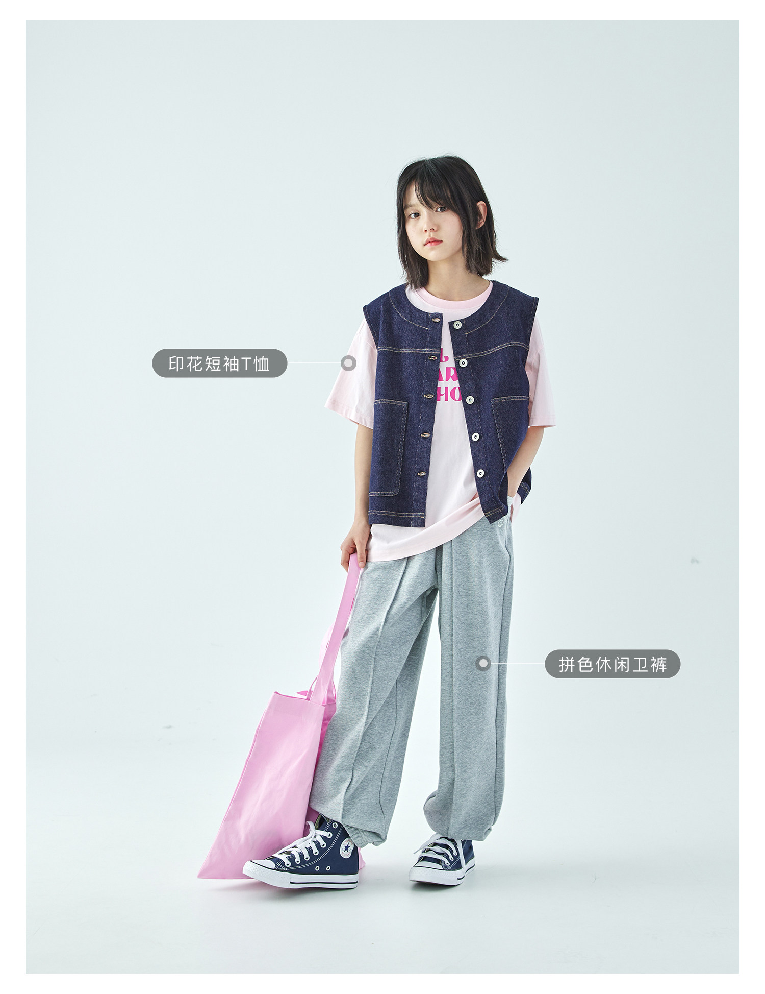 预售4.4发 棵初26年春季新款亲子中大女童不落色牛仔马甲经典大口袋宽松上衣