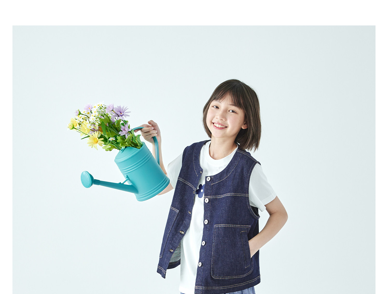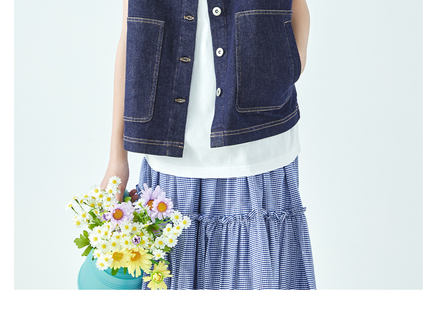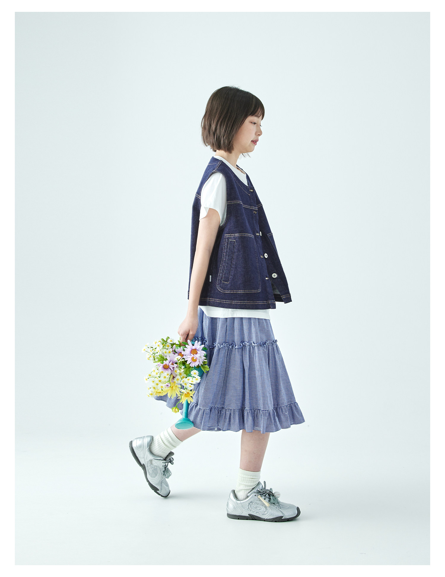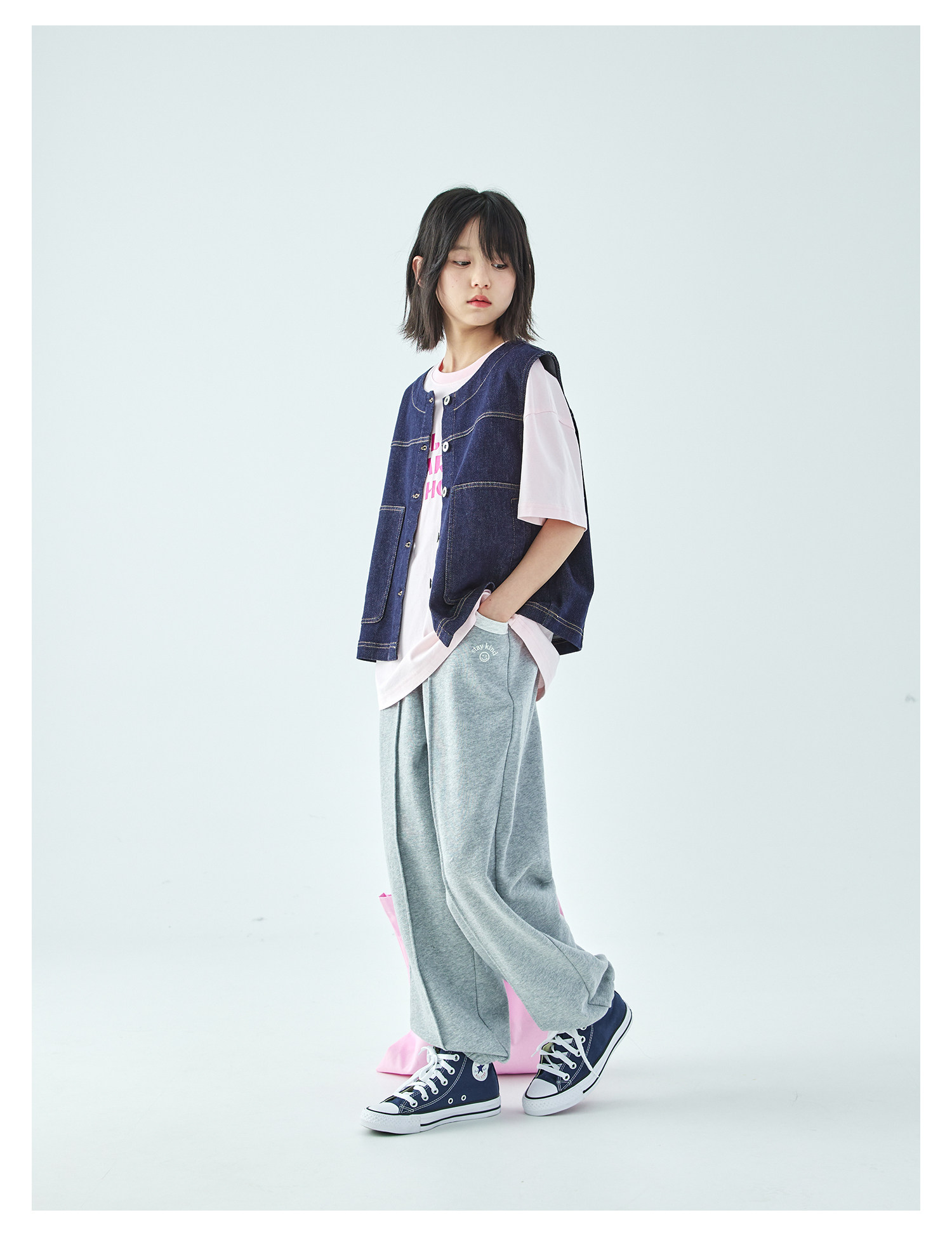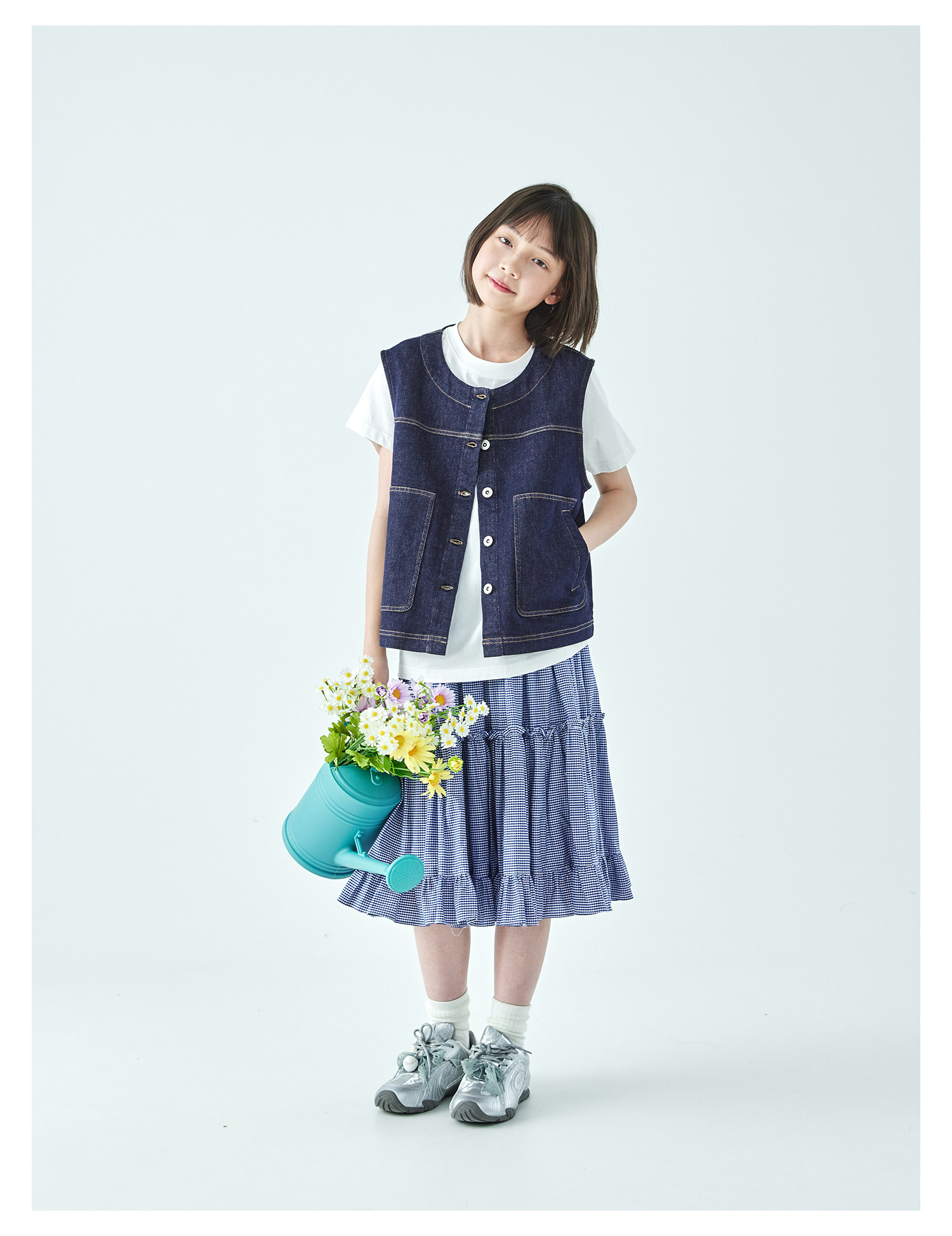 预售4.4发 棵初26年春季新款亲子中大女童不落色牛仔马甲经典大口袋宽松上衣