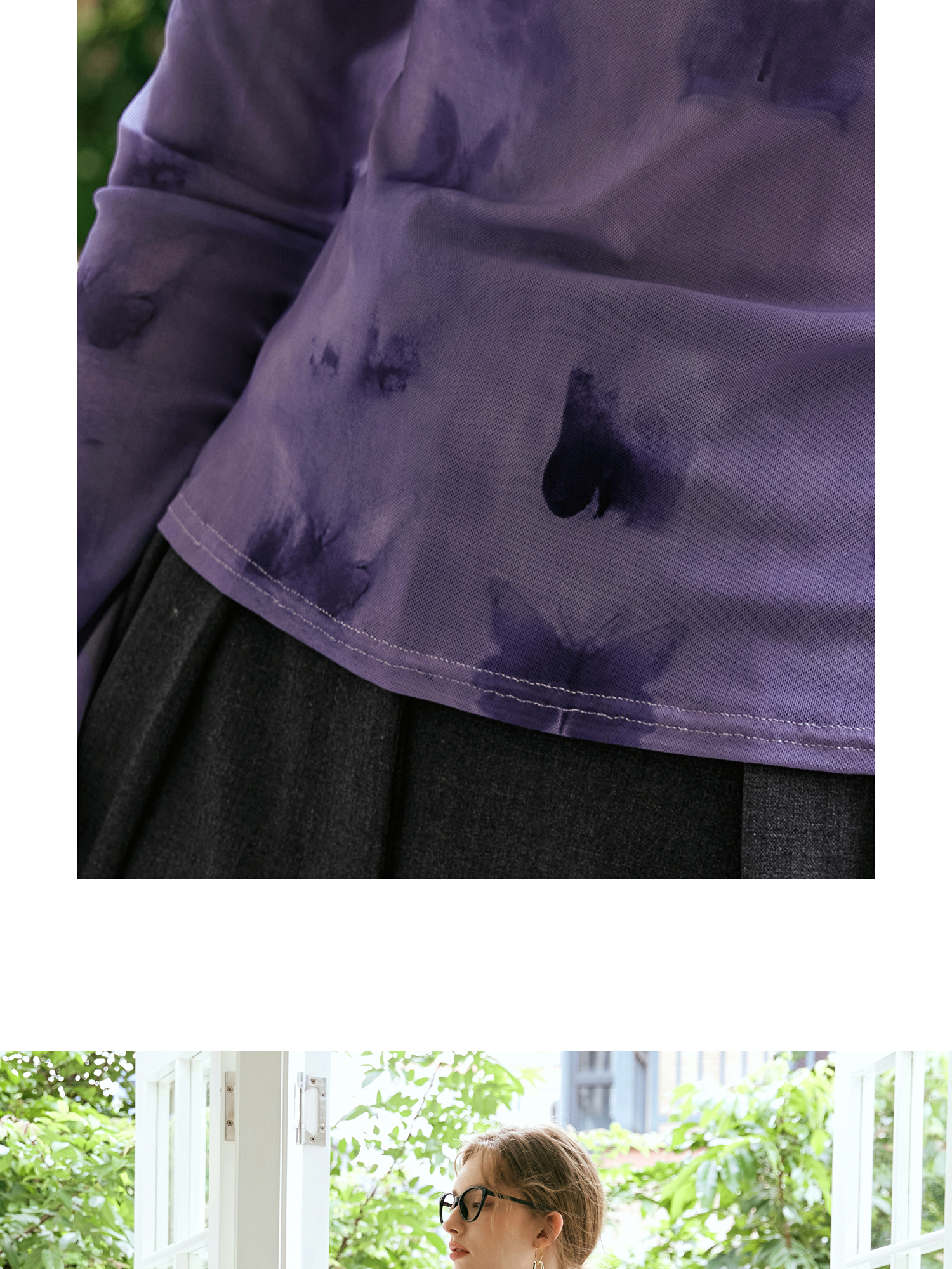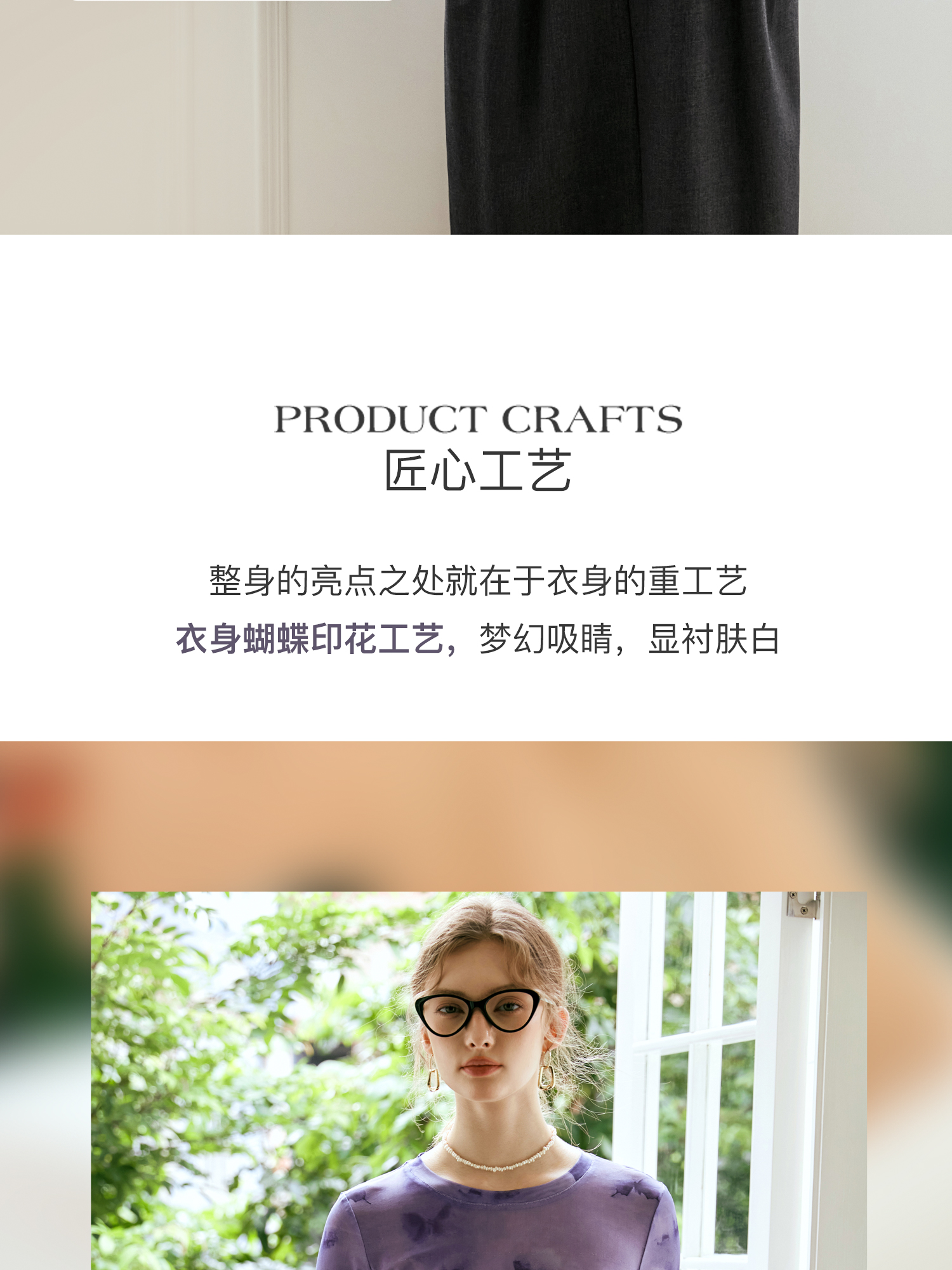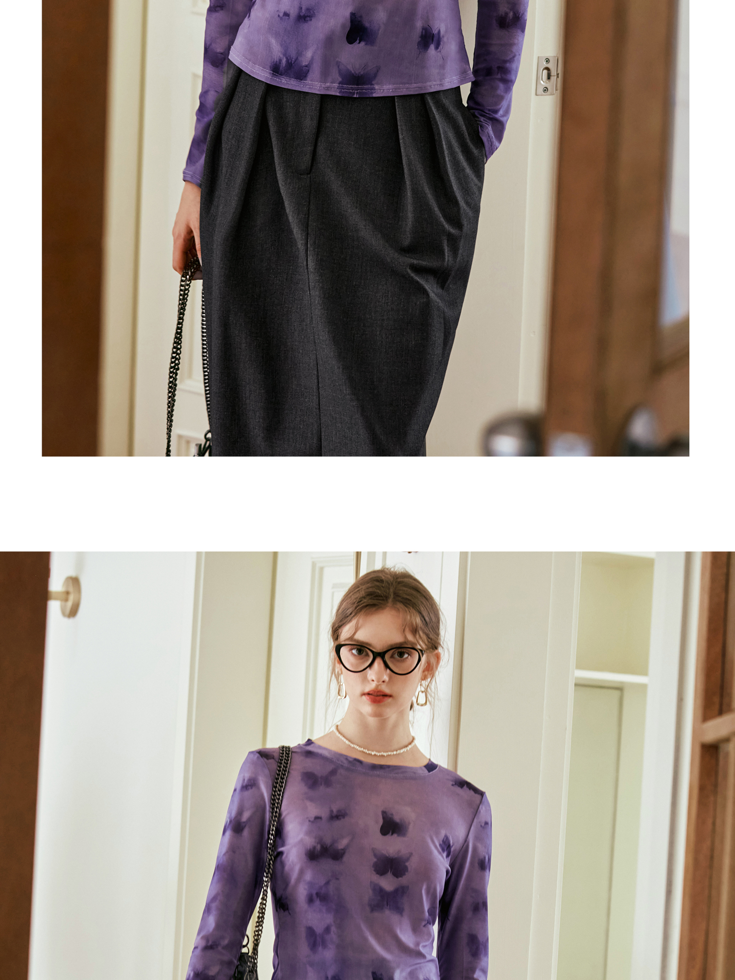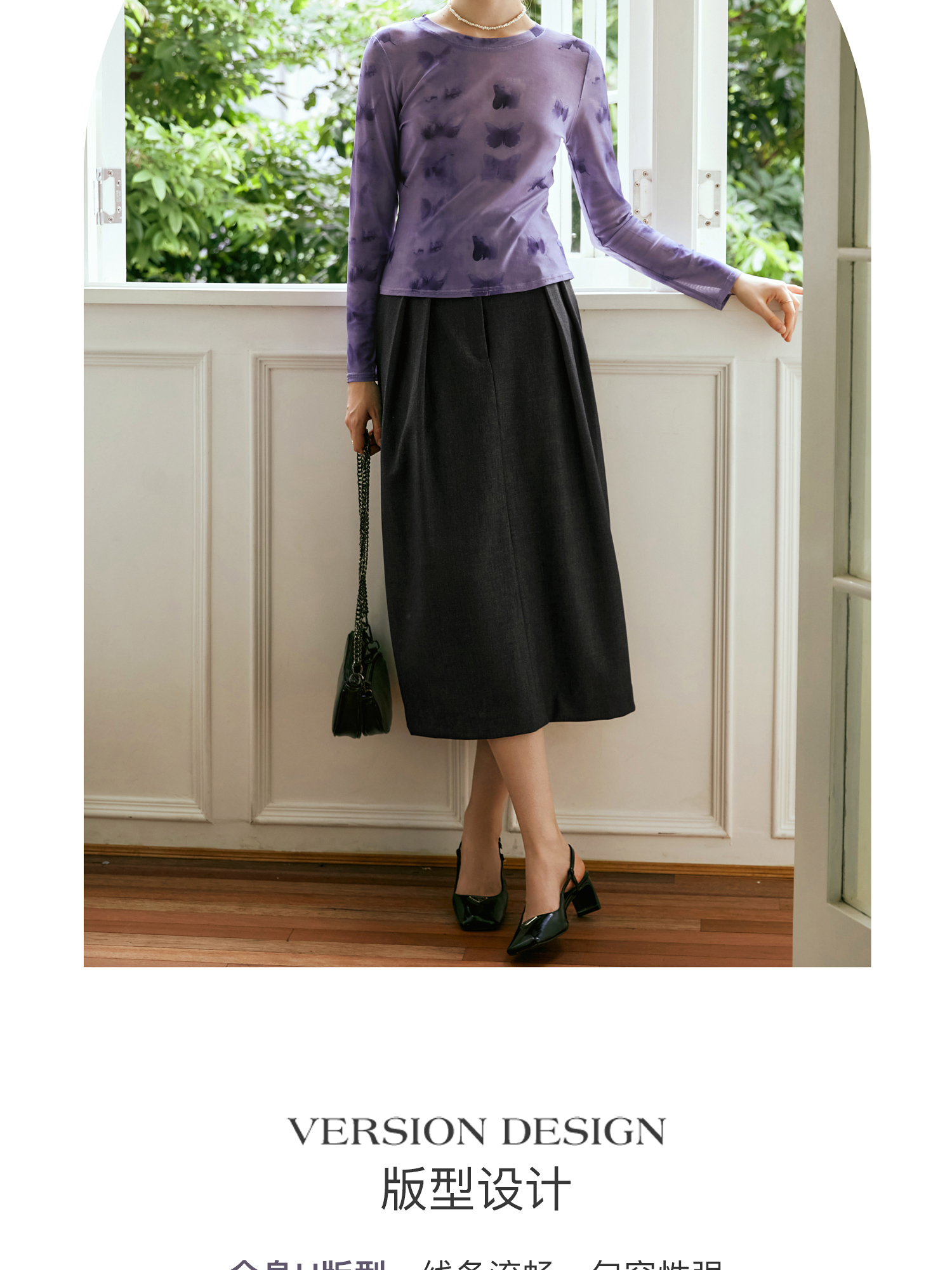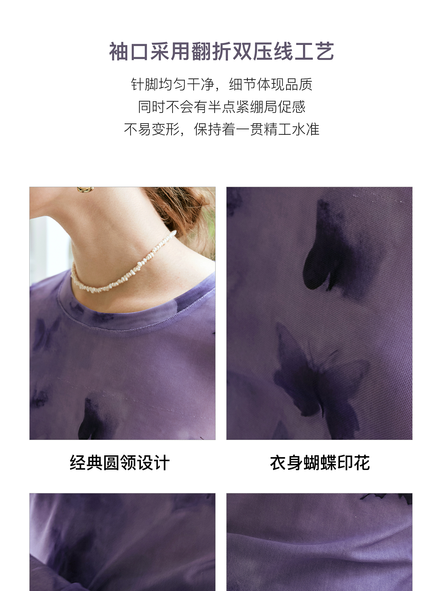 OLrain欧芮儿法式印花T恤女秋季设计感扎染网纱显瘦上衣打底衫
